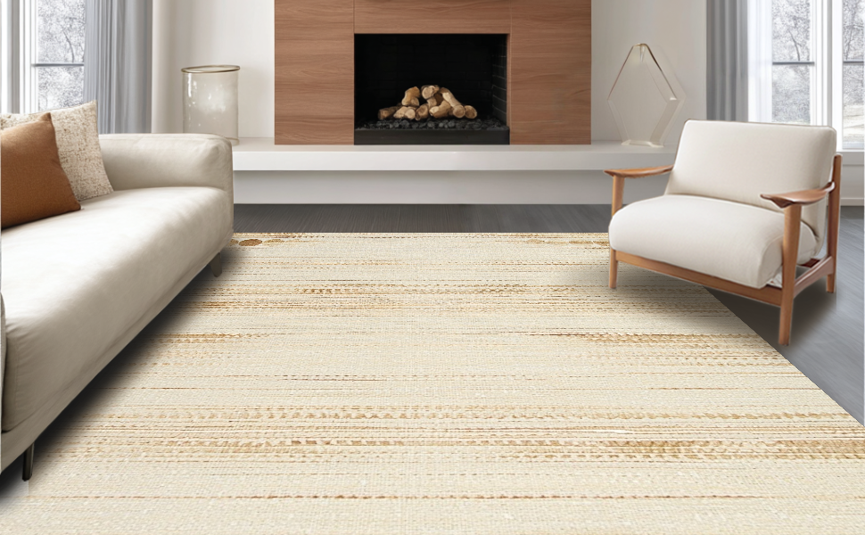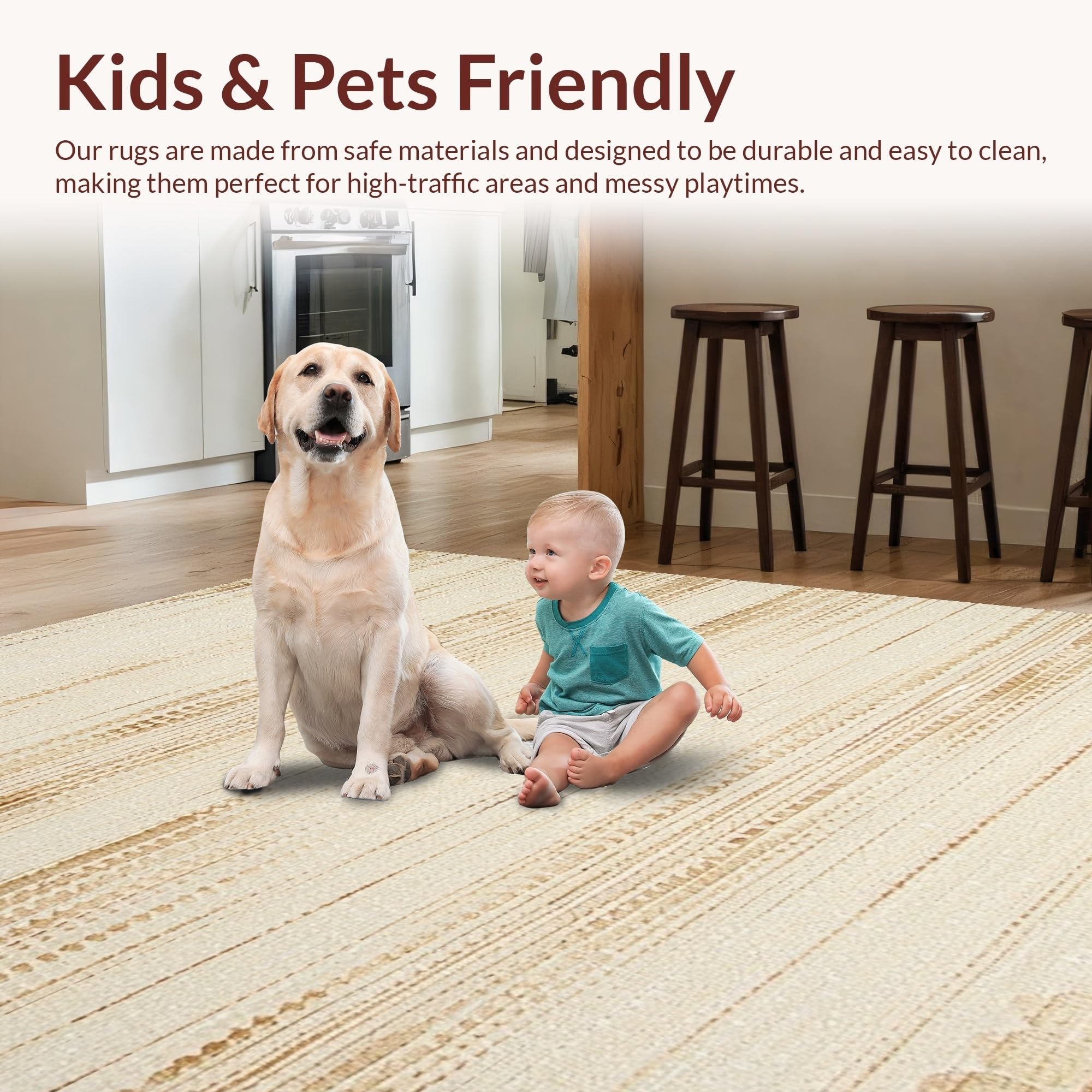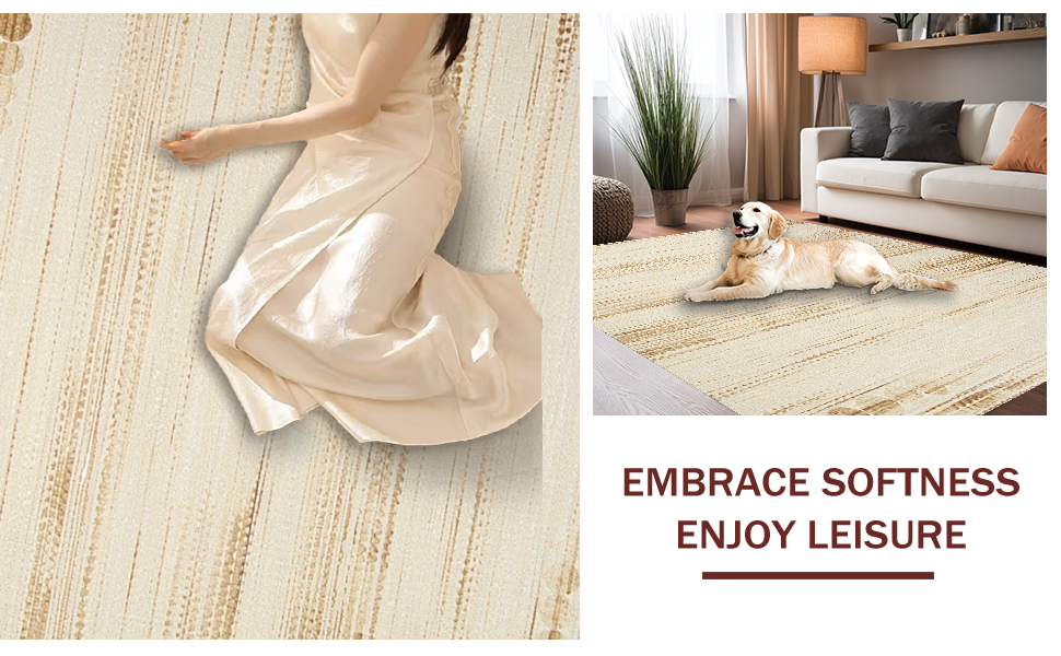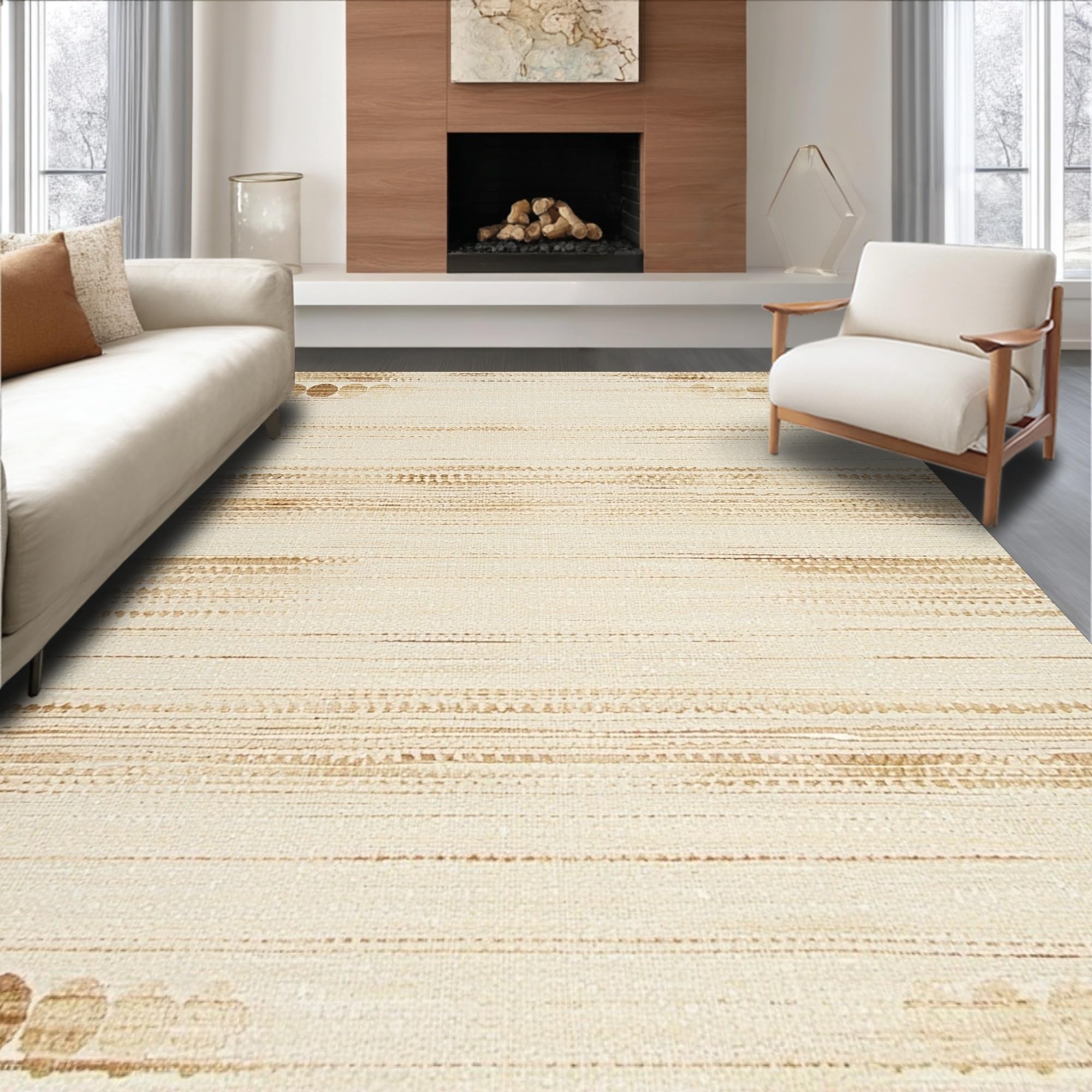 Ultra Soft Area Rug, Non Slip, Stain Resistant, Washable Area Rugs for Living Room, Bedroom, Chic Modern Minimalist Curvilinear Design(Beige) Overview: