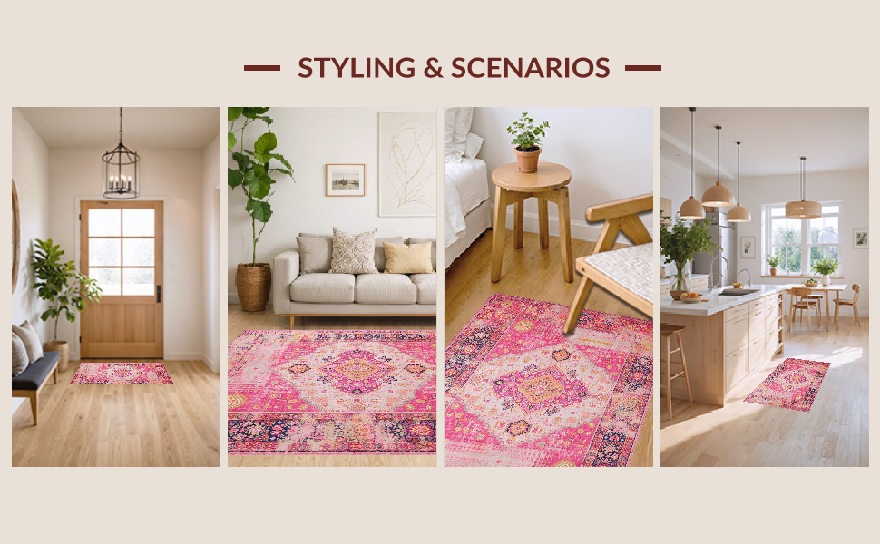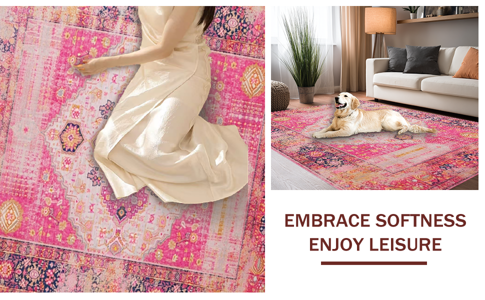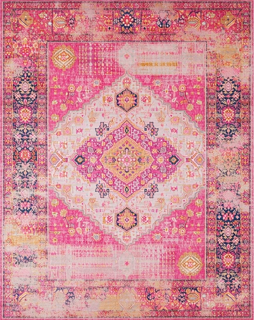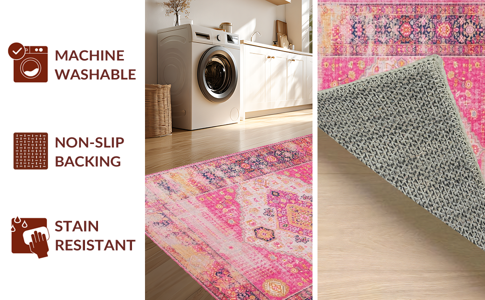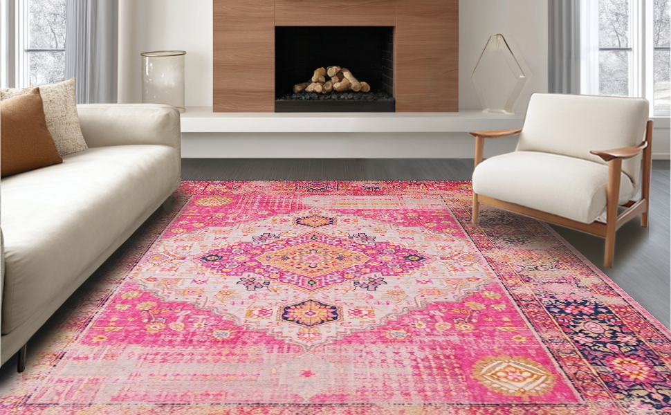 Ultra Soft Area Rug, Non Slip, Stain Resistant, Washable Area Rugs for Living Room, Bedroom, Chic Modern Multicolor Patchwork(Pink) Overview: