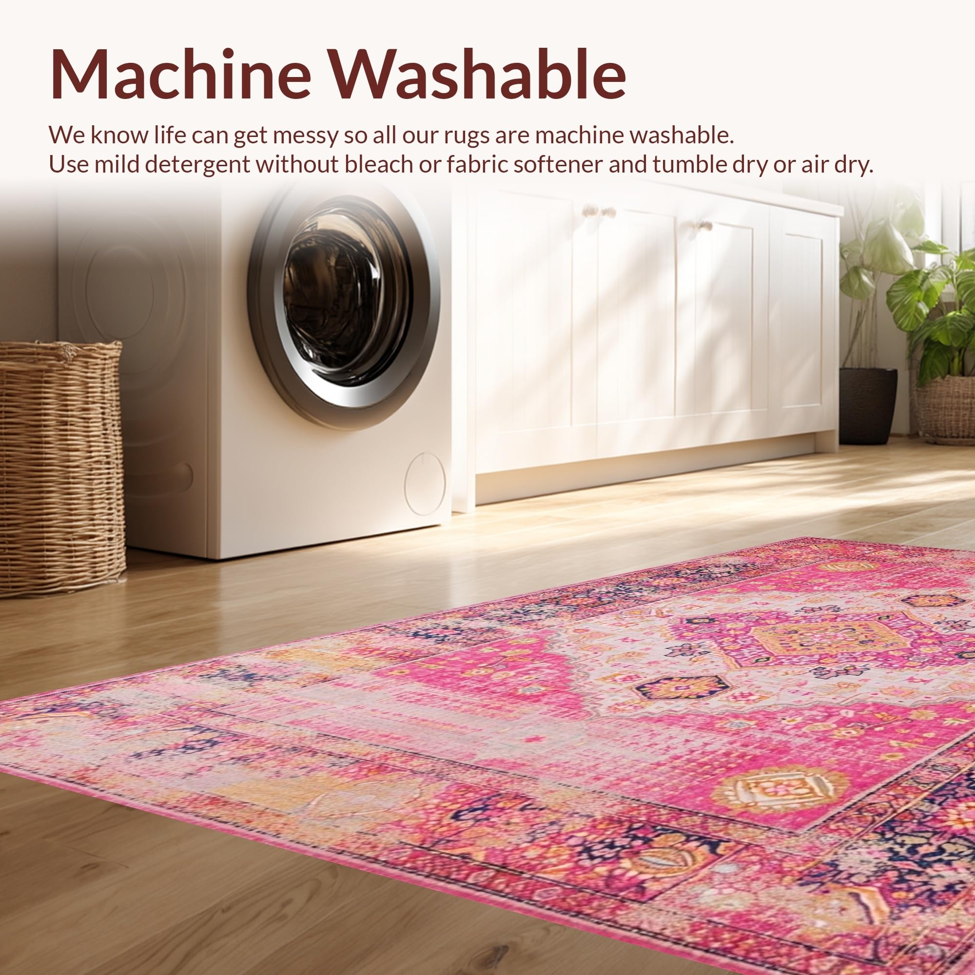 - Machine Washable: Our rugs can be easily thrown in the wash machine.