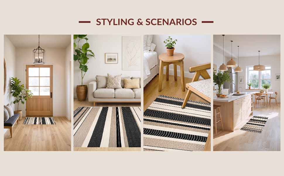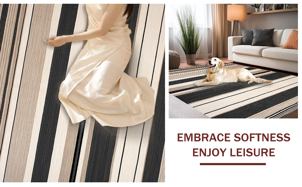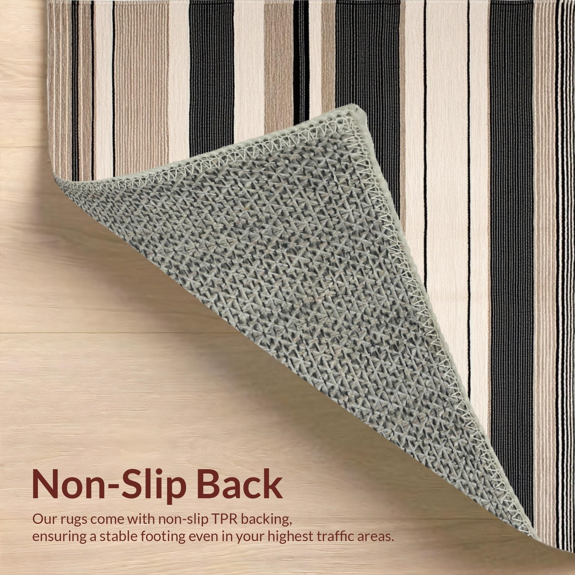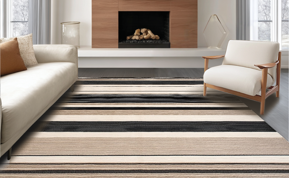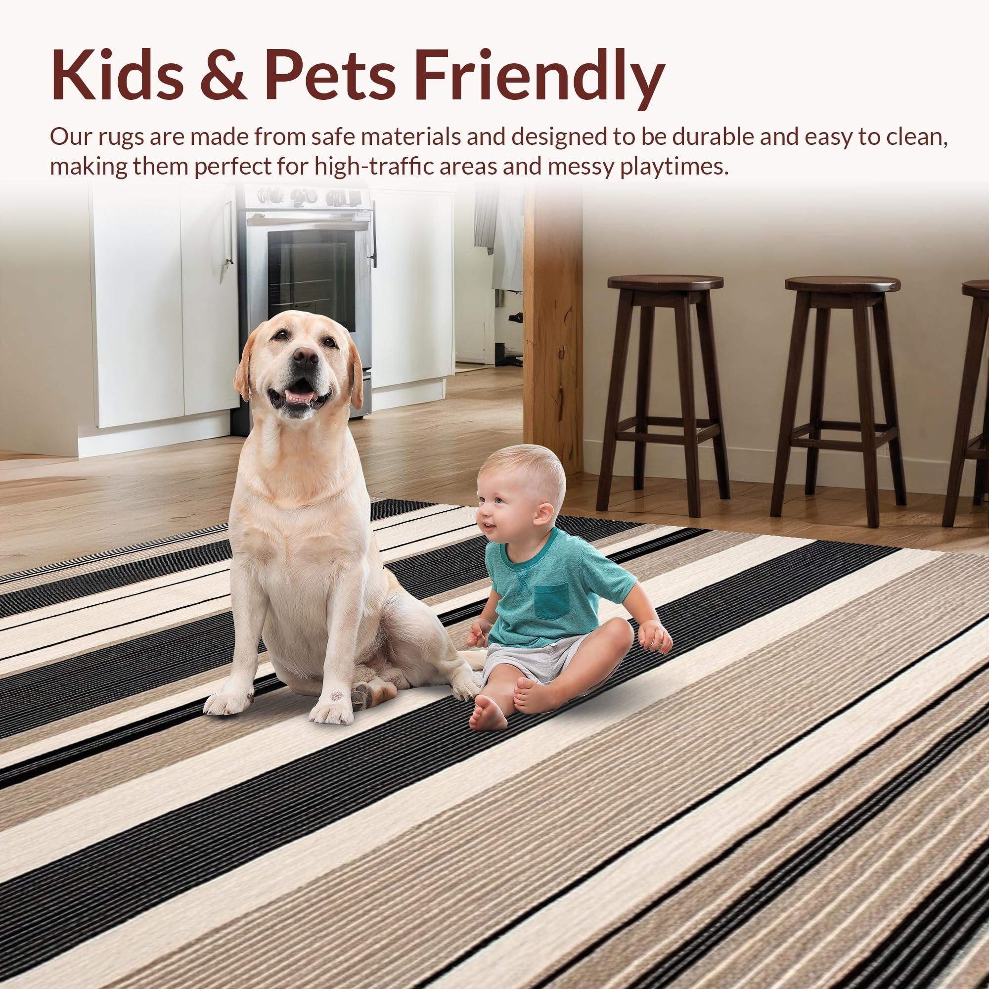 Ultra Soft Area Rug, Non Slip, Stain Resistant, Washable Area Rugs for Living Room, Bedroom, Chic Modern Neutral Banding(Beige) Overview: