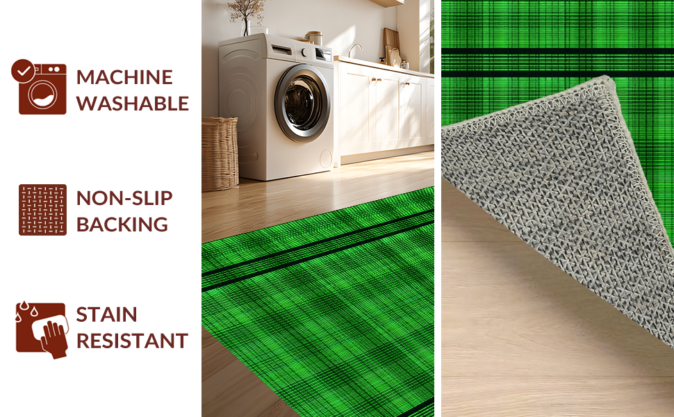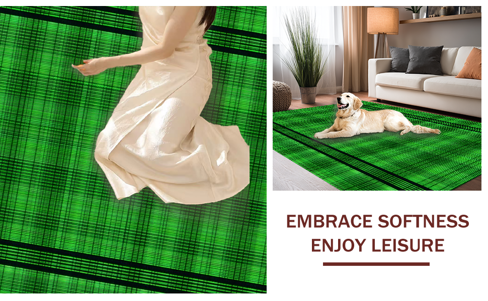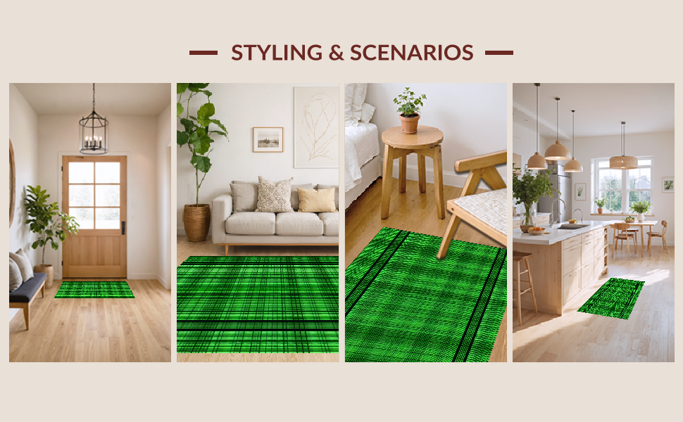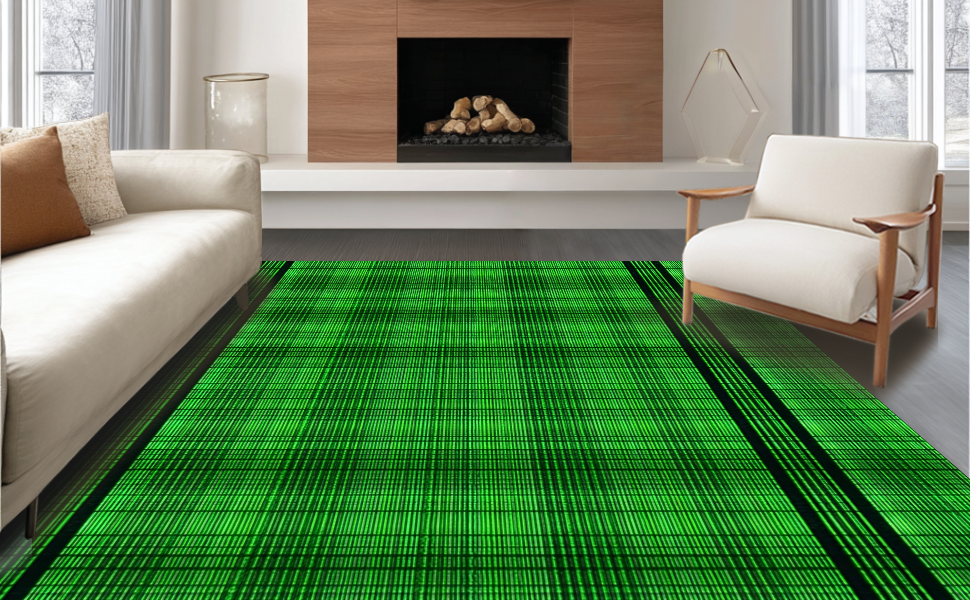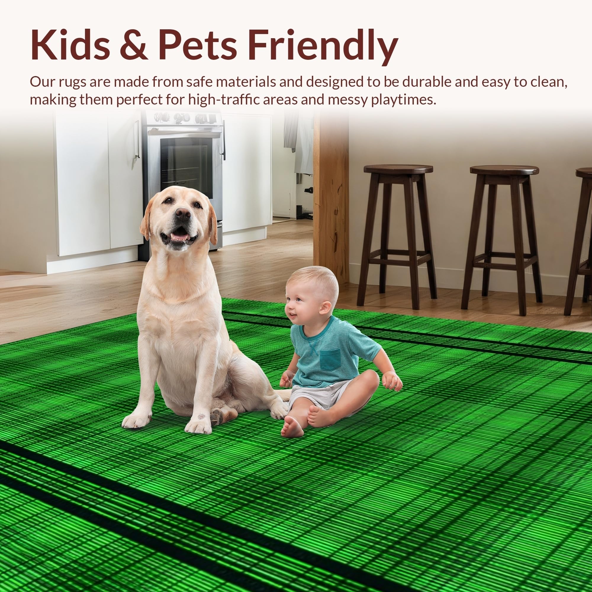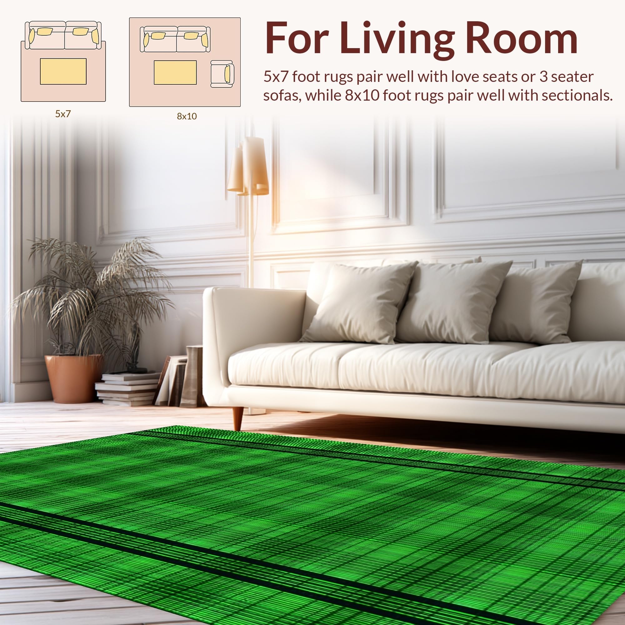 Ultra Soft Area Rug, Non Slip, Stain Resistant, Washable Area Rugs for Living Room, Bedroom, Chic Modern Tartan Style(Green) Overview: