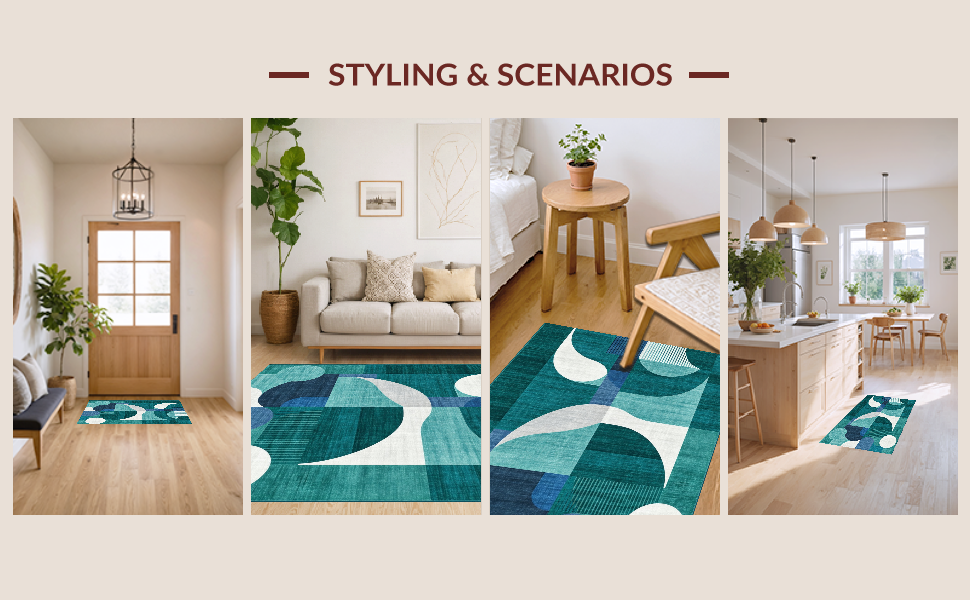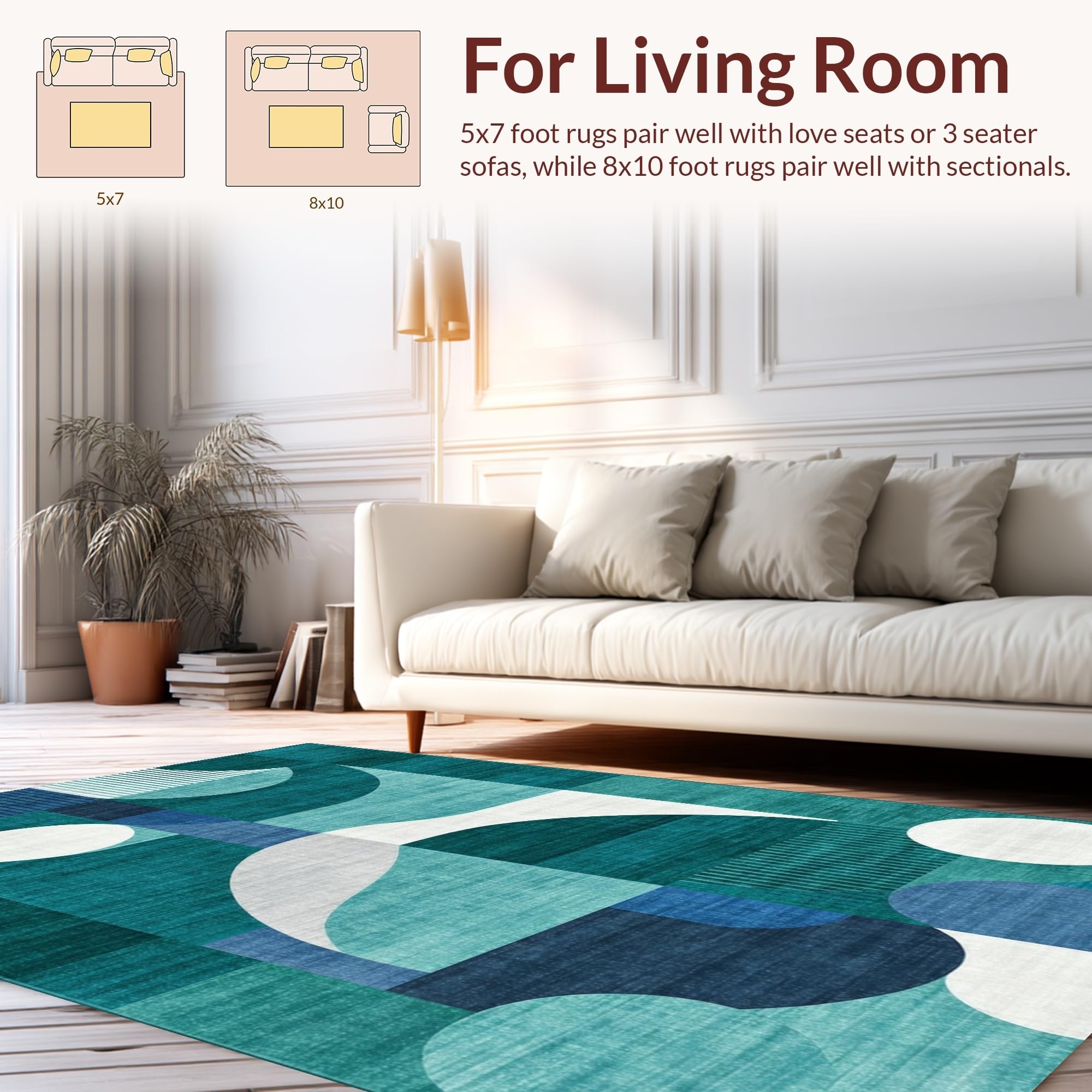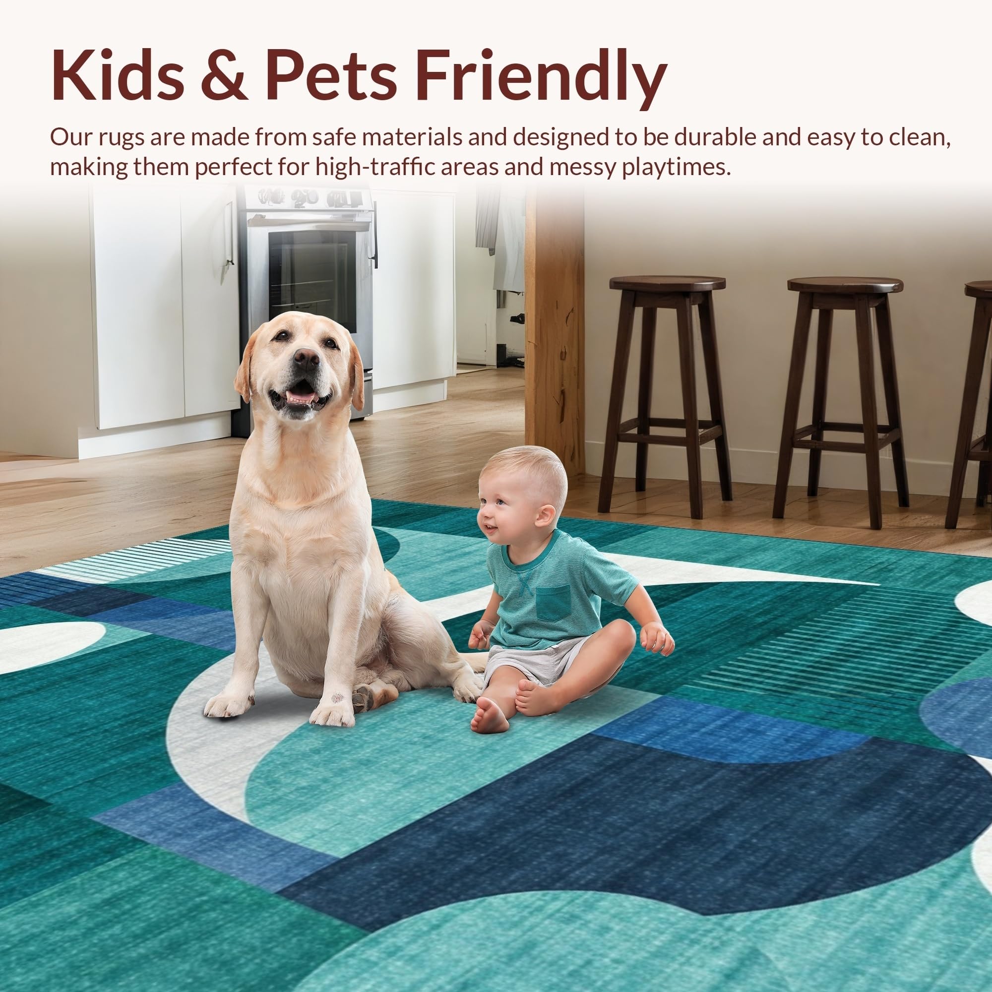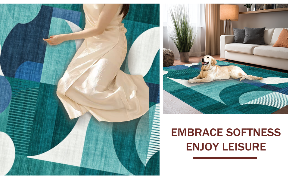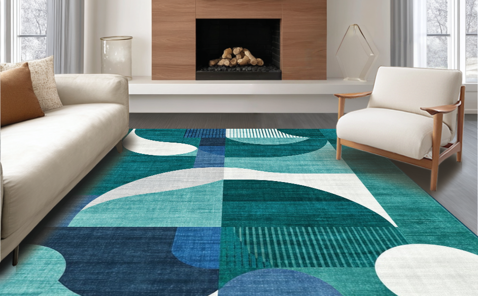 Ultra Soft Area Rug, Non Slip, Stain Resistant, Washable Area Rugs for Living Room, Bedroom, Chic Modern Tiled Pattern(Blue) Overview: