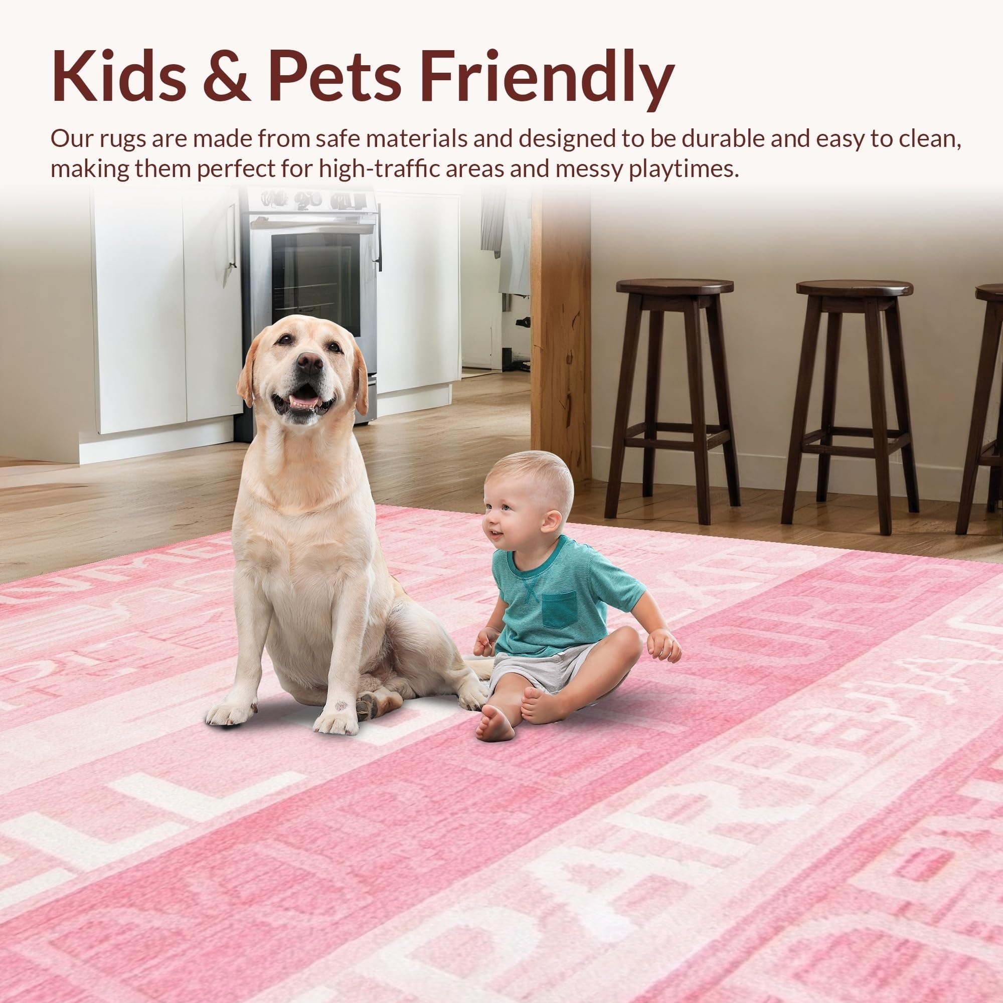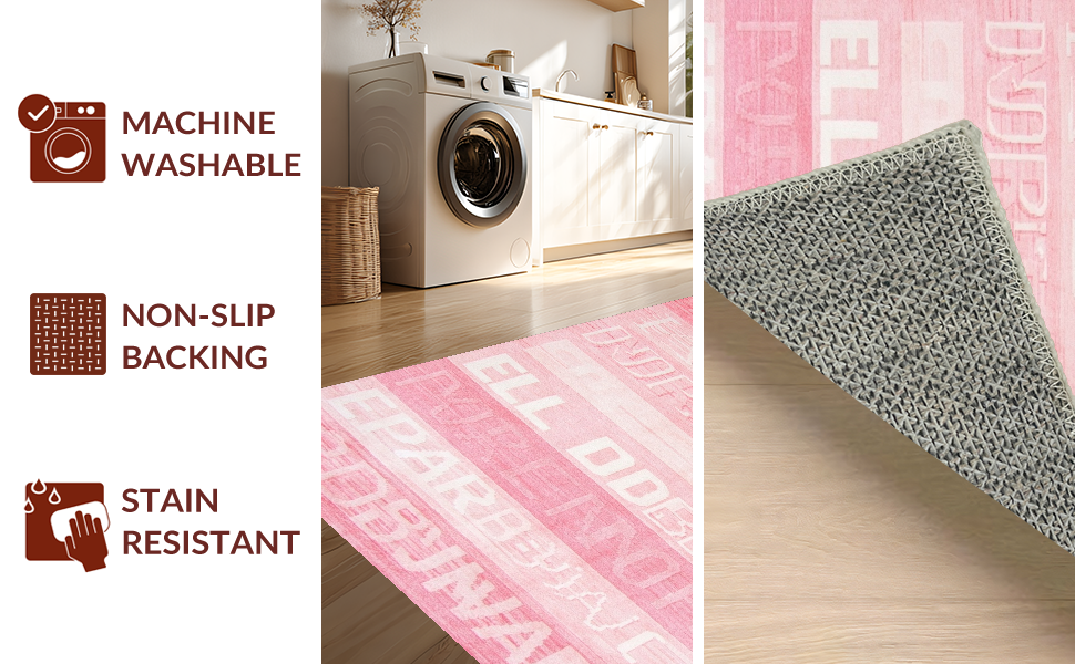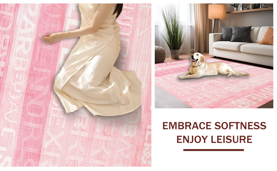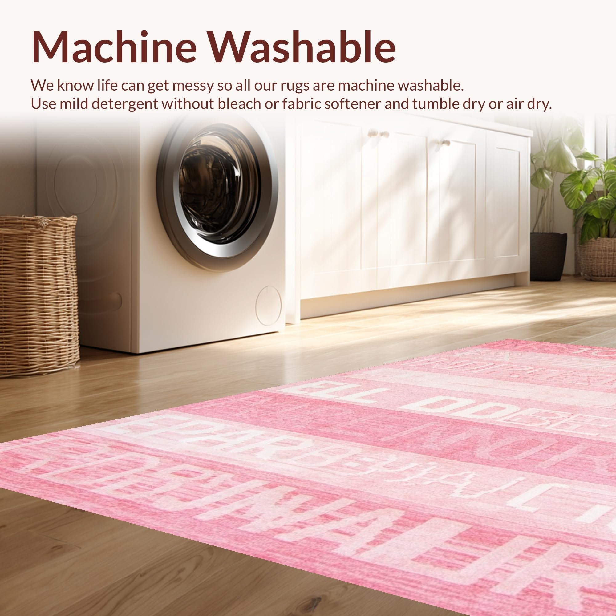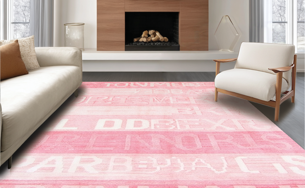 Ultra Soft Area Rug, Non Slip, Stain Resistant, Washable Area Rugs for Living Room, Bedroom, Chic Modern Typography Design(Pink) Overview: