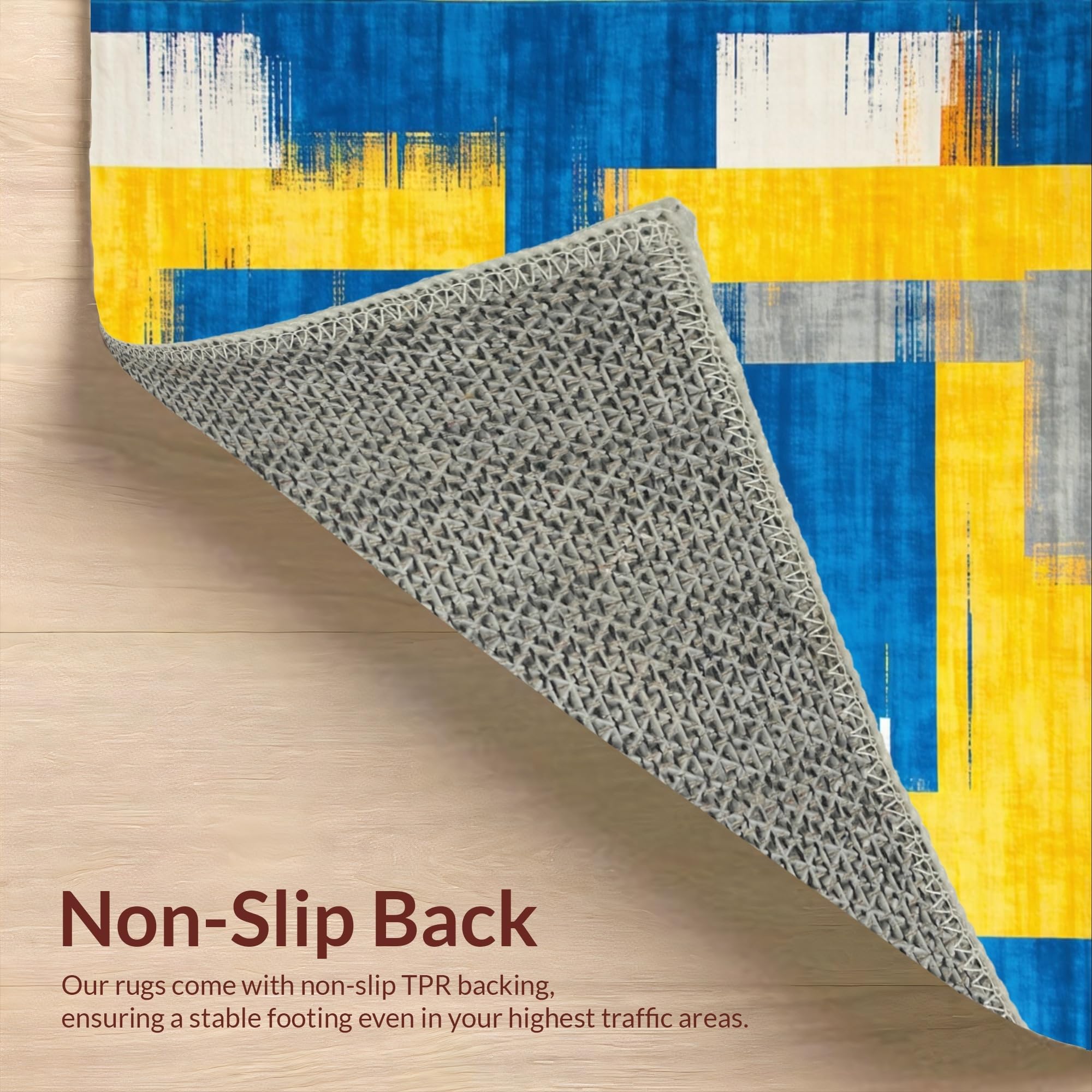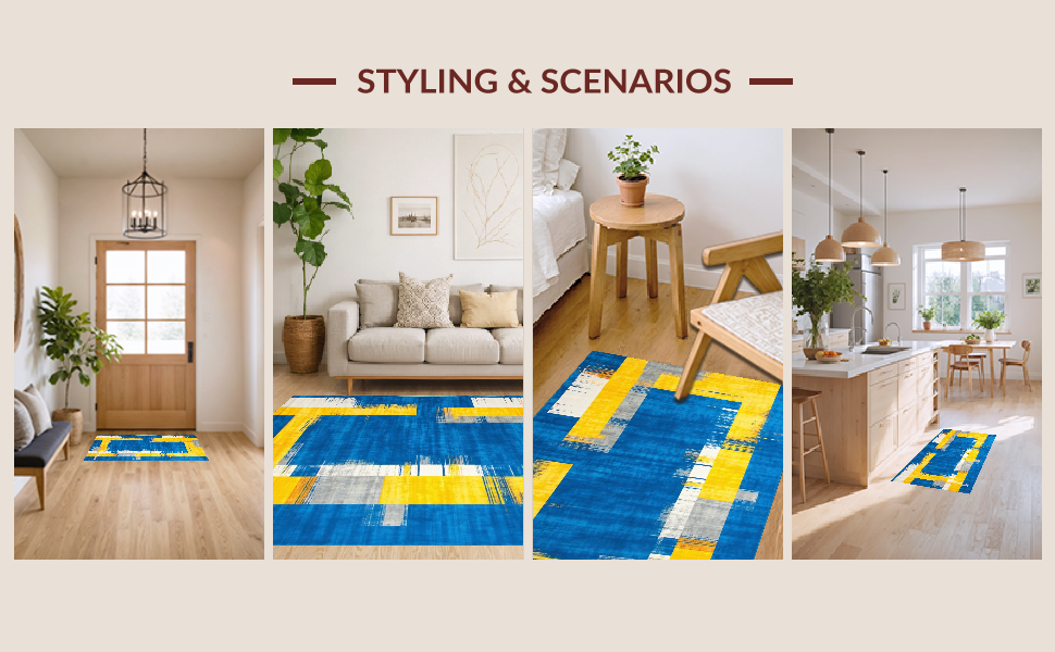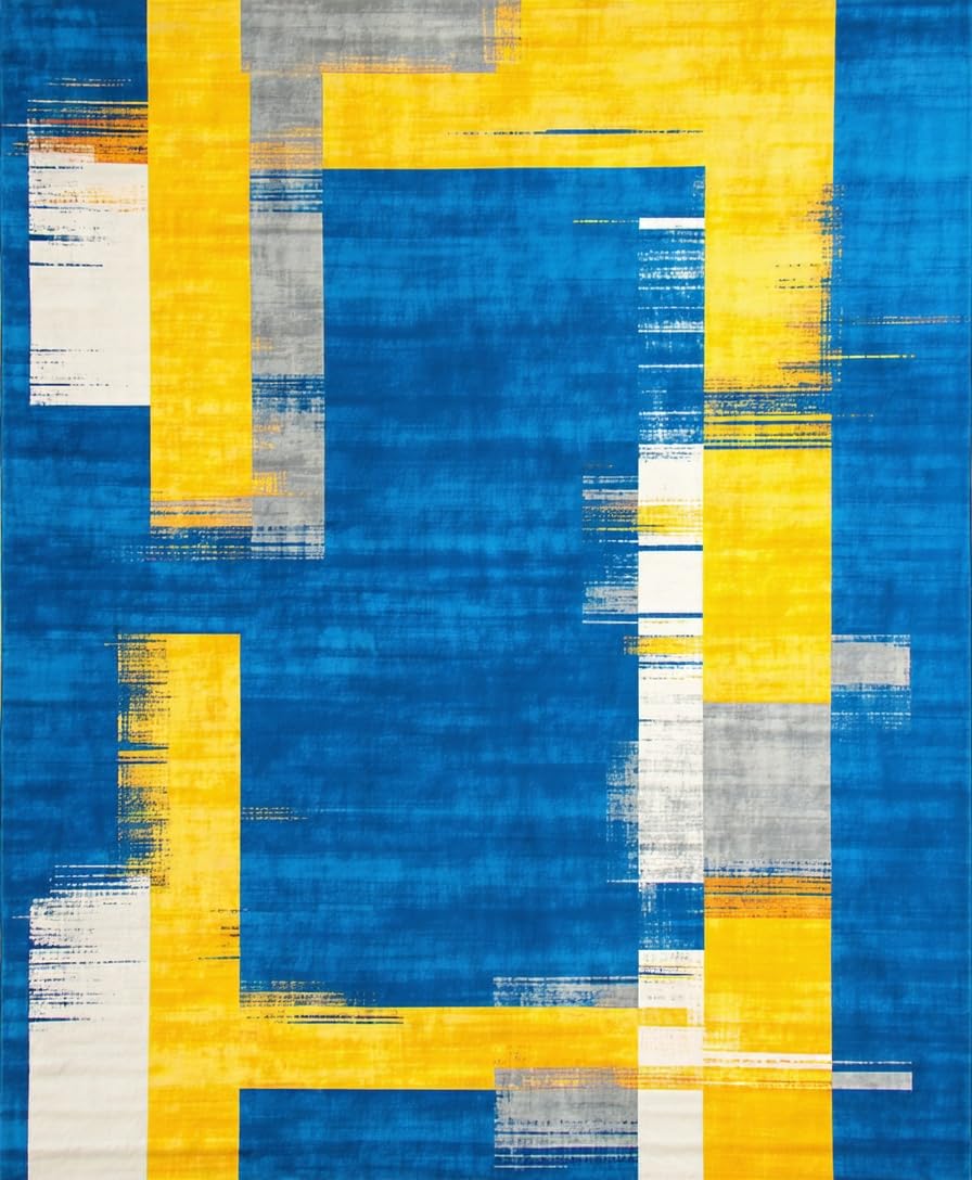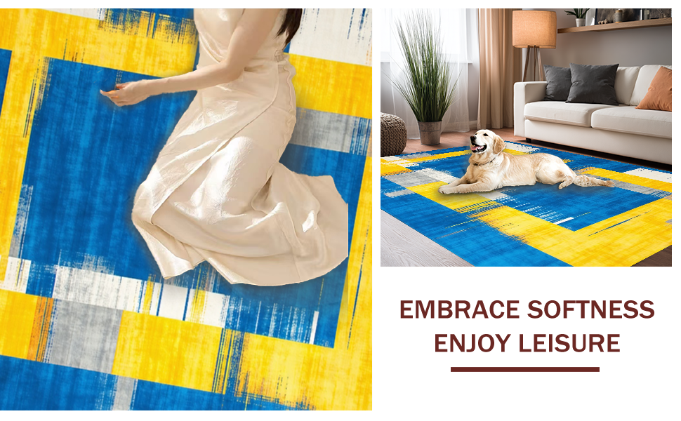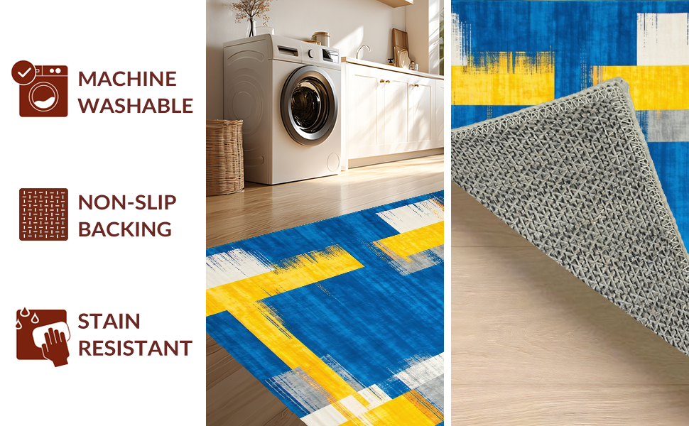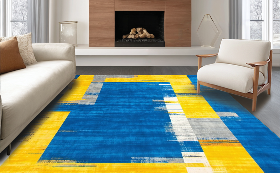 Ultra Soft Area Rug, Non Slip, Stain Resistant, Washable Area Rugs for Living Room, Bedroom, Chic Modernist Colorful Canvas(Blue) Overview: