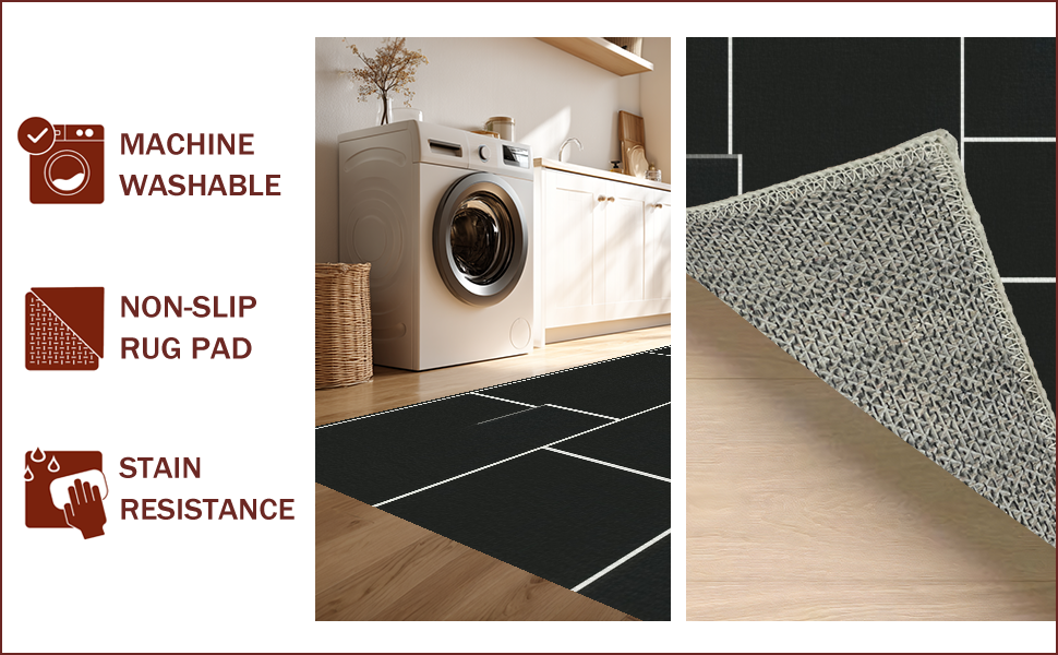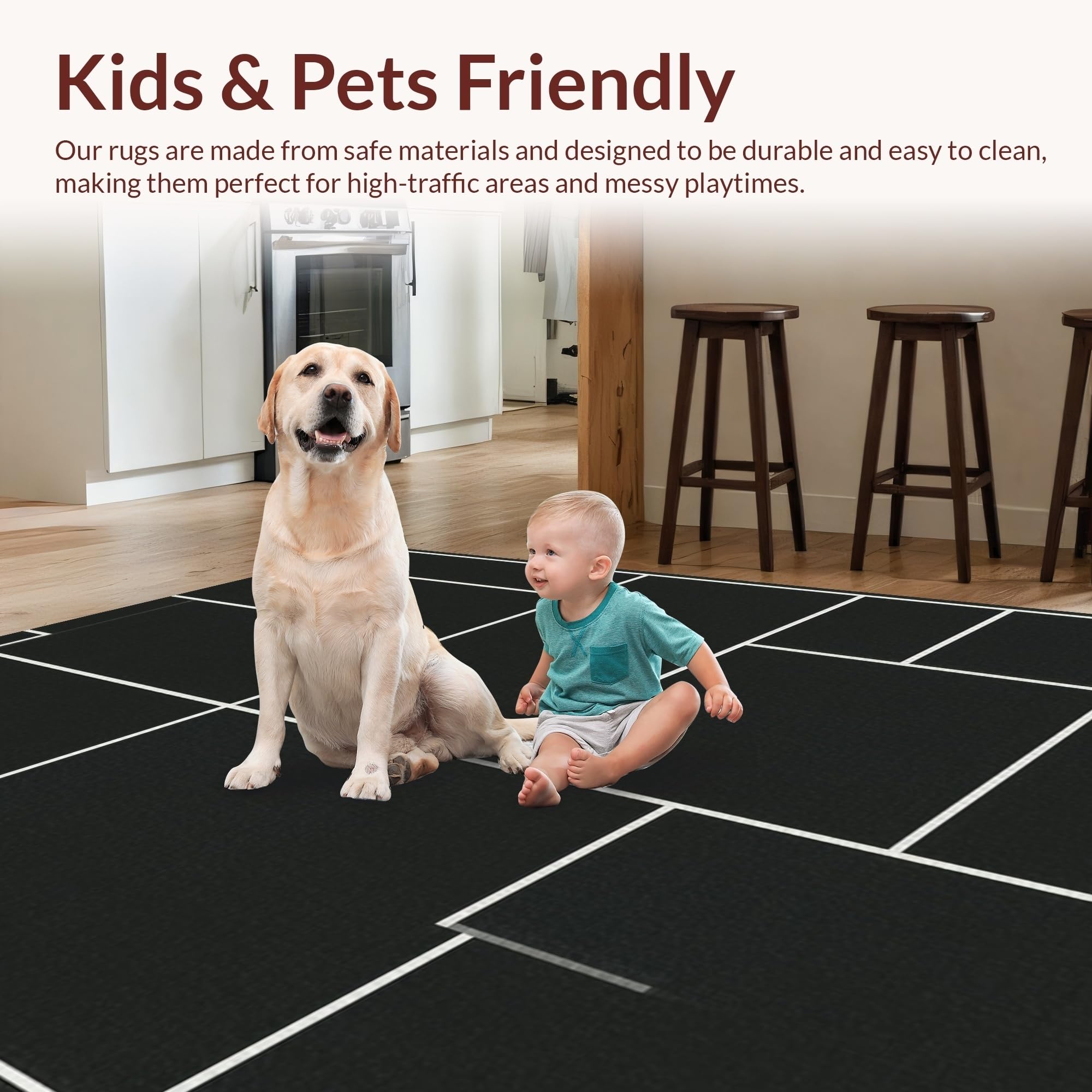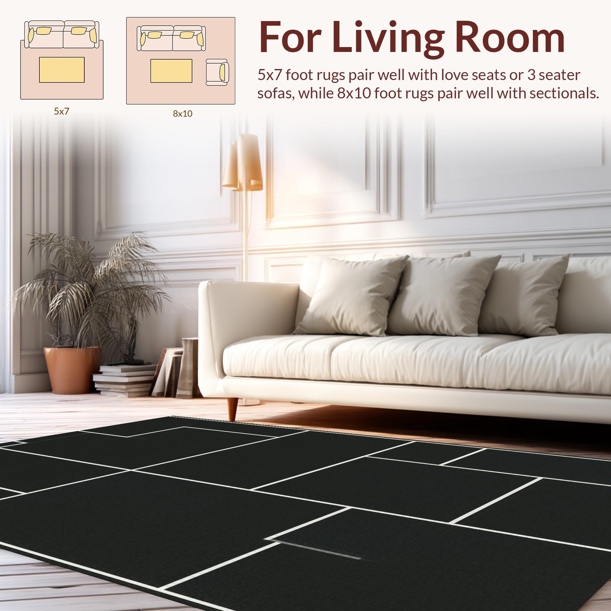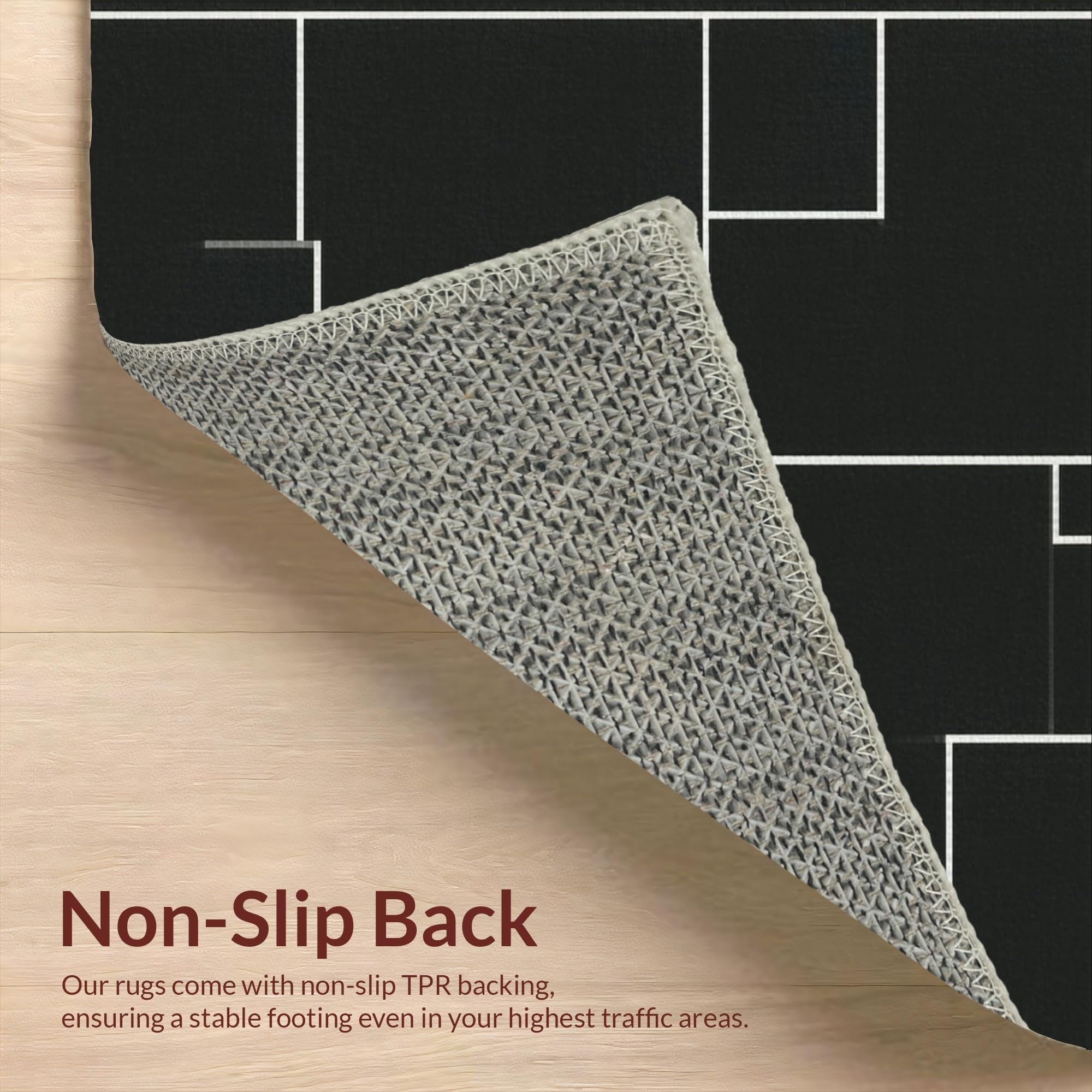 Ultra Soft Area Rug, Non Slip, Stain Resistant, Washable Area Rugs for Living Room, Bedroom, Chic Monochrome Checkerboard Aesthetic(Black) Overview: