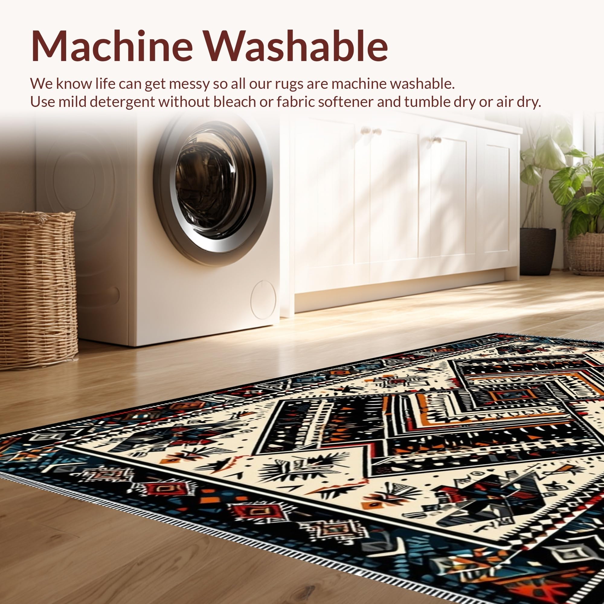 - Machine Washable: Our rugs can be easily thrown in the wash machine.