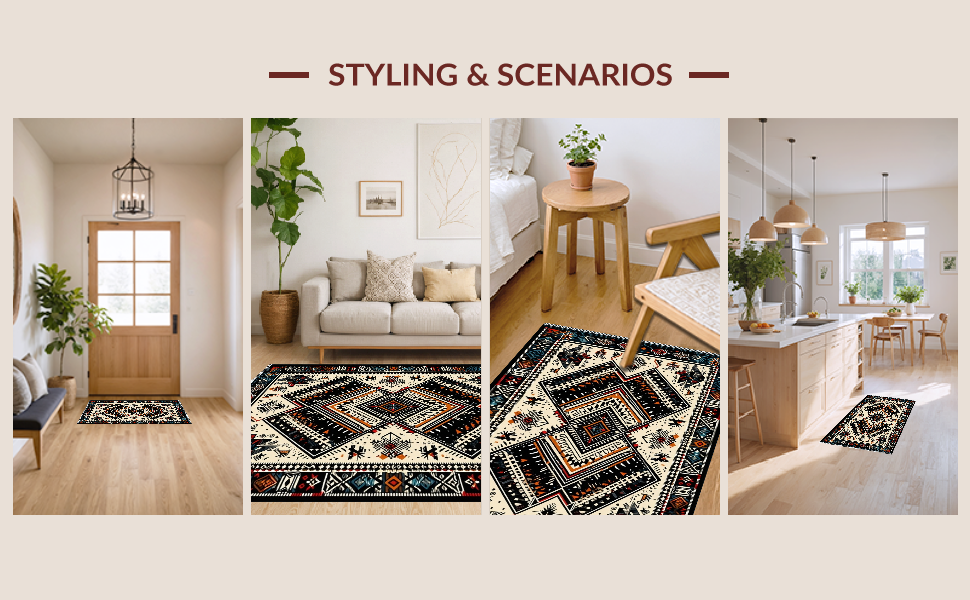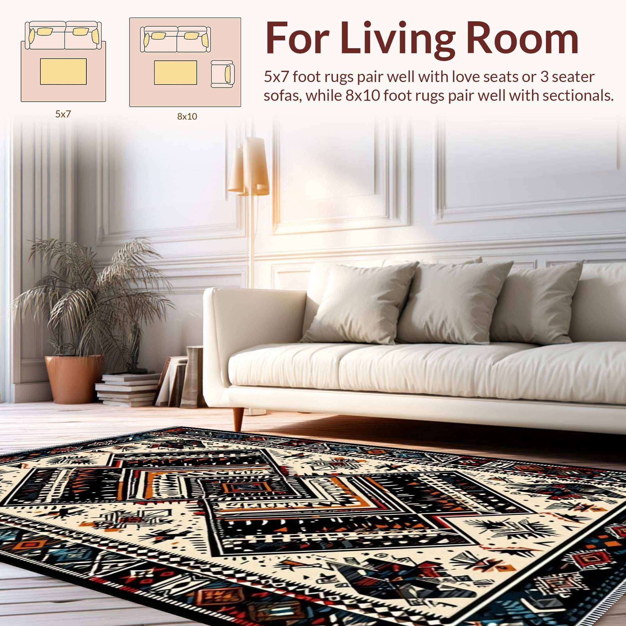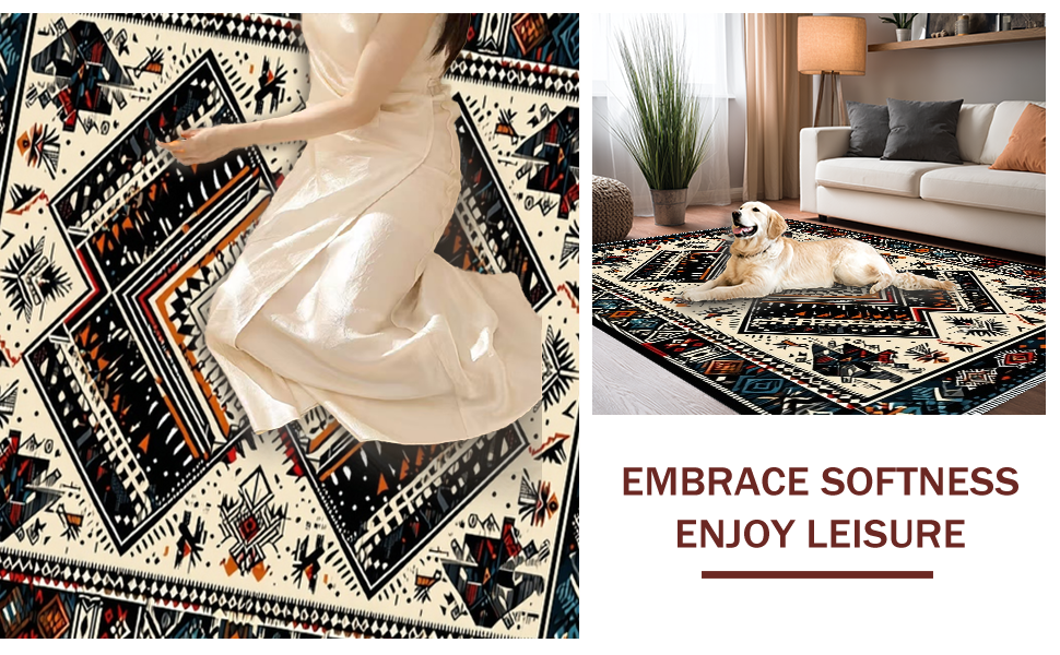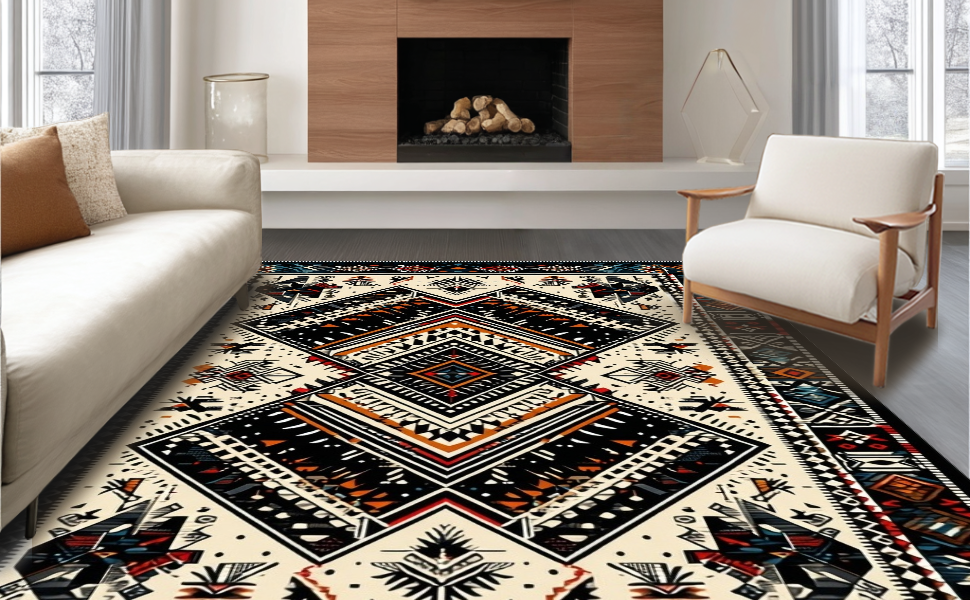Ultra Soft Area Rug, Non Slip, Stain Resistant, Washable Area Rugs for Living Room, Bedroom, Chic Monochrome Geometric Fusion(Black) Overview: