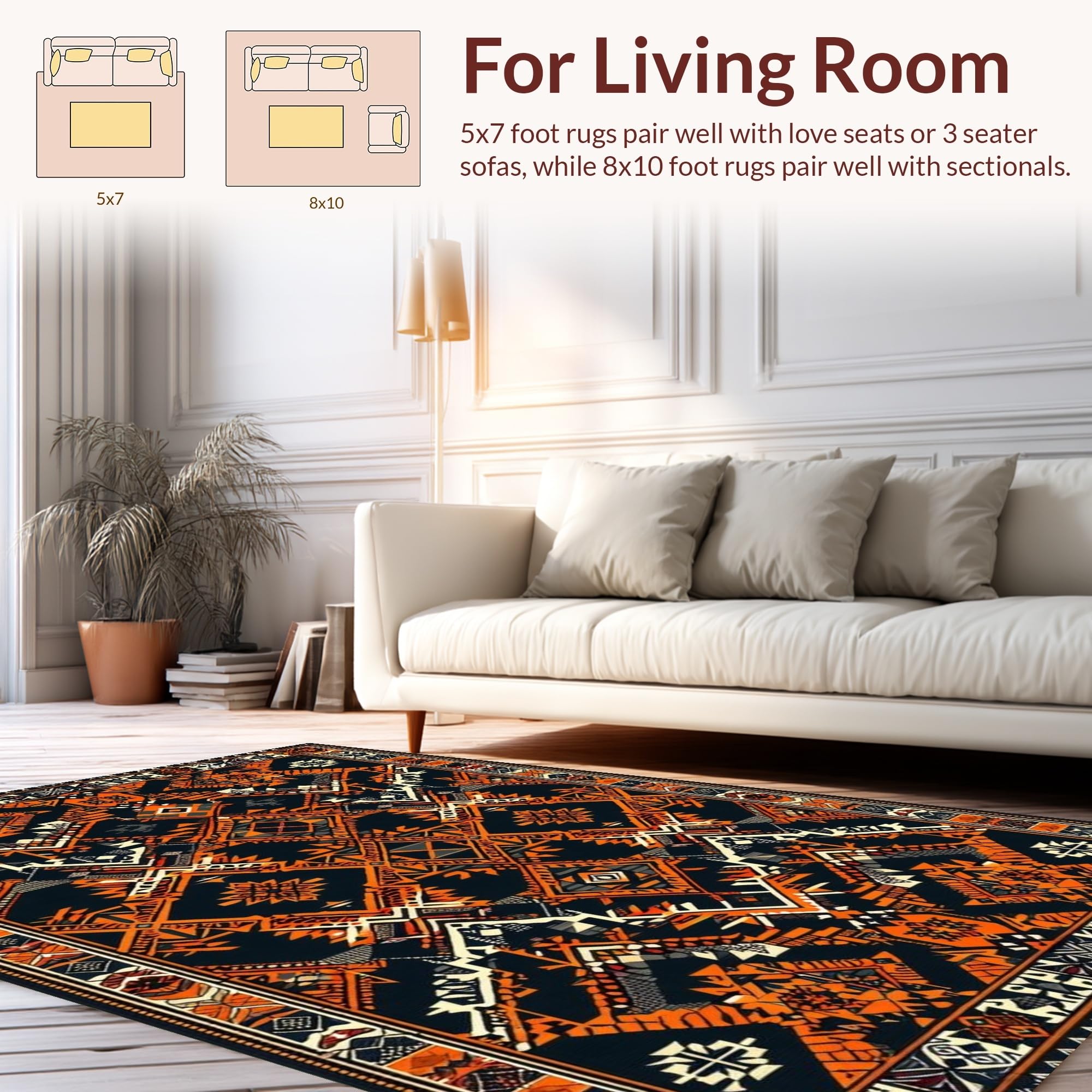 Ultra Soft Area Rug, Non Slip, Stain Resistant, Washable Area Rugs for Living Room, Bedroom, Chic Monochrome Geometric Inspiration(Black) Overview: