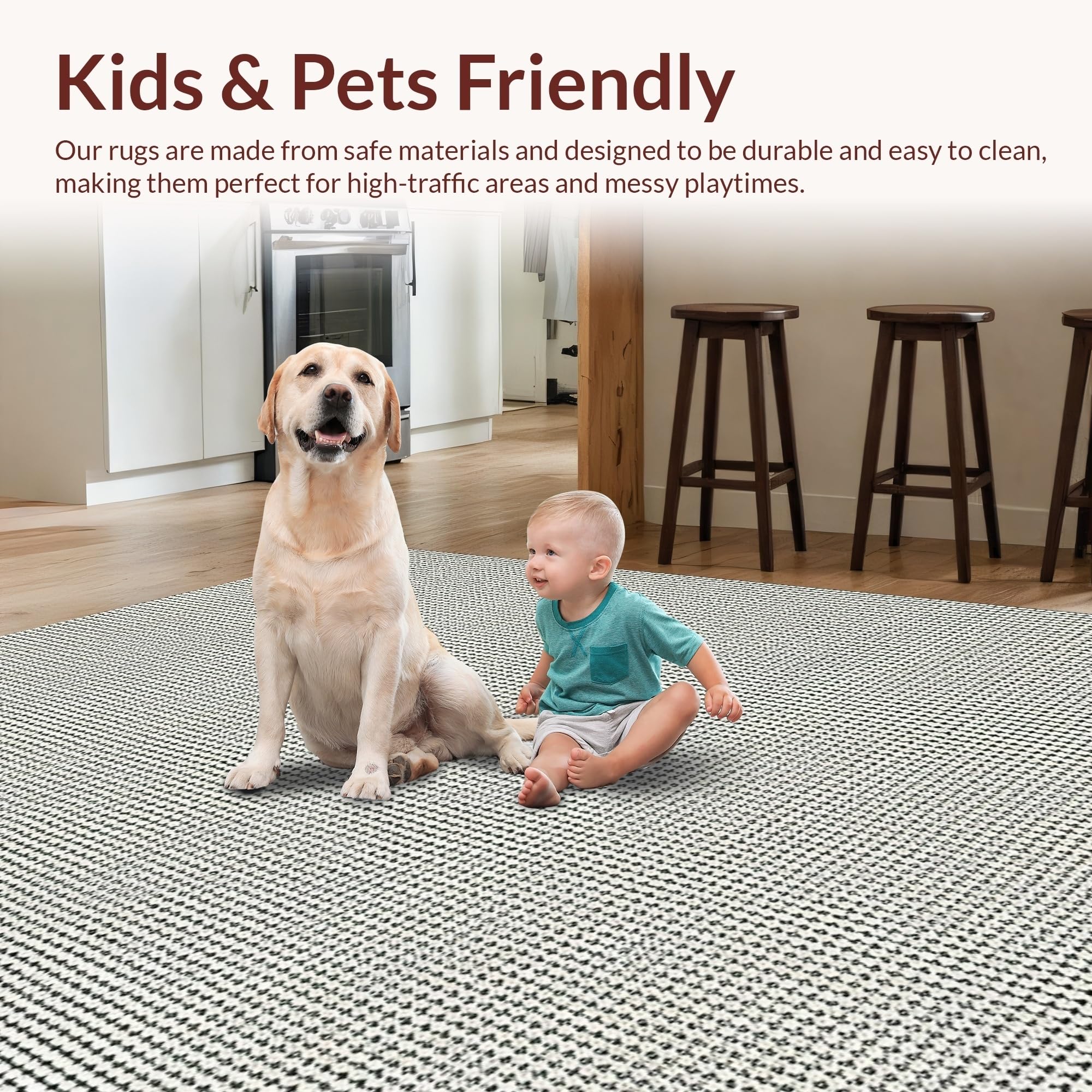 Ultra Soft Area Rug, Non Slip, Stain Resistant, Washable Area Rugs for Living Room, Bedroom, Chic Monochrome Geometric Layout(Gray) Overview: