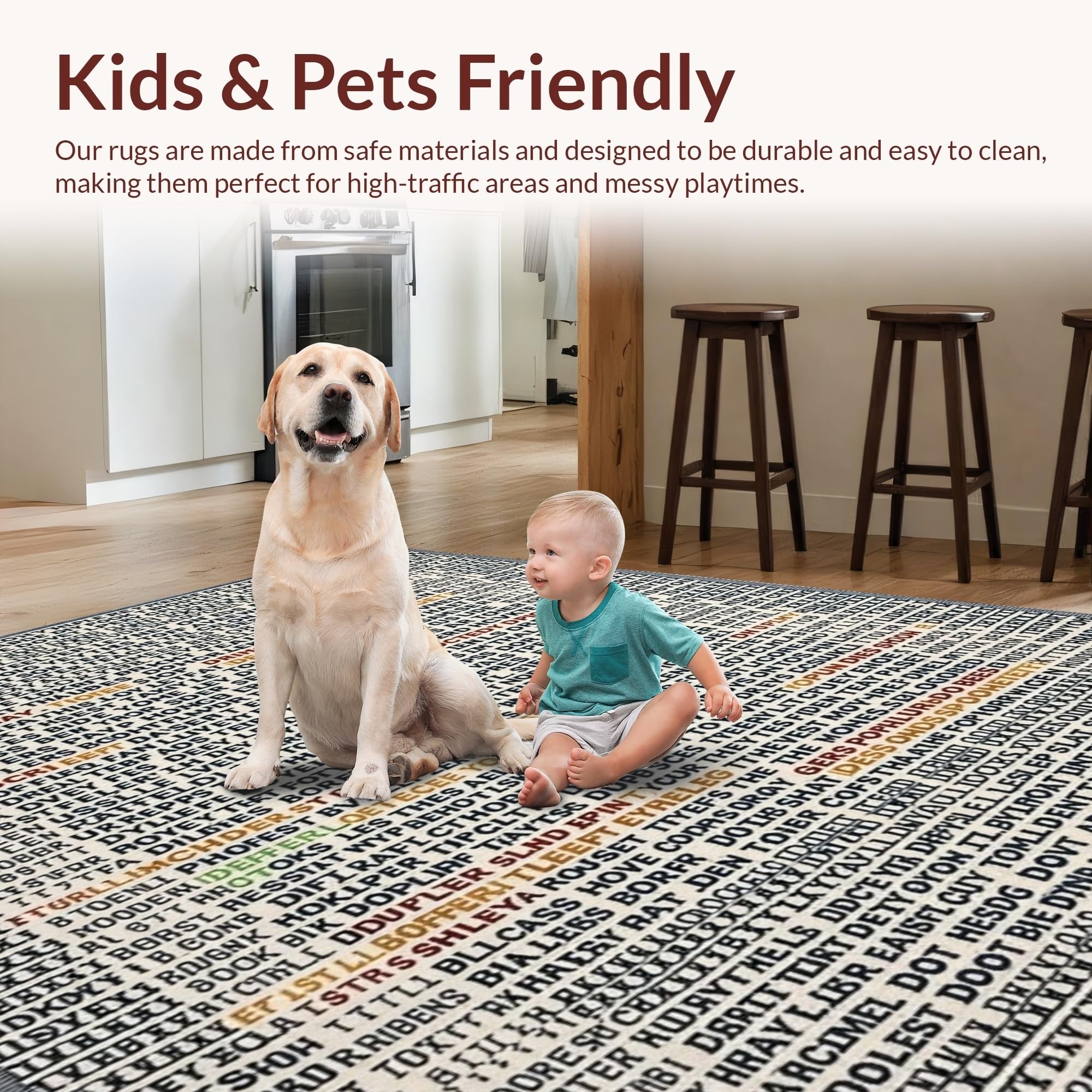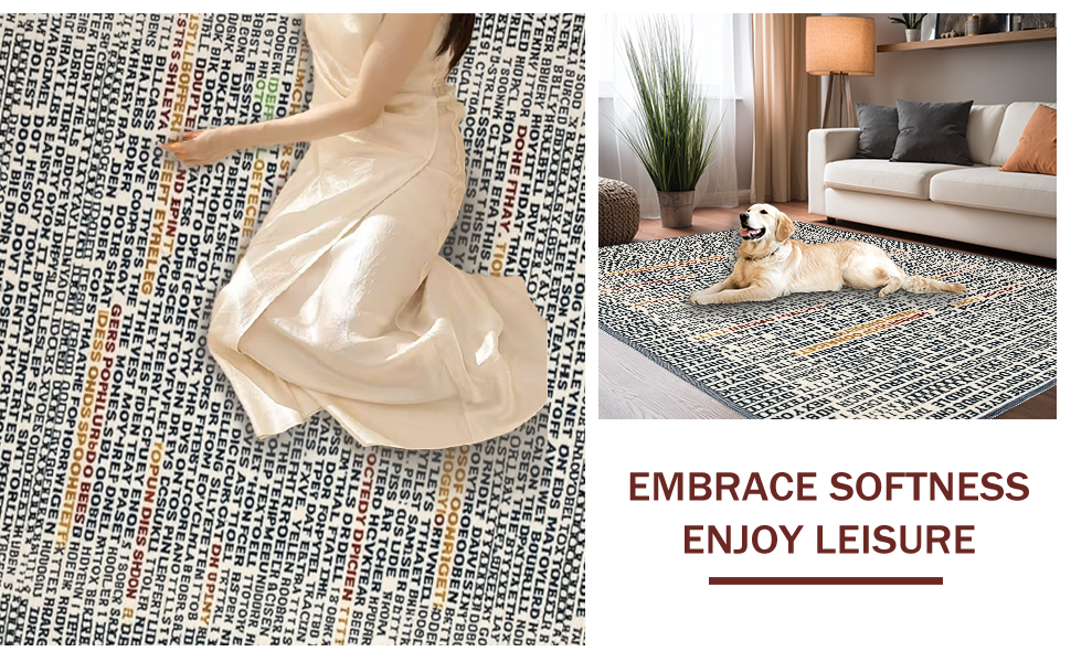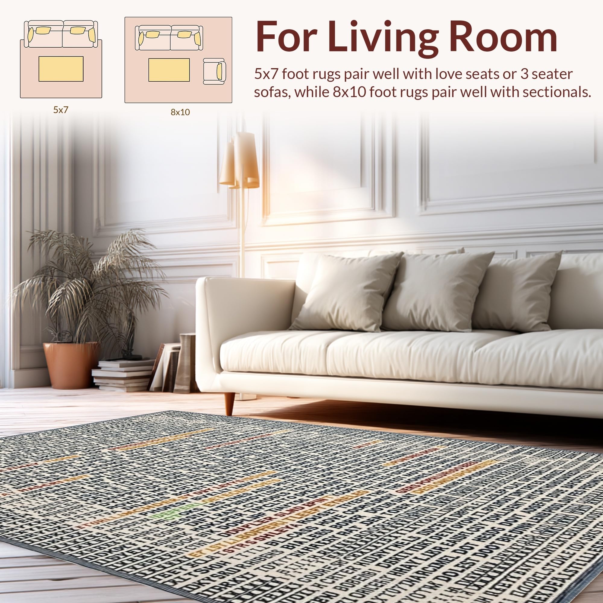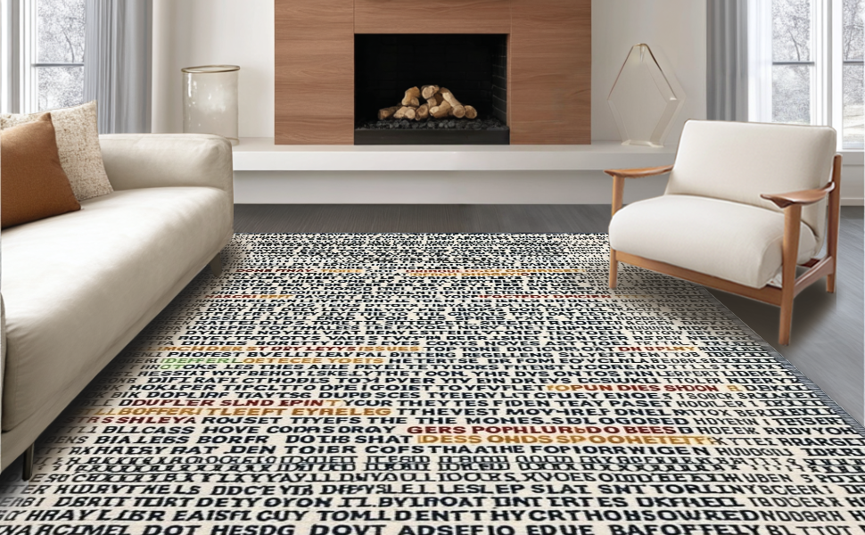 Ultra Soft Area Rug, Non Slip, Stain Resistant, Washable Area Rugs for Living Room, Bedroom, Chic Monochrome Graphic Statement(Beige) Overview: