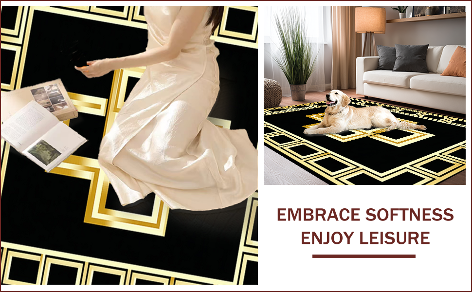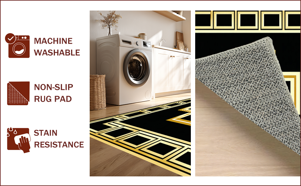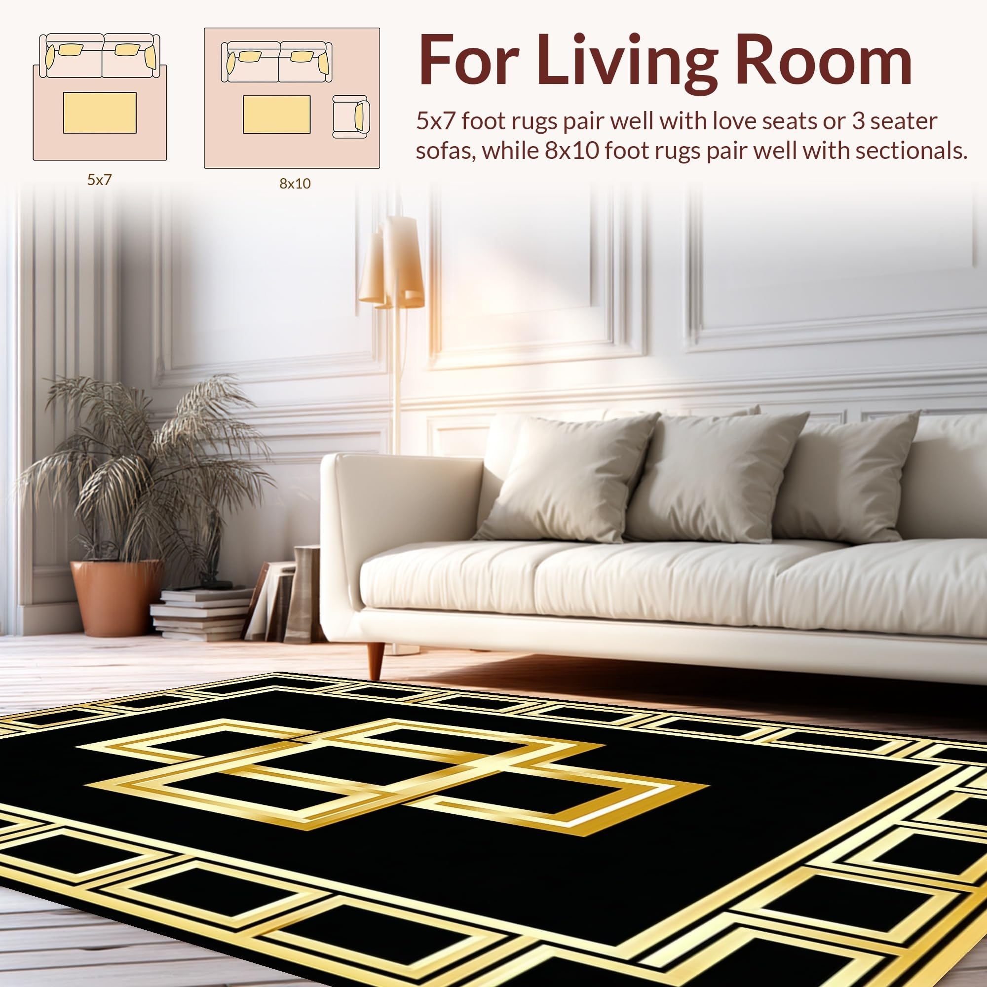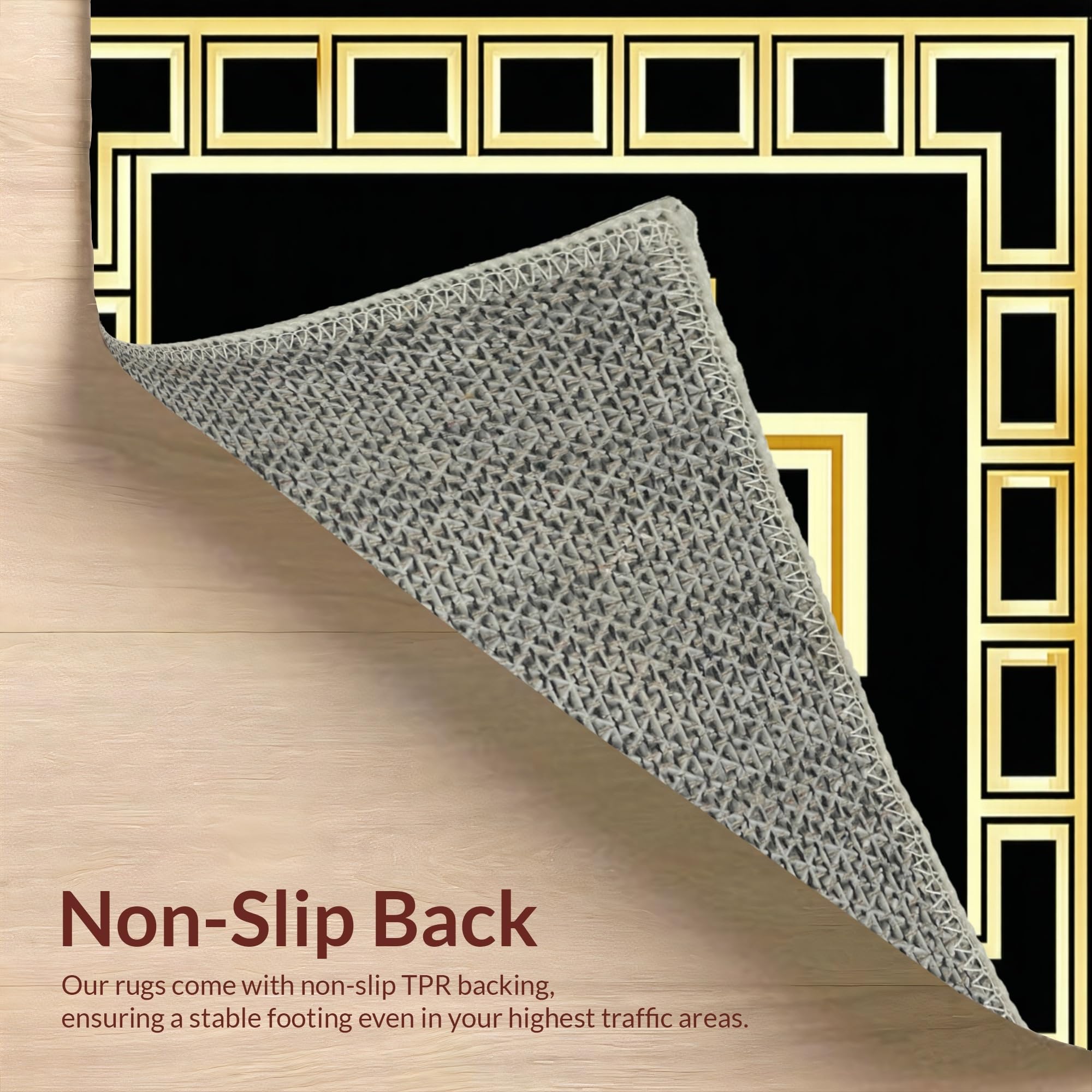 Ultra Soft Area Rug, Non Slip, Stain Resistant, Washable Area Rugs for Living Room, Bedroom, Chic Monochrome Greek Key Motif(Black) Overview: