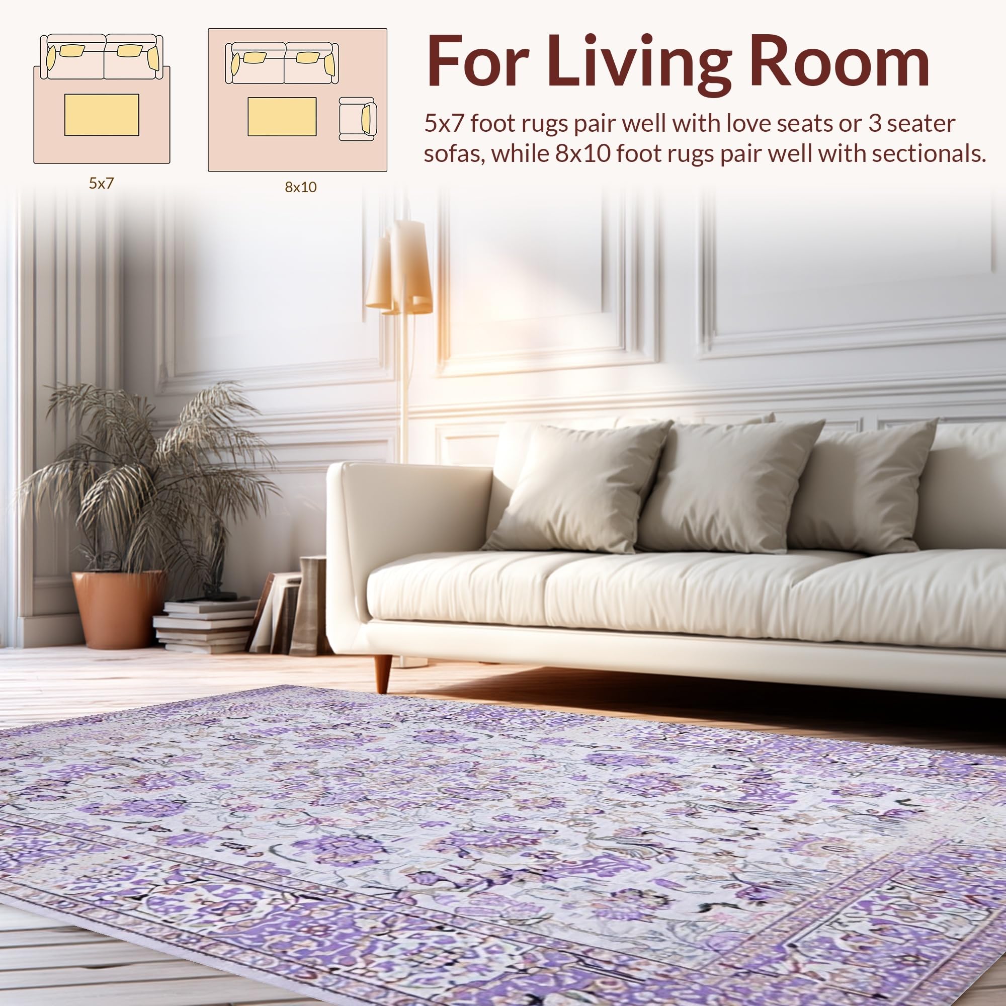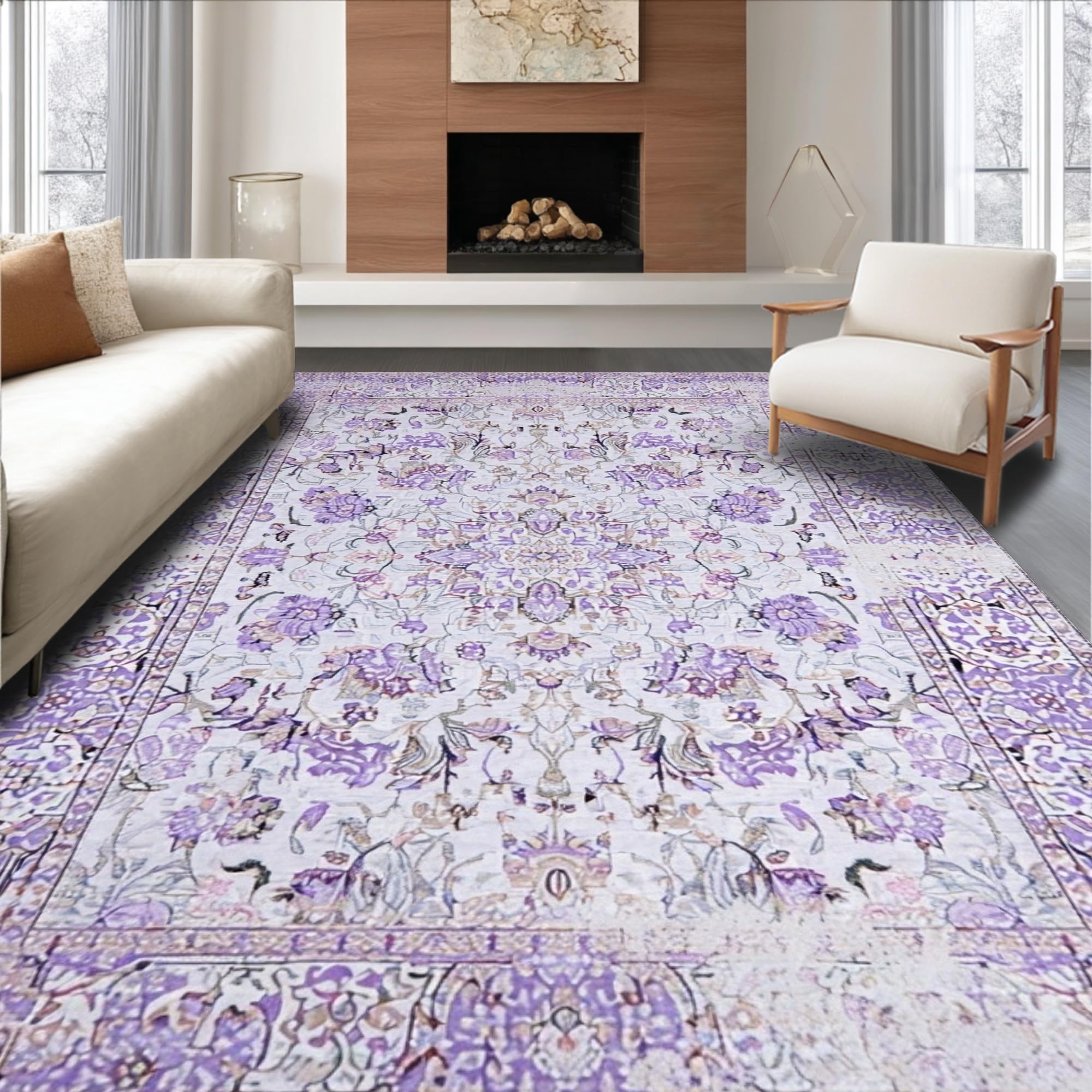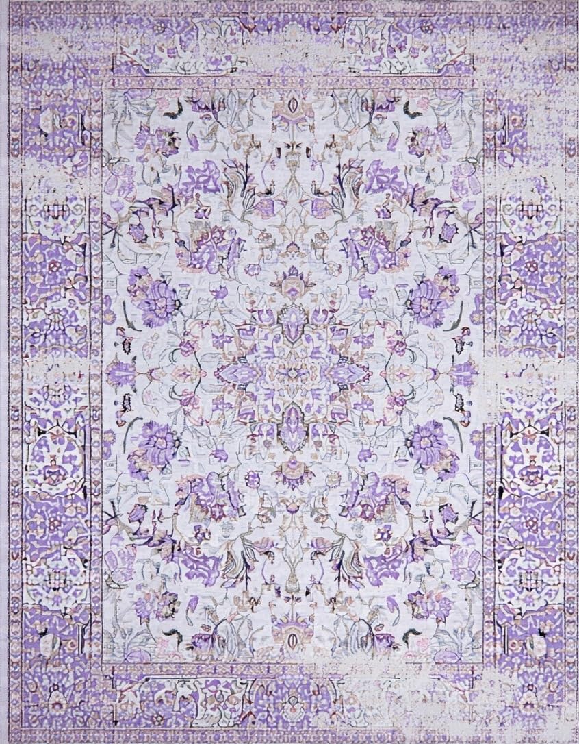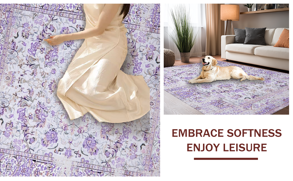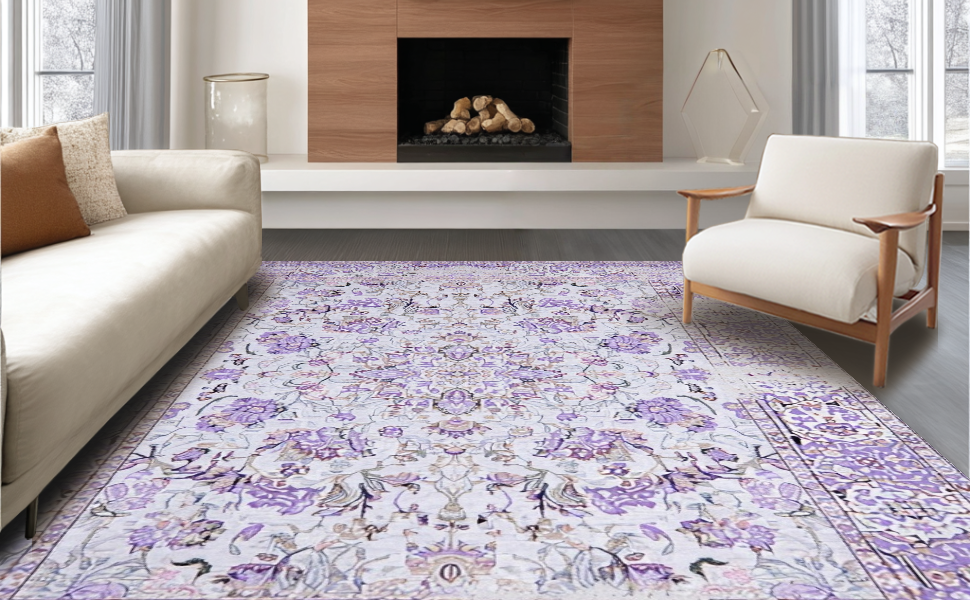 Ultra Soft Area Rug, Non Slip, Stain Resistant, Washable Area Rugs for Living Room, Bedroom, Chic Monochrome Lattice Motif(Purple) Overview: