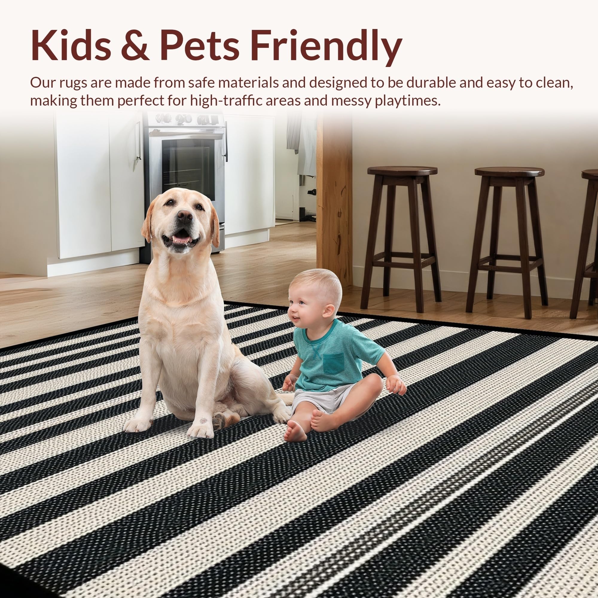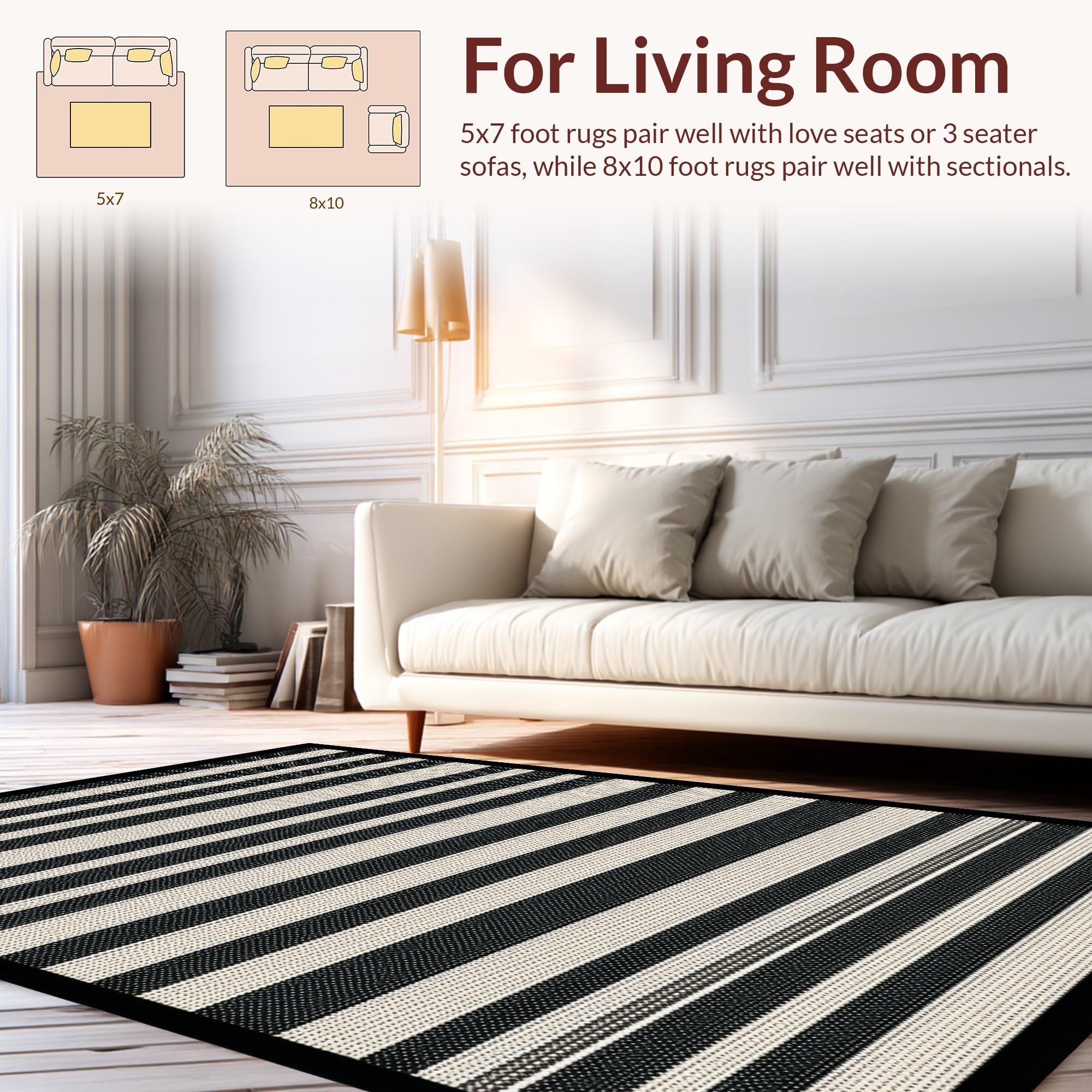 Ultra Soft Area Rug, Non Slip, Stain Resistant, Washable Area Rugs for Living Room, Bedroom, Chic Monochrome Lettering Style(Black) Overview: