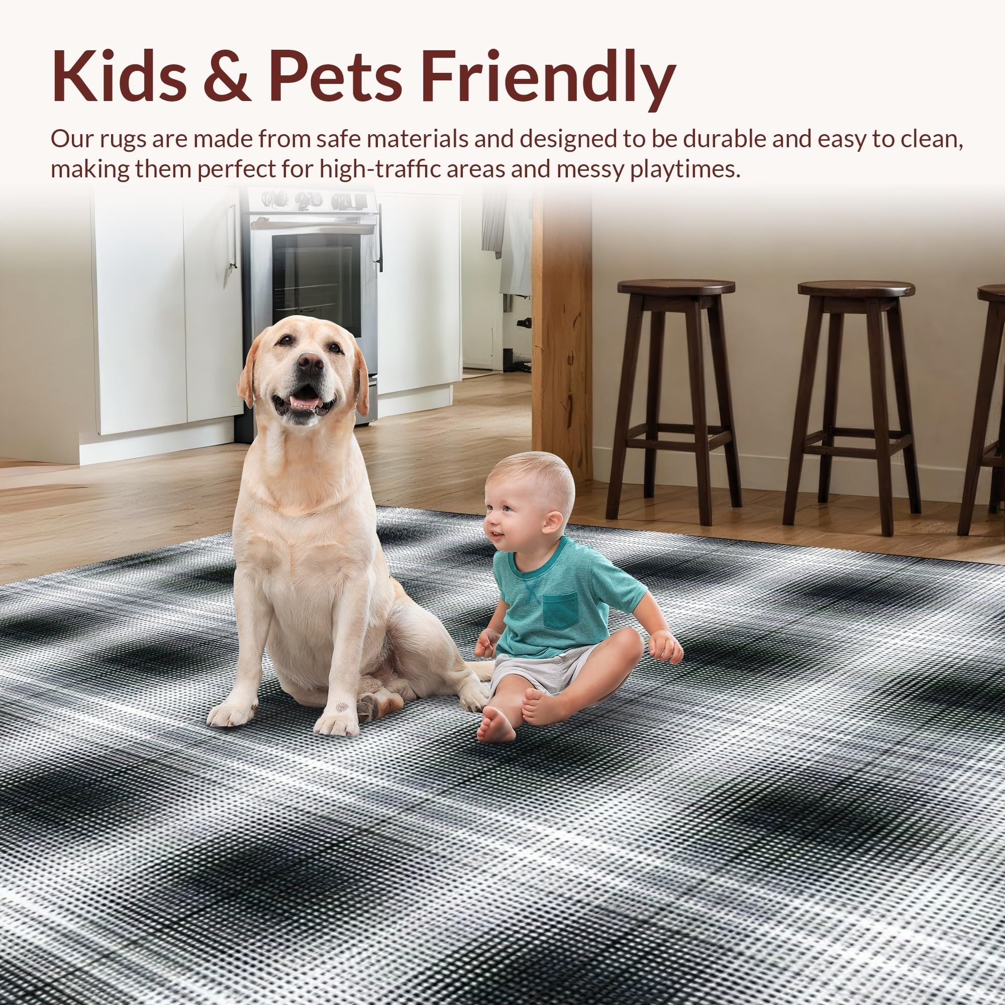 Ultra Soft Area Rug, Non Slip, Stain Resistant, Washable Area Rugs for Living Room, Bedroom, Chic Monochrome Ogee Pattern(Gray) Overview: