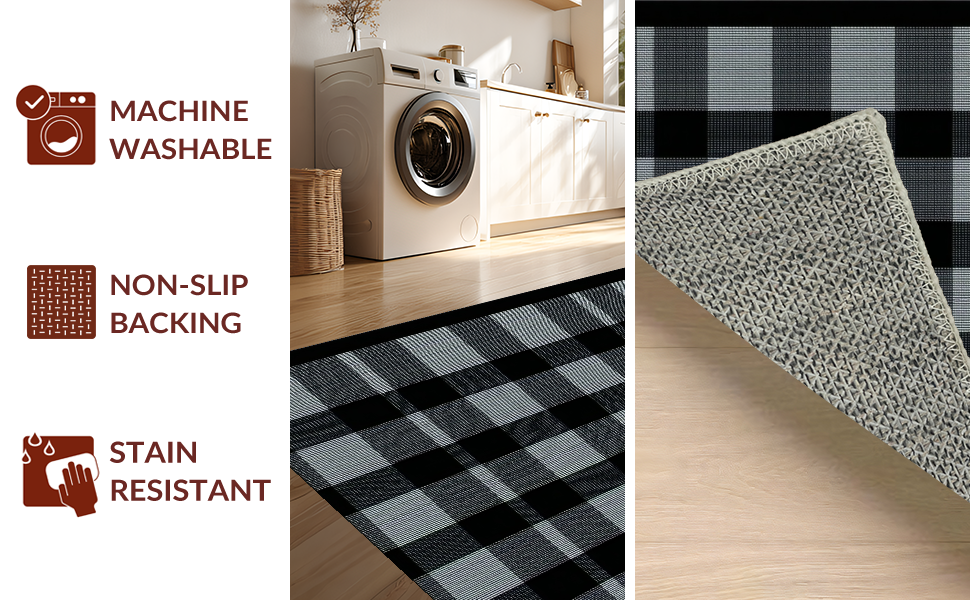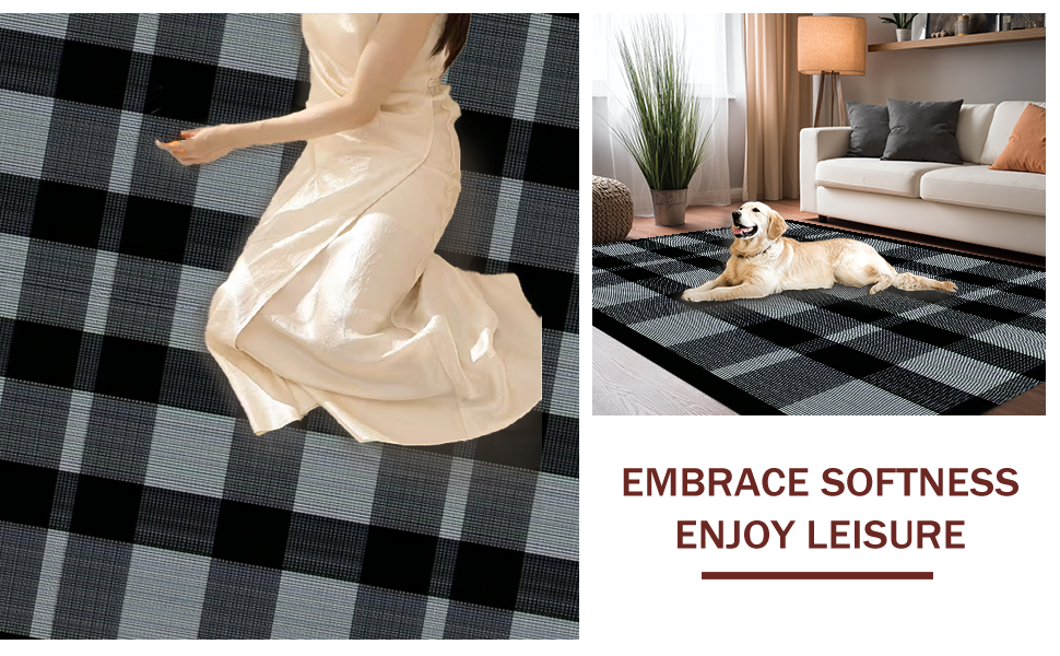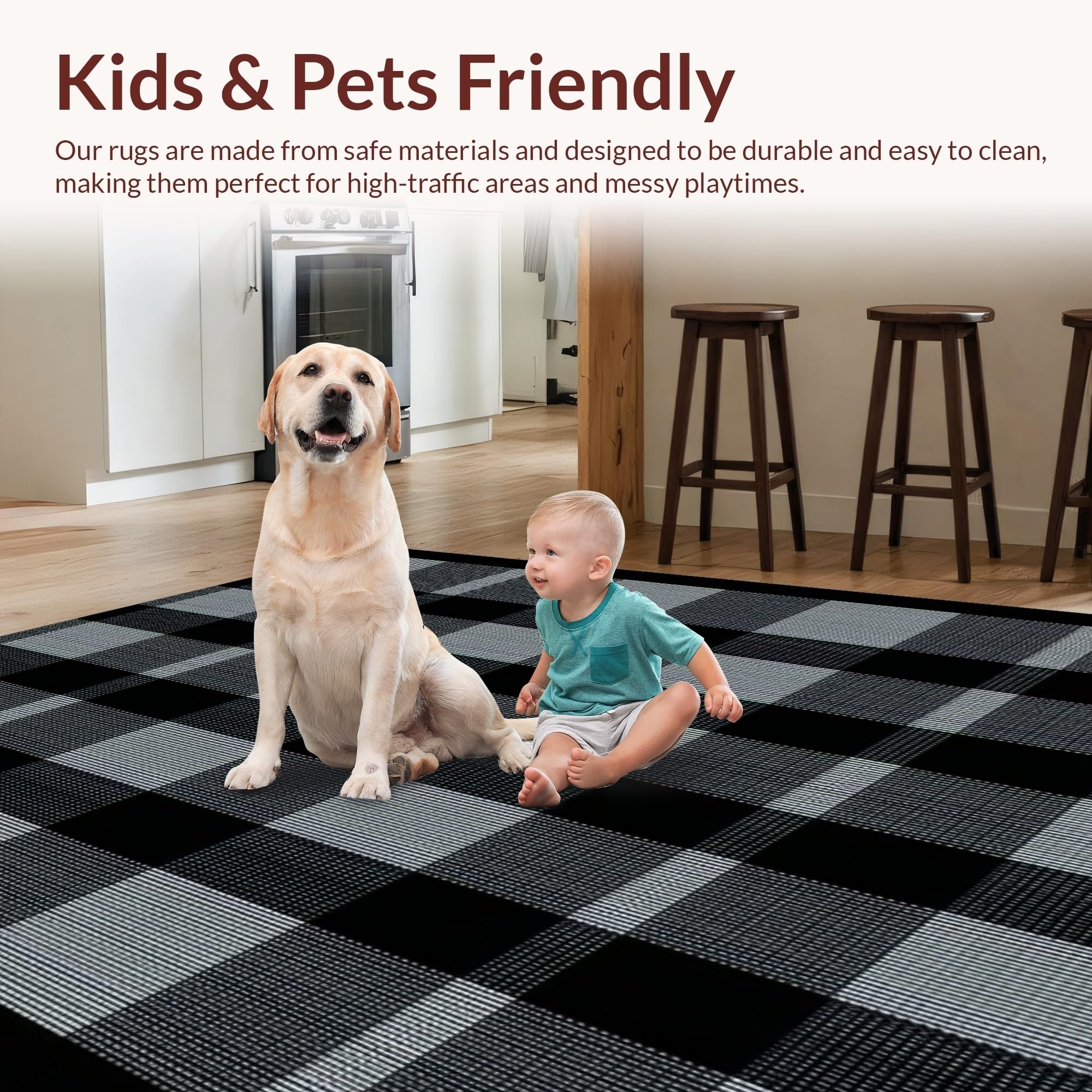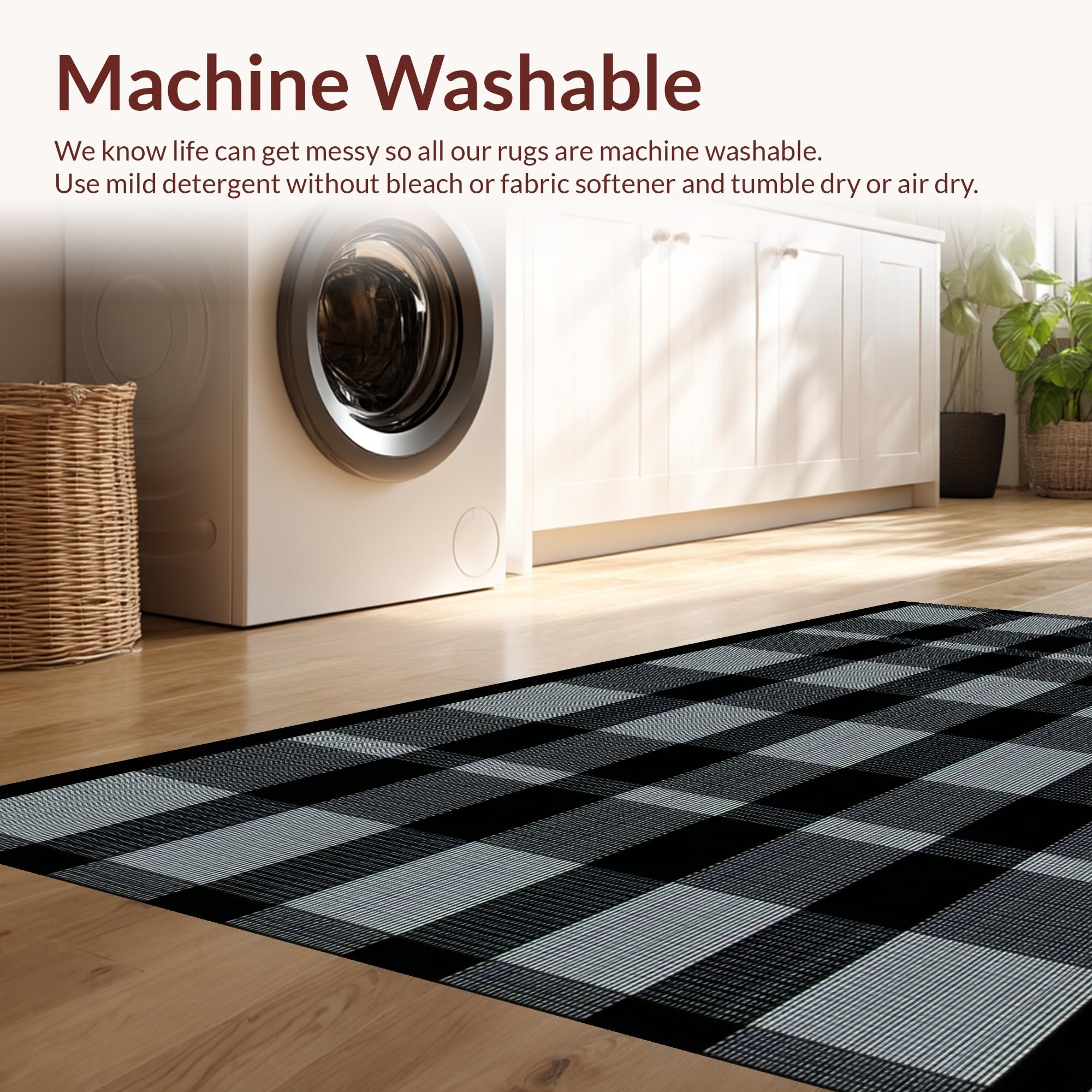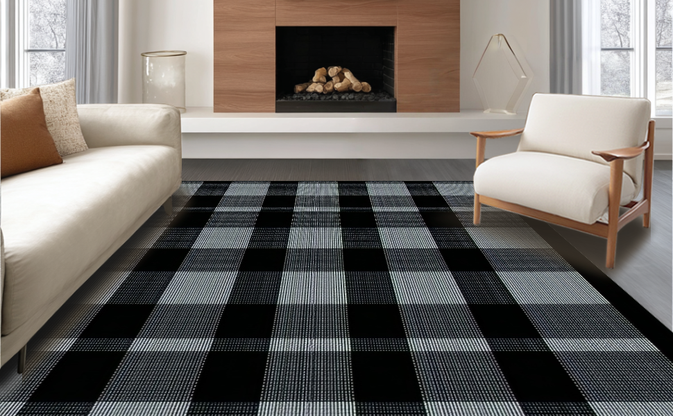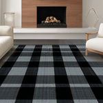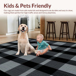 Ultra Soft Area Rug, Non Slip, Stain Resistant, Washable Area Rugs for Living Room, Bedroom, Chic Monochrome Plaid Aesthetic(Black) Overview: