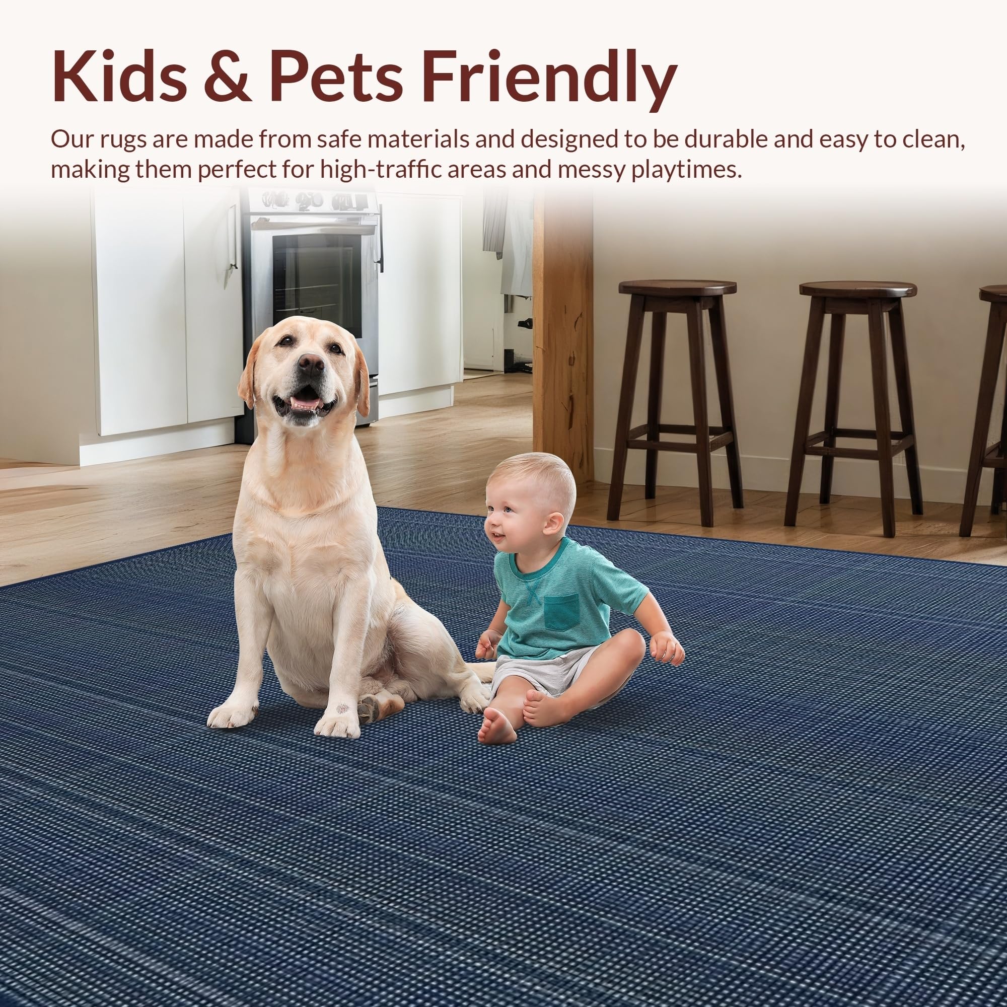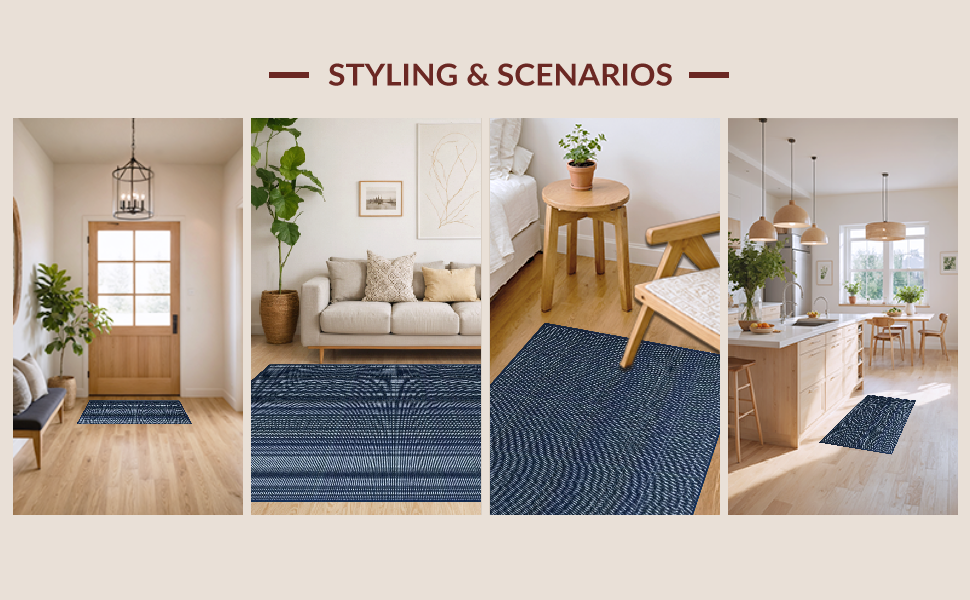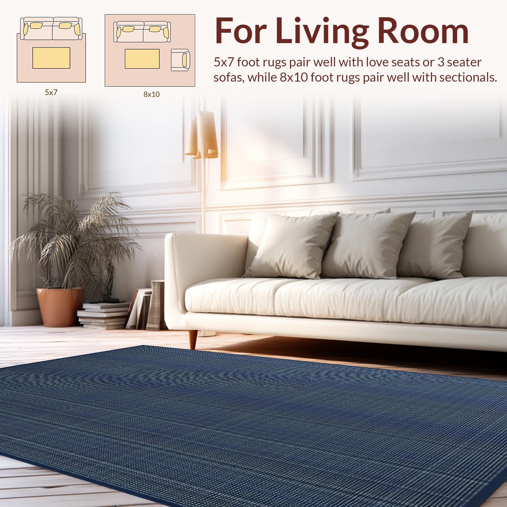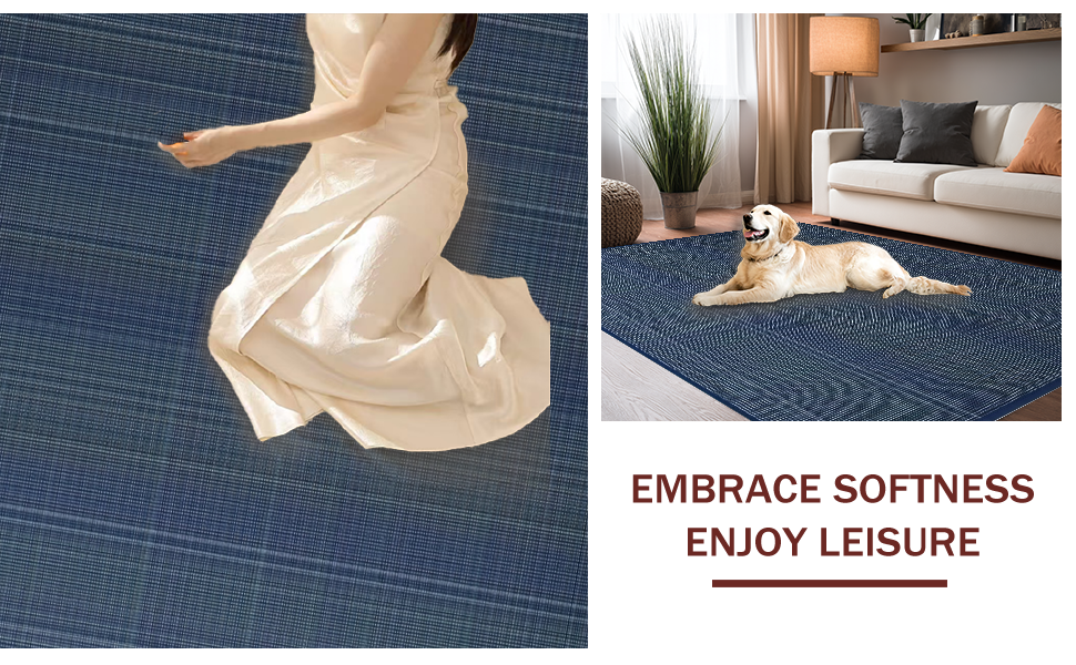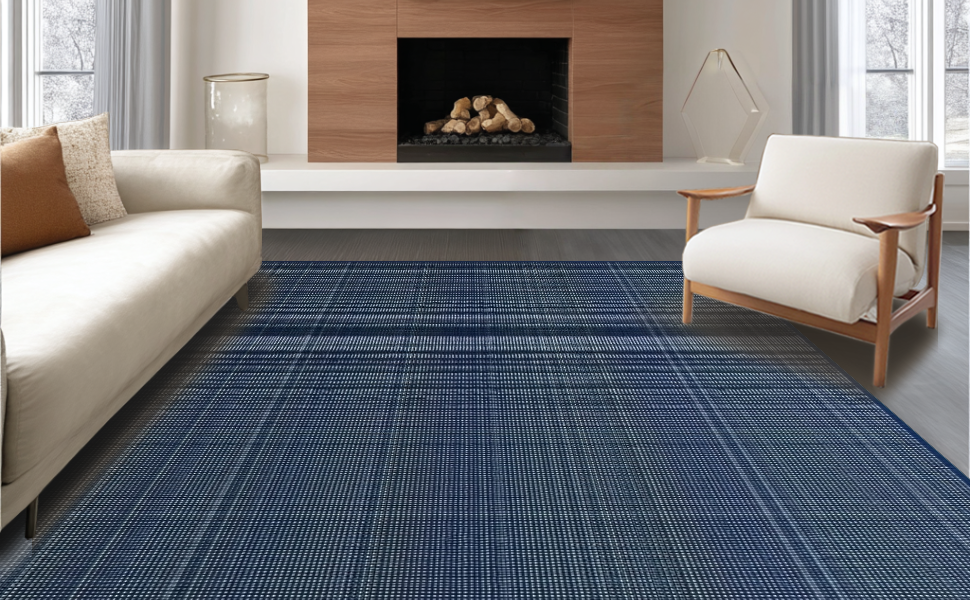 Ultra Soft Area Rug, Non Slip, Stain Resistant, Washable Area Rugs for Living Room, Bedroom, Chic Monochrome Rustic Charm(Blue) Overview: