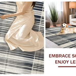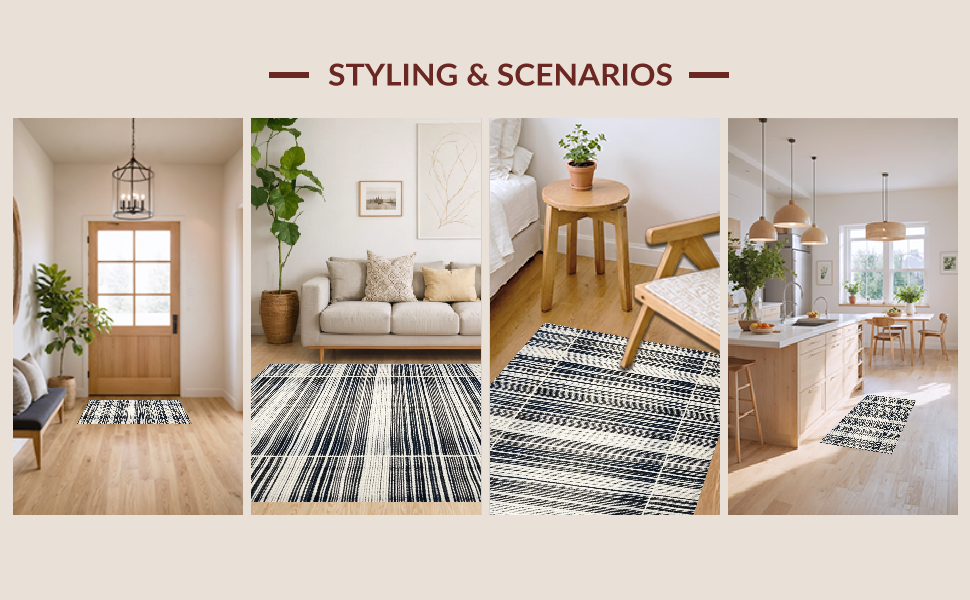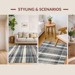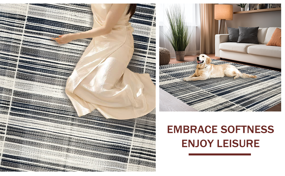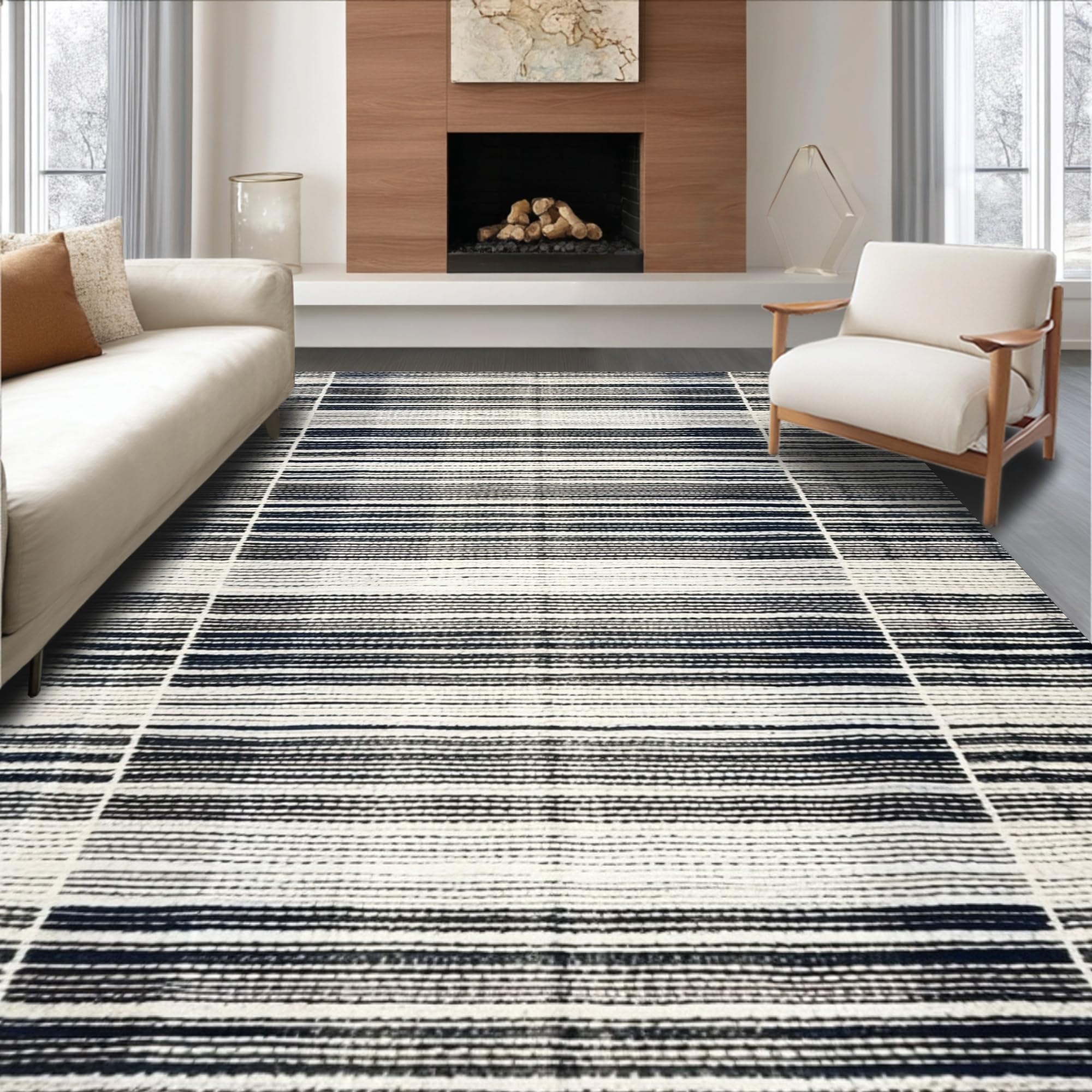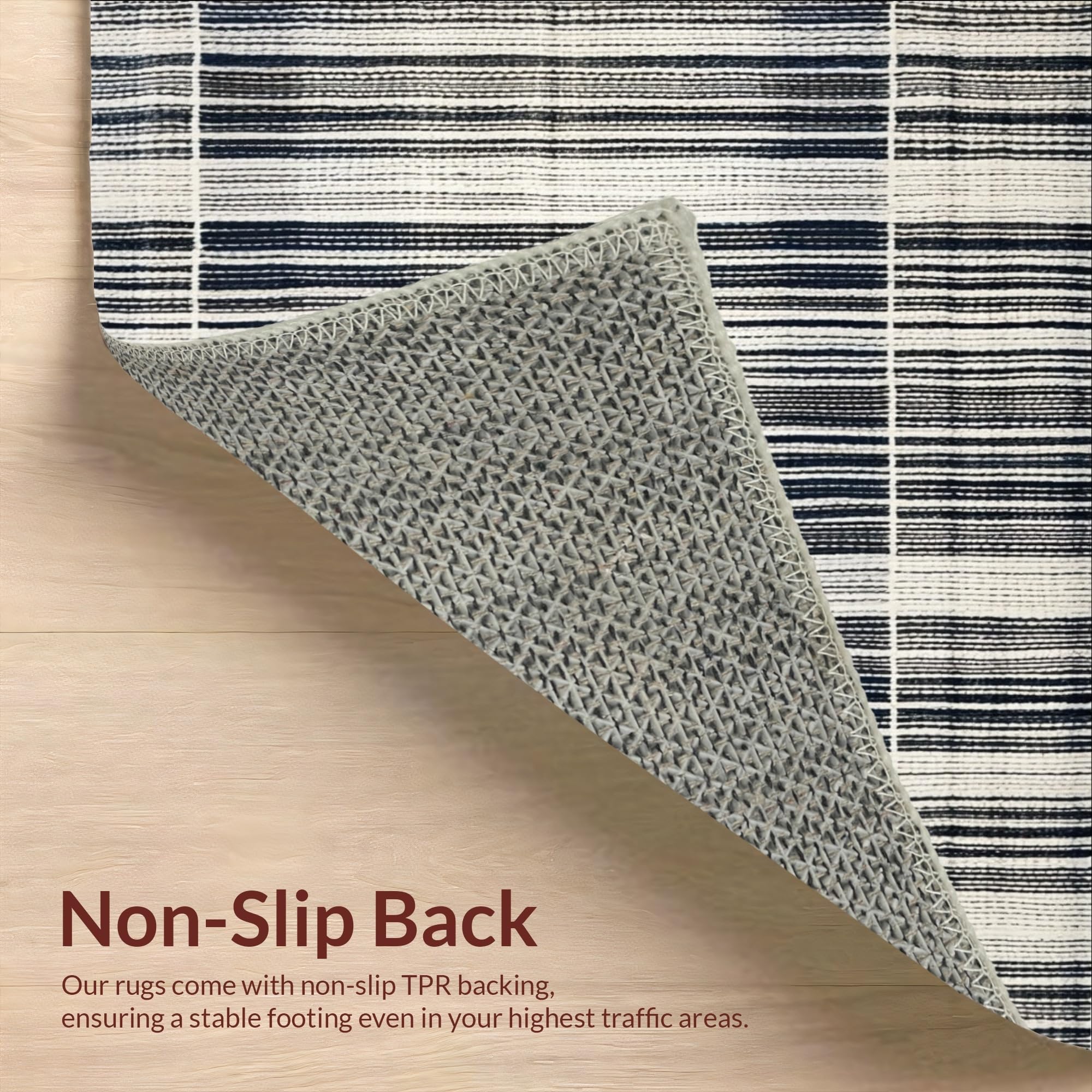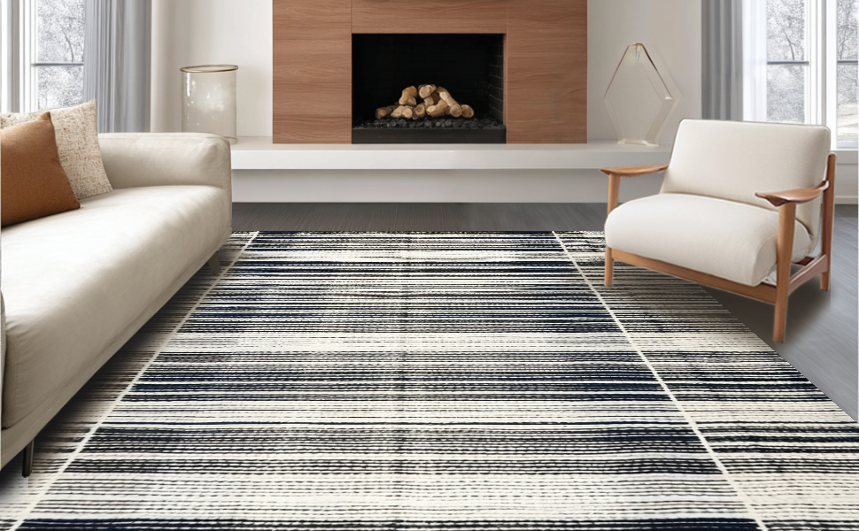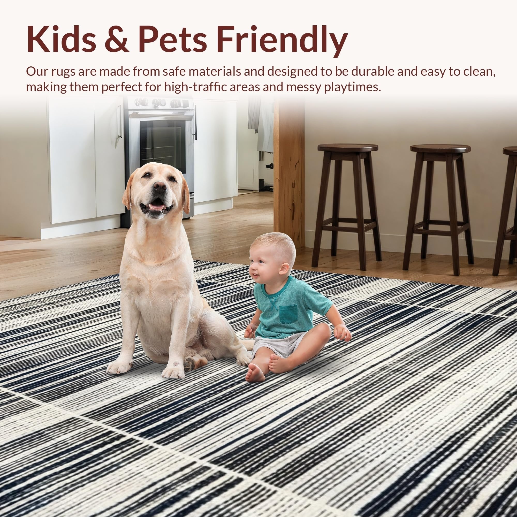 Ultra Soft Area Rug, Non Slip, Stain Resistant, Washable Area Rugs for Living Room, Bedroom, Chic Monochrome Striped Carpet Washable Reversible Design(Black) Overview: