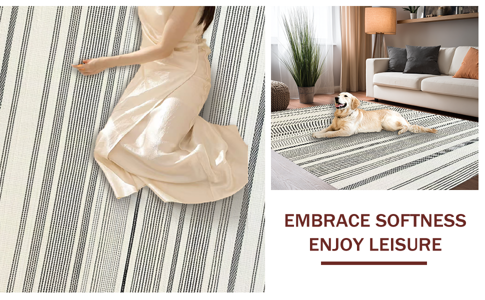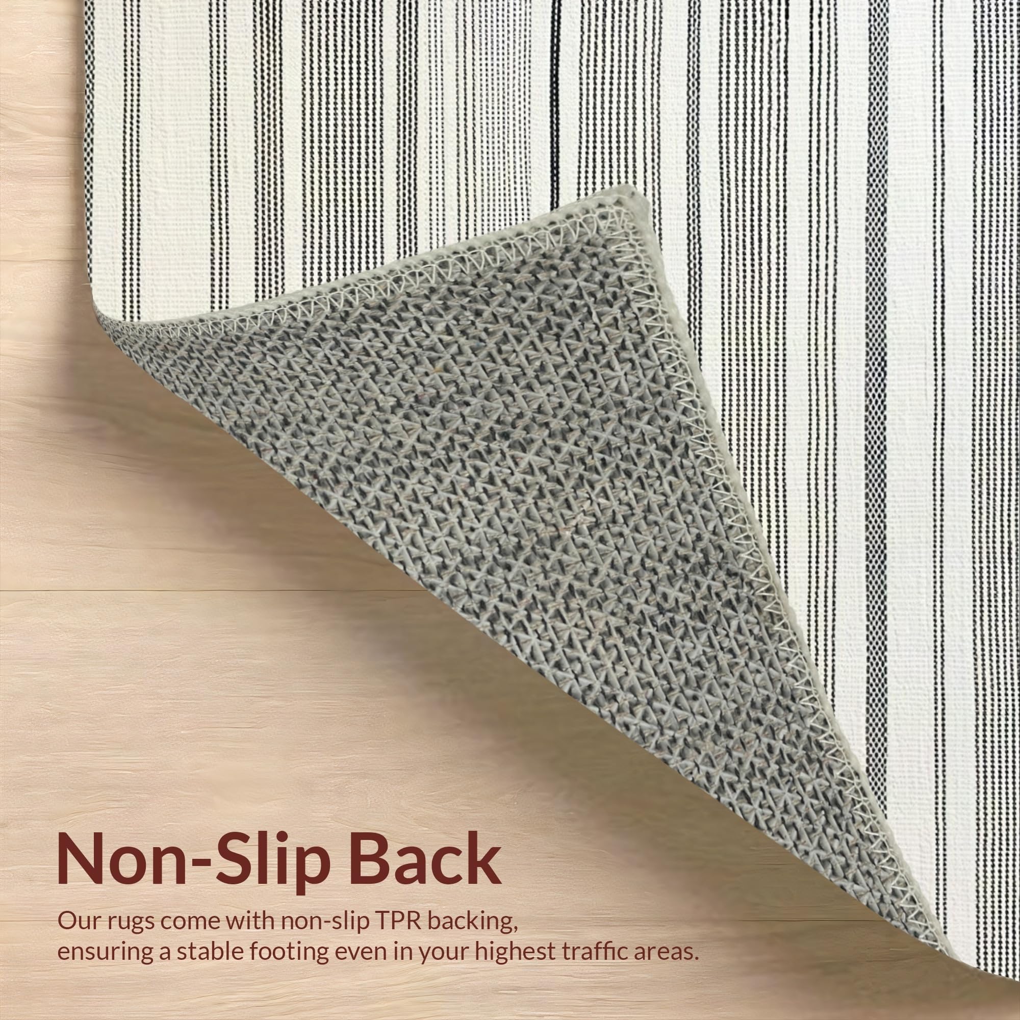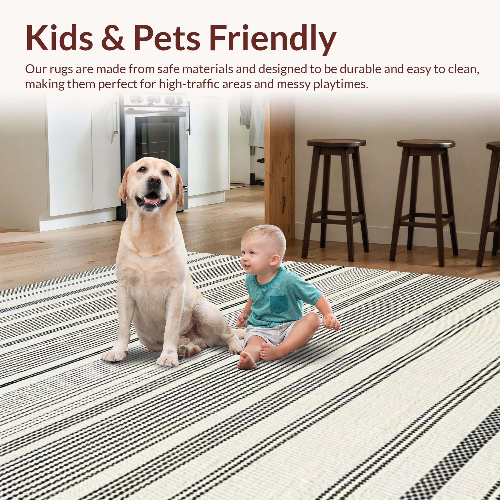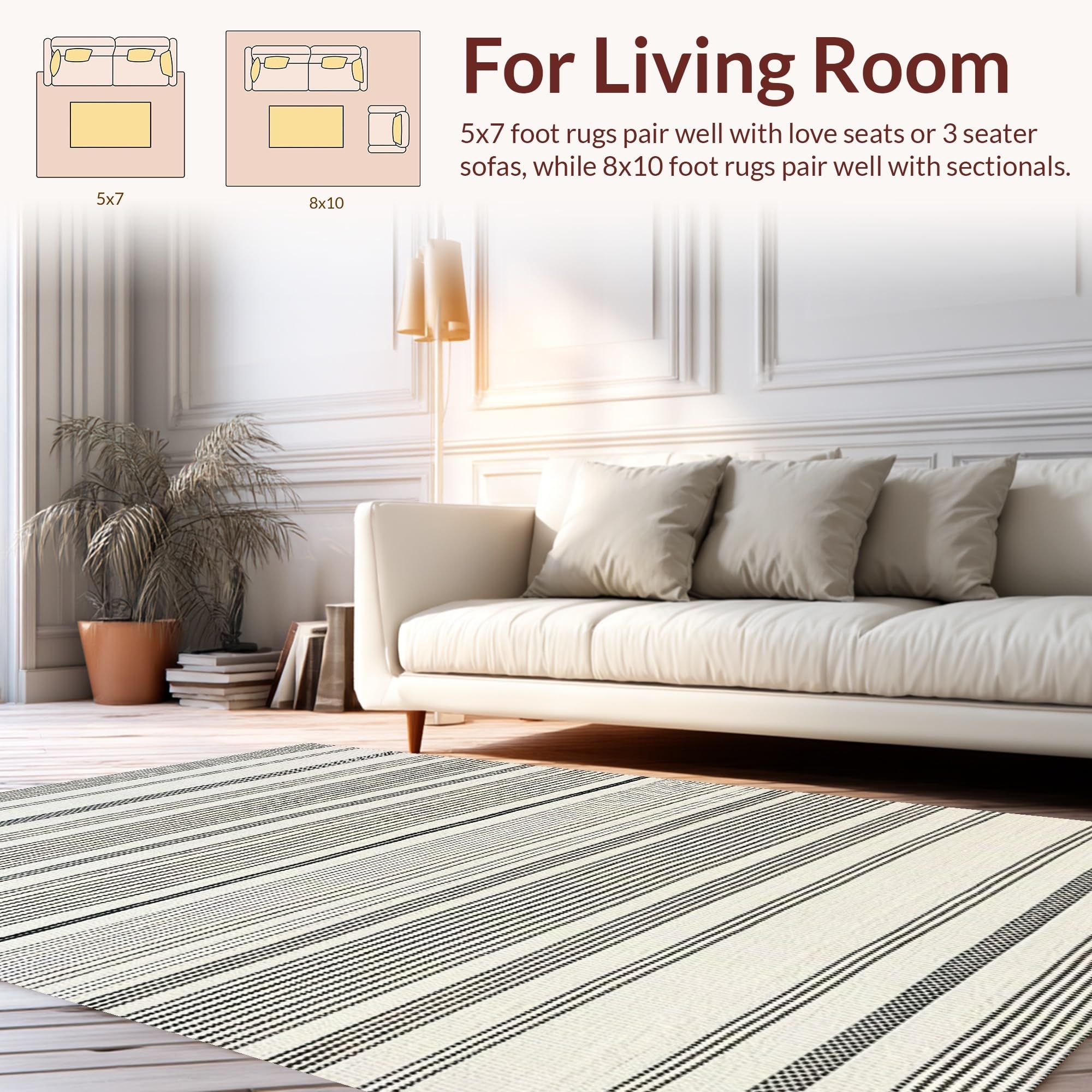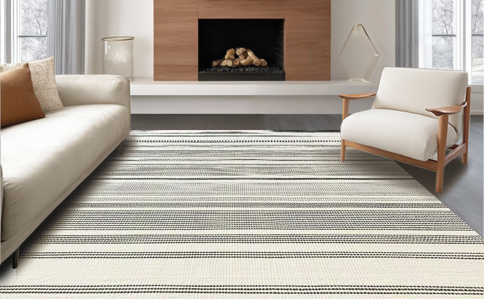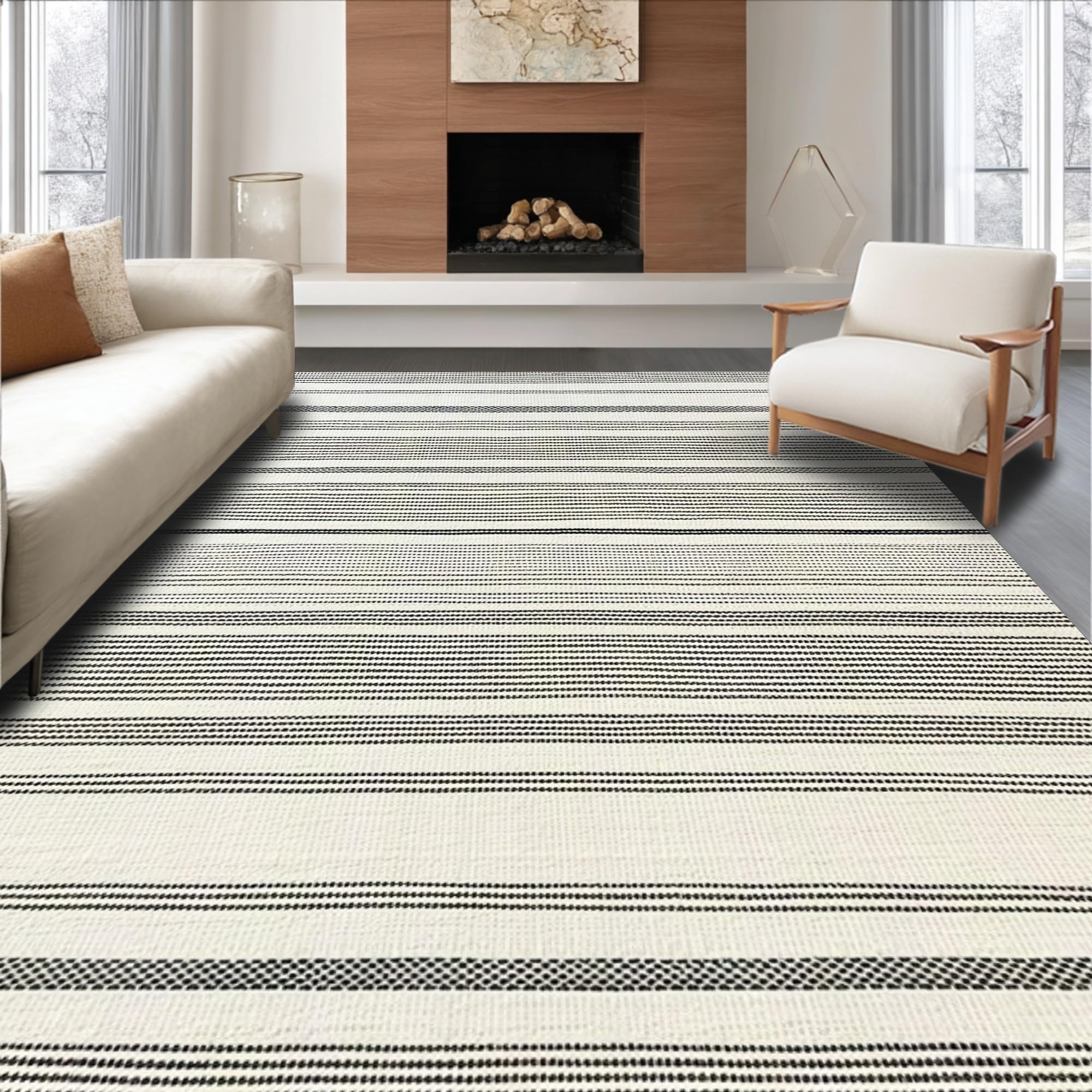 Ultra Soft Area Rug, Non Slip, Stain Resistant, Washable Area Rugs for Living Room, Bedroom, Chic Monochrome Striped Design(Beige) Overview: