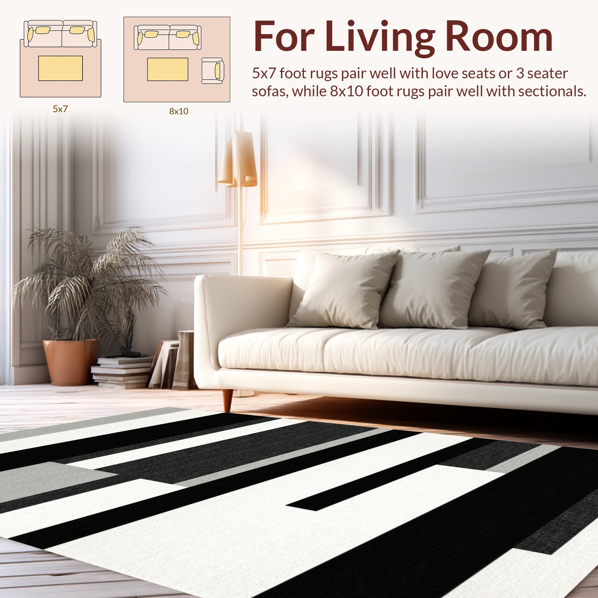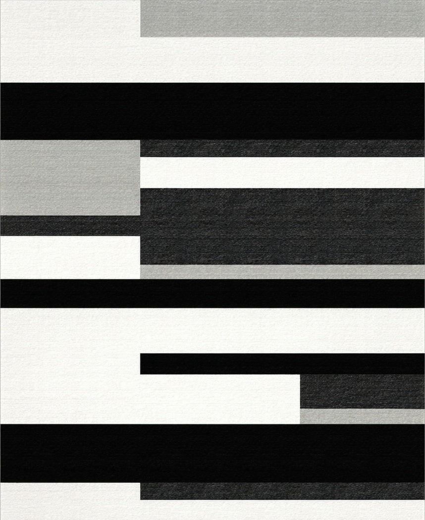 Ultra Soft Area Rug, Non Slip, Stain Resistant, Washable Area Rugs for Living Room, Bedroom, Chic Monochrome Striped Rug for Trendy Home Aesthetic(Black) Overview: