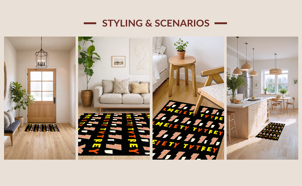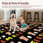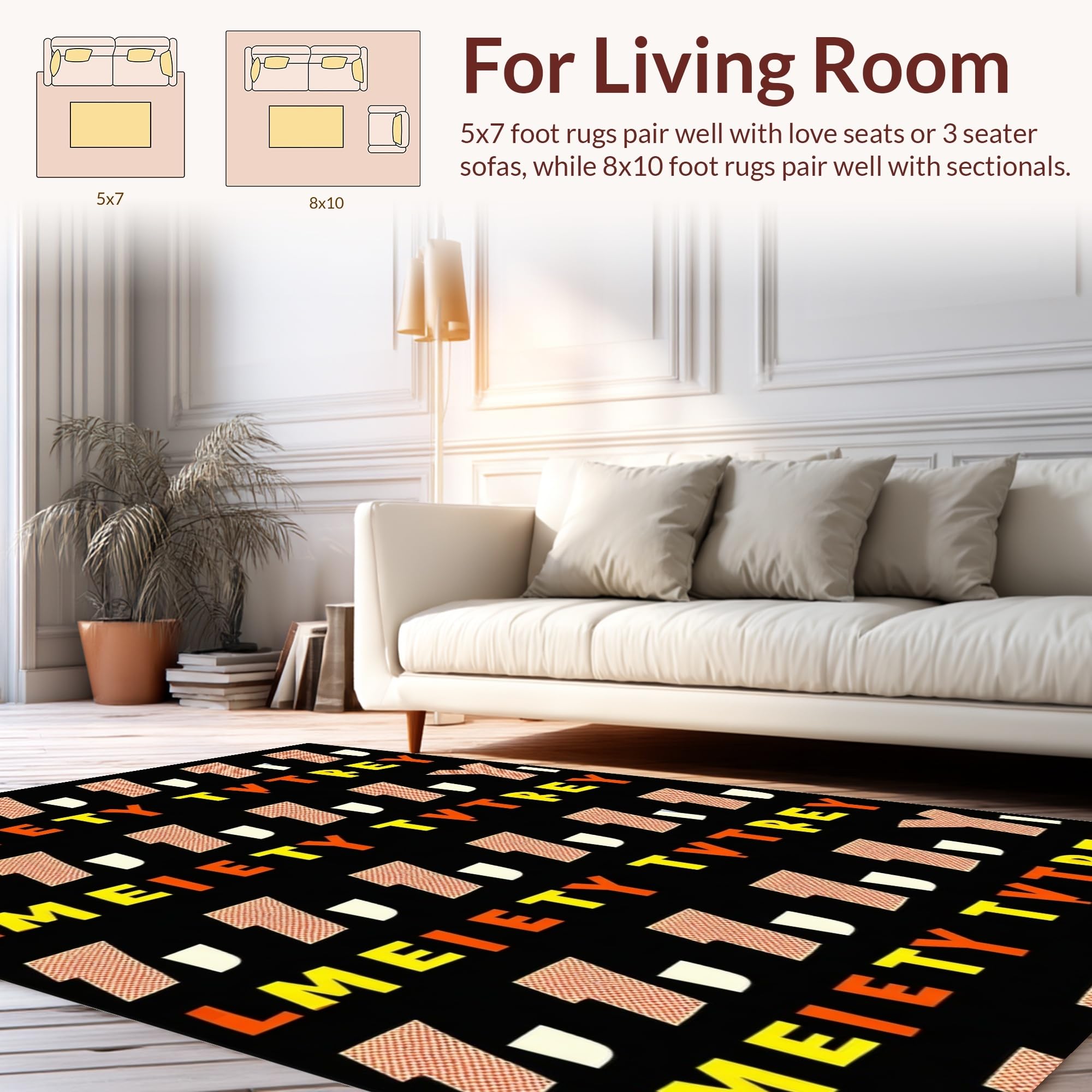 Ultra Soft Area Rug, Non Slip, Stain Resistant, Washable Area Rugs for Living Room, Bedroom, Chic Monochrome Text Statement(Red) Overview:
