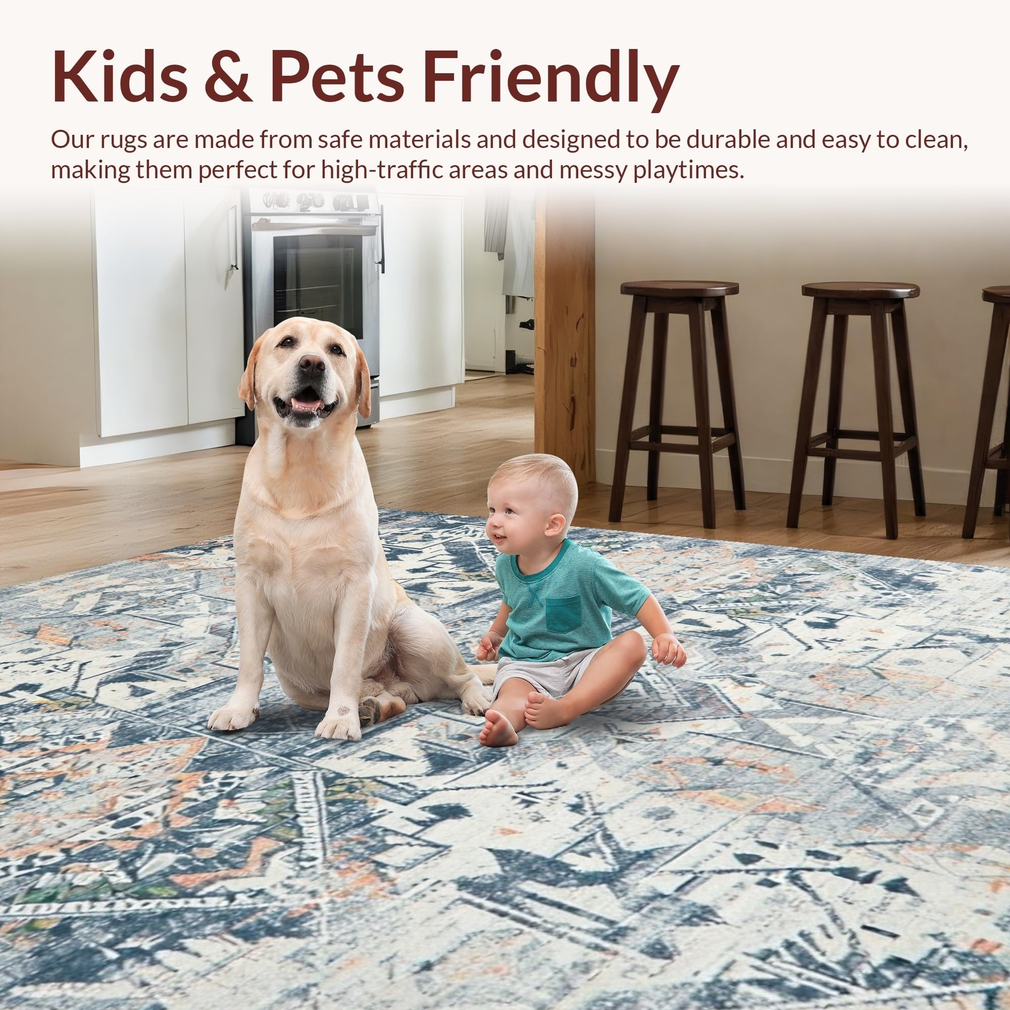 Ultra Soft Area Rug, Non Slip, Stain Resistant, Washable Area Rugs for Living Room, Bedroom, Chic Monochrome Tribal Aesthetic(Gray) Overview: