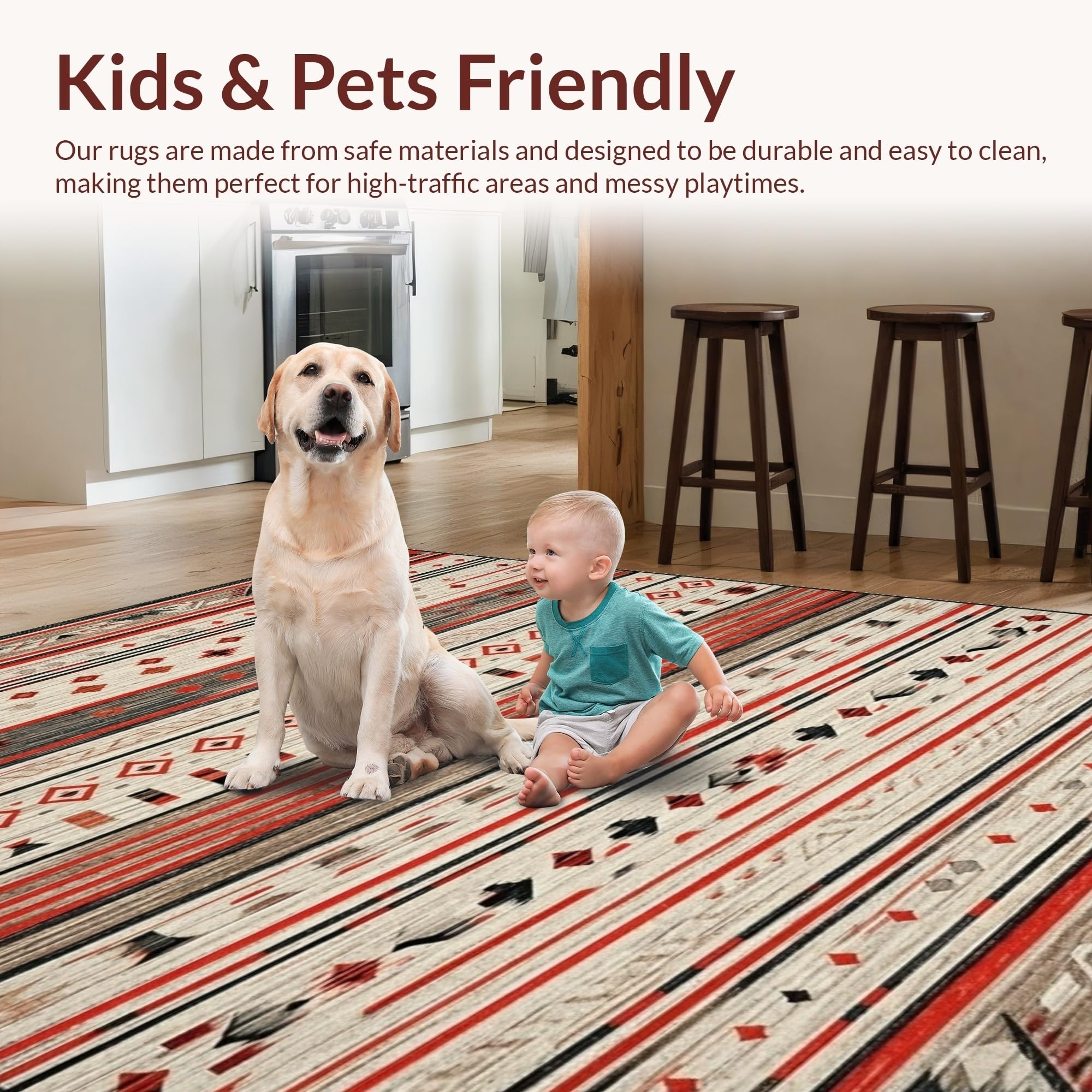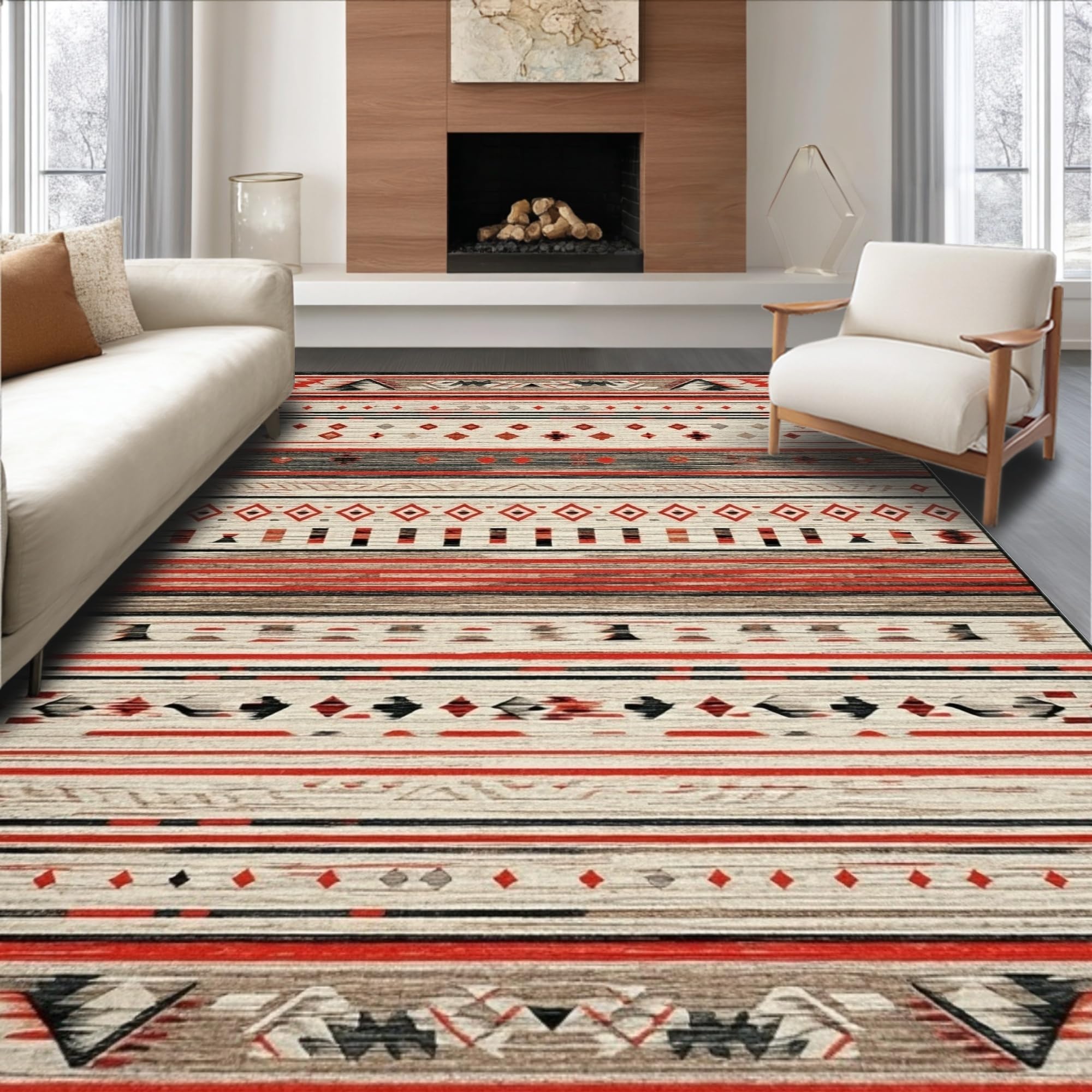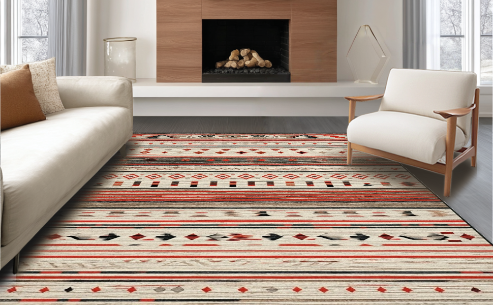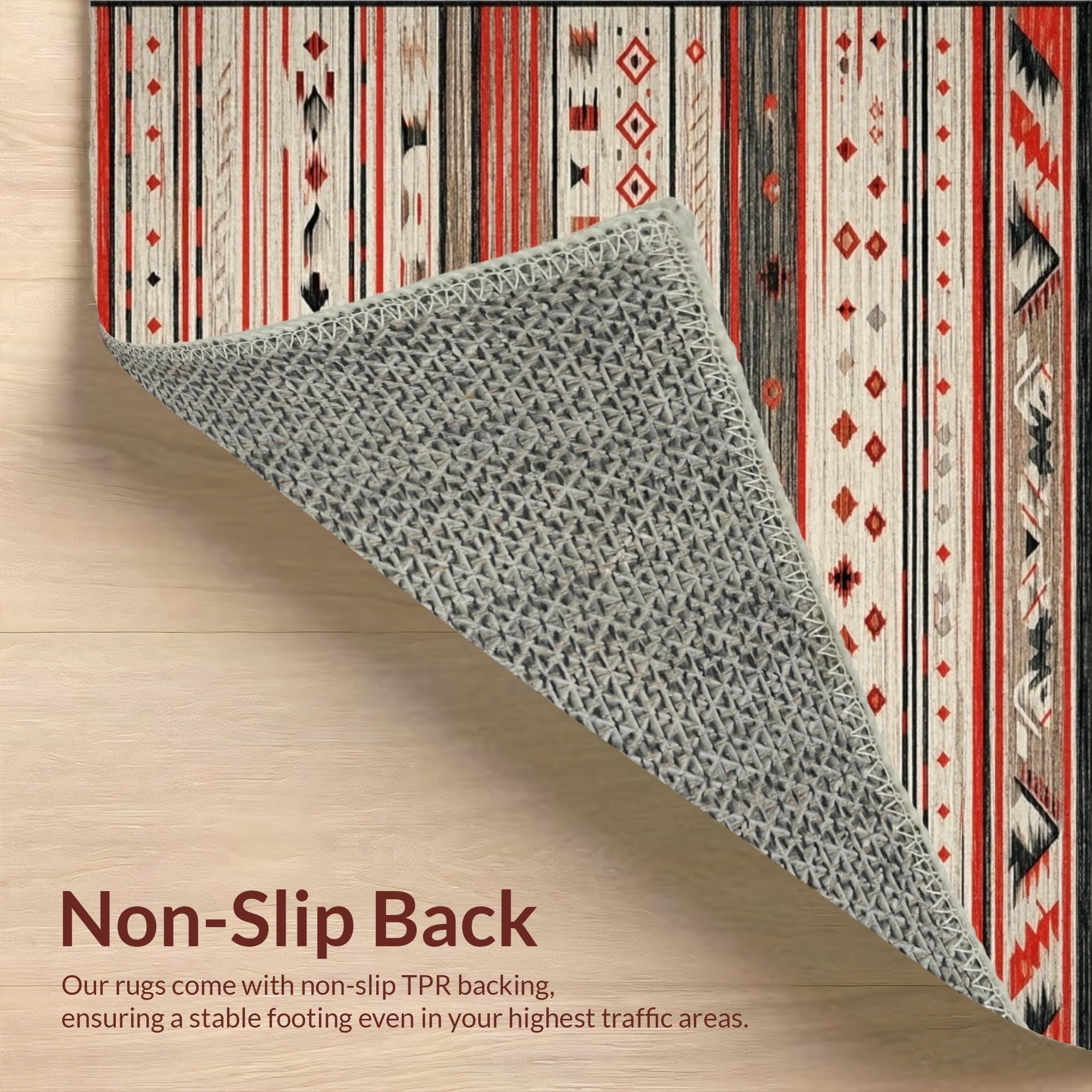 Ultra Soft Area Rug, Non Slip, Stain Resistant, Washable Area Rugs for Living Room, Bedroom, Chic Multicolor Ethnic Motif(Red) Overview: