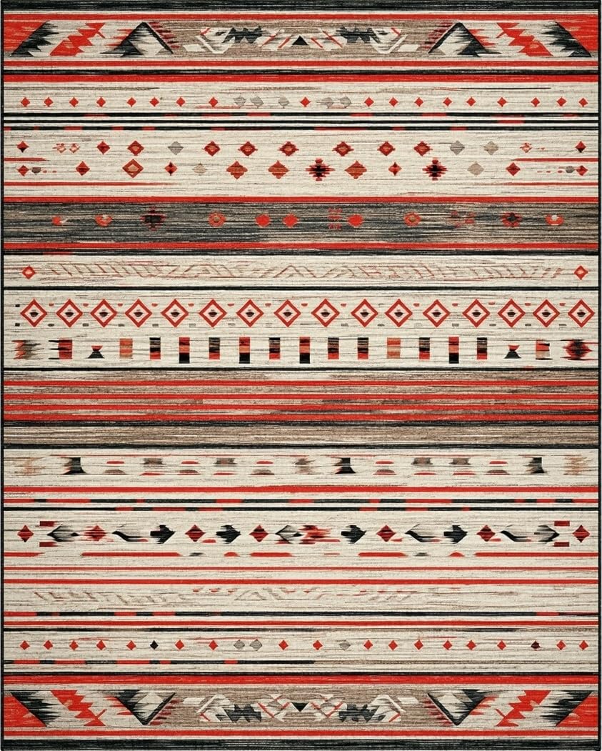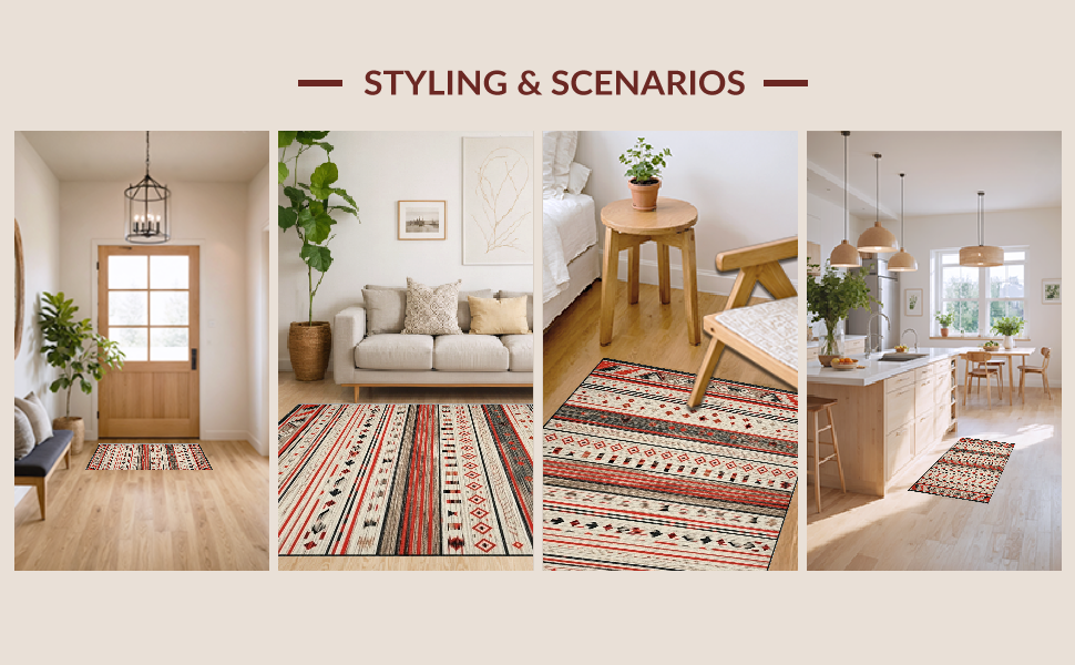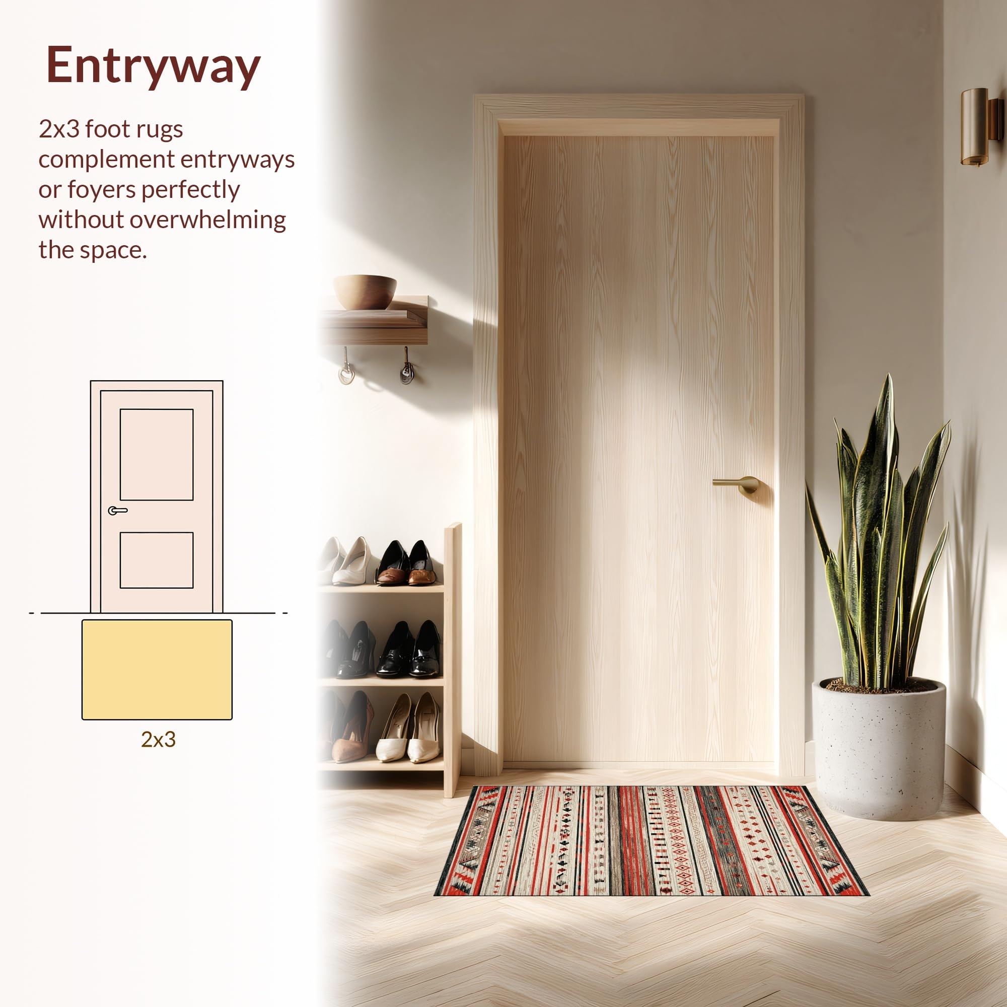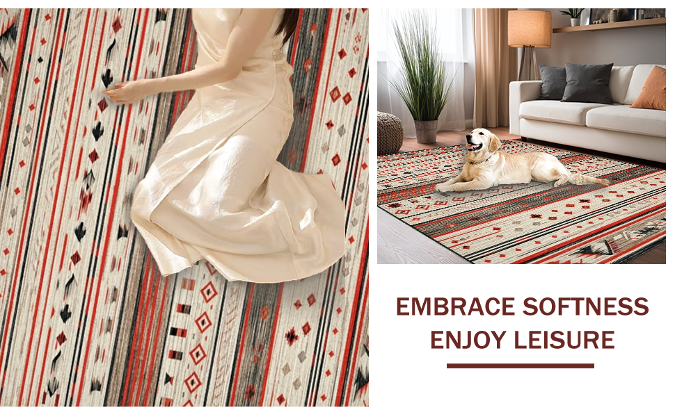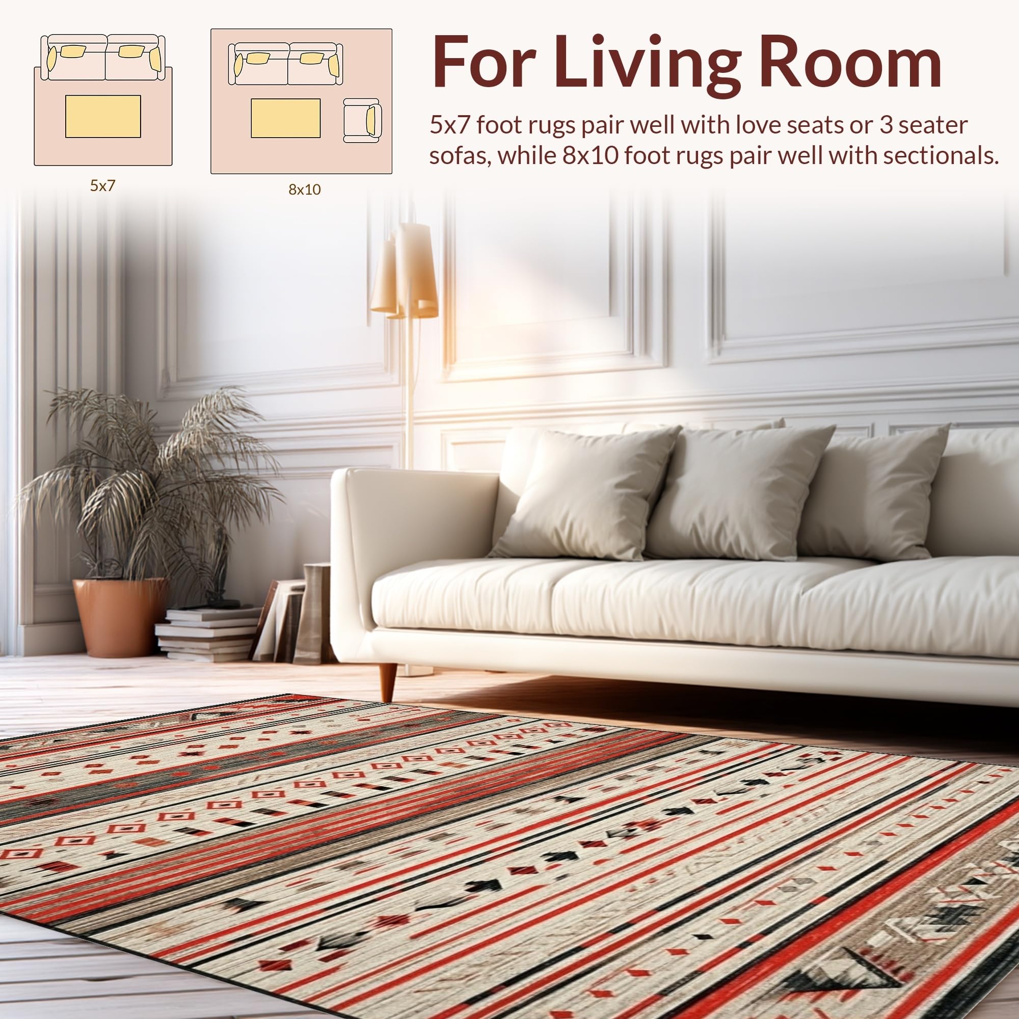 Ultra Soft Area Rug, Non Slip, Stain Resistant, Washable Area Rugs for Living Room, Bedroom, Chic Multicolor Ethnic Motif(Red) Overview: