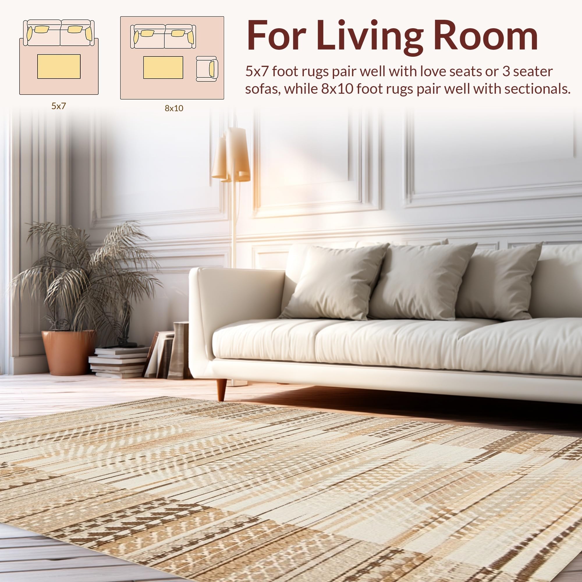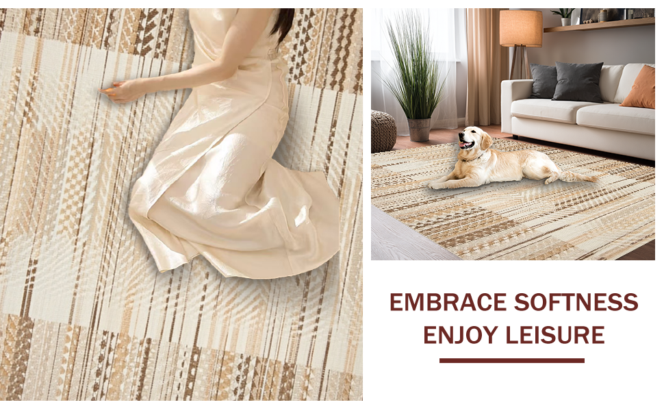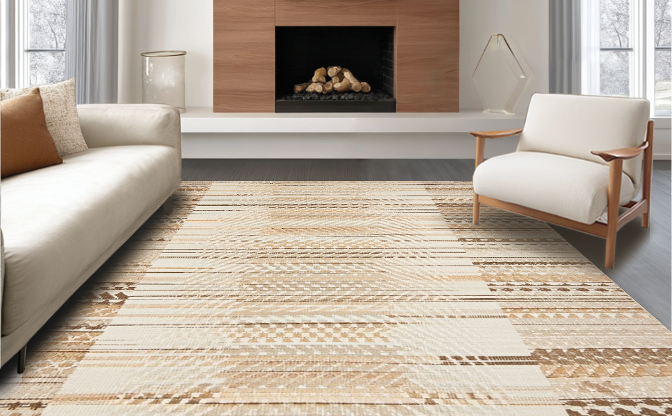 Ultra Soft Area Rug, Non Slip, Stain Resistant, Washable Area Rugs for Living Room, Bedroom, Chic Natural Herringbone Texture(Beige) Overview: