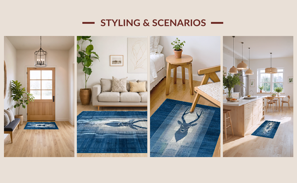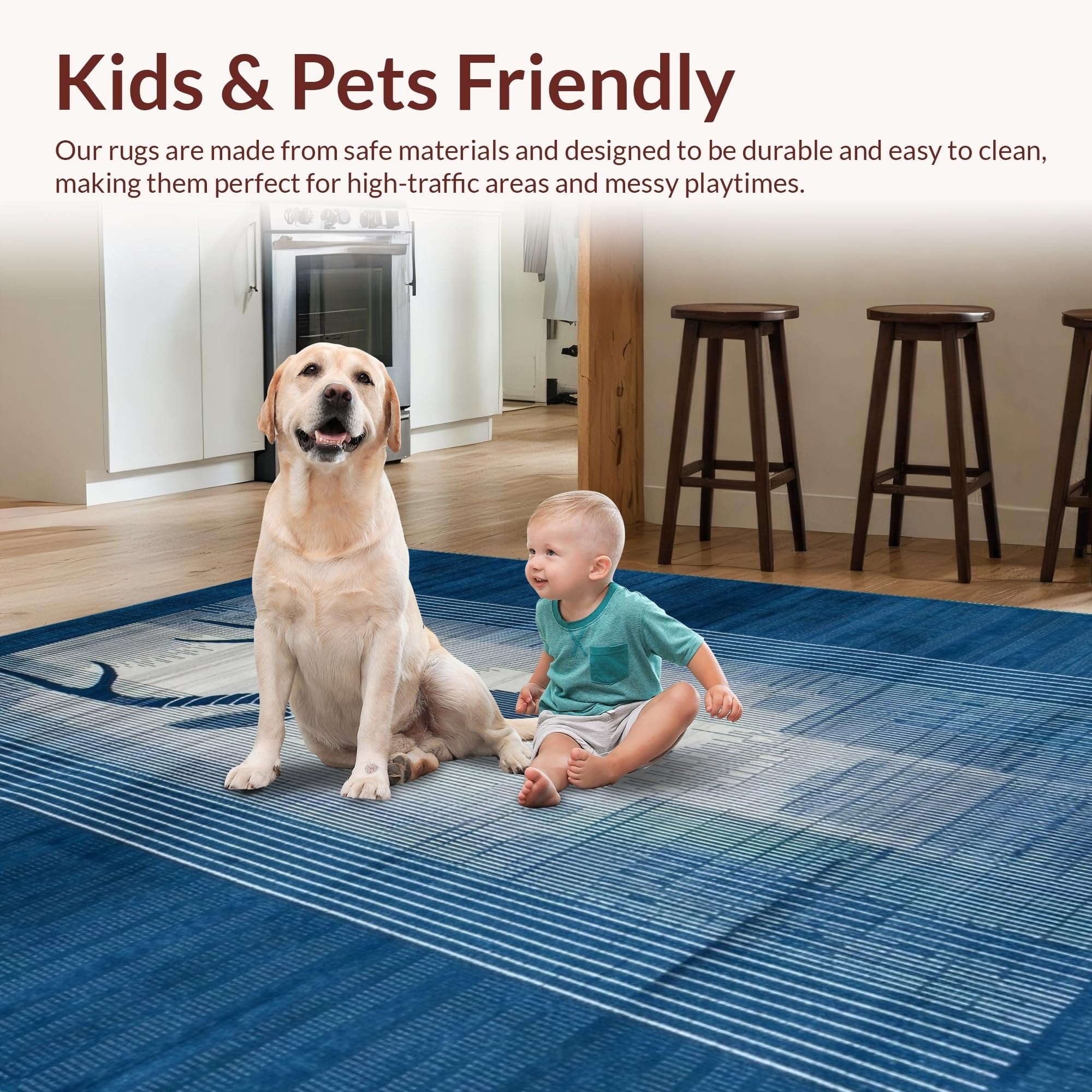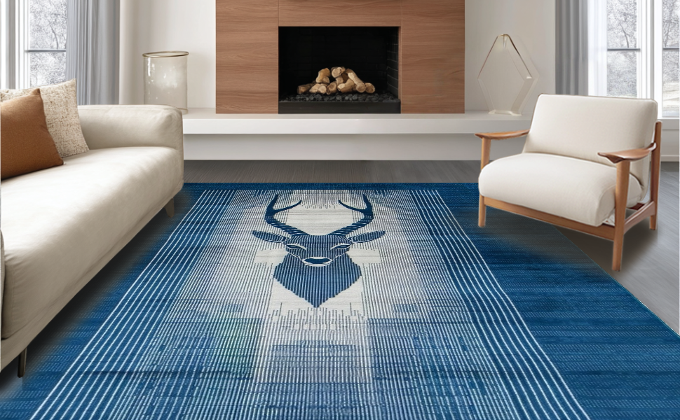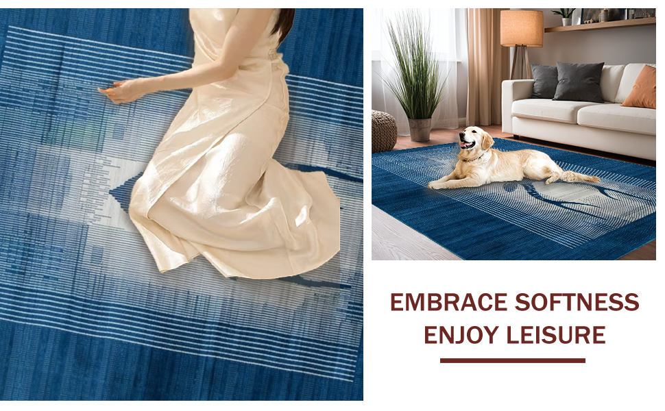 Ultra Soft Area Rug, Non Slip, Stain Resistant, Washable Area Rugs for Living Room, Bedroom, Chic Nature-Inspired Geometric Layout(Blue) Overview: