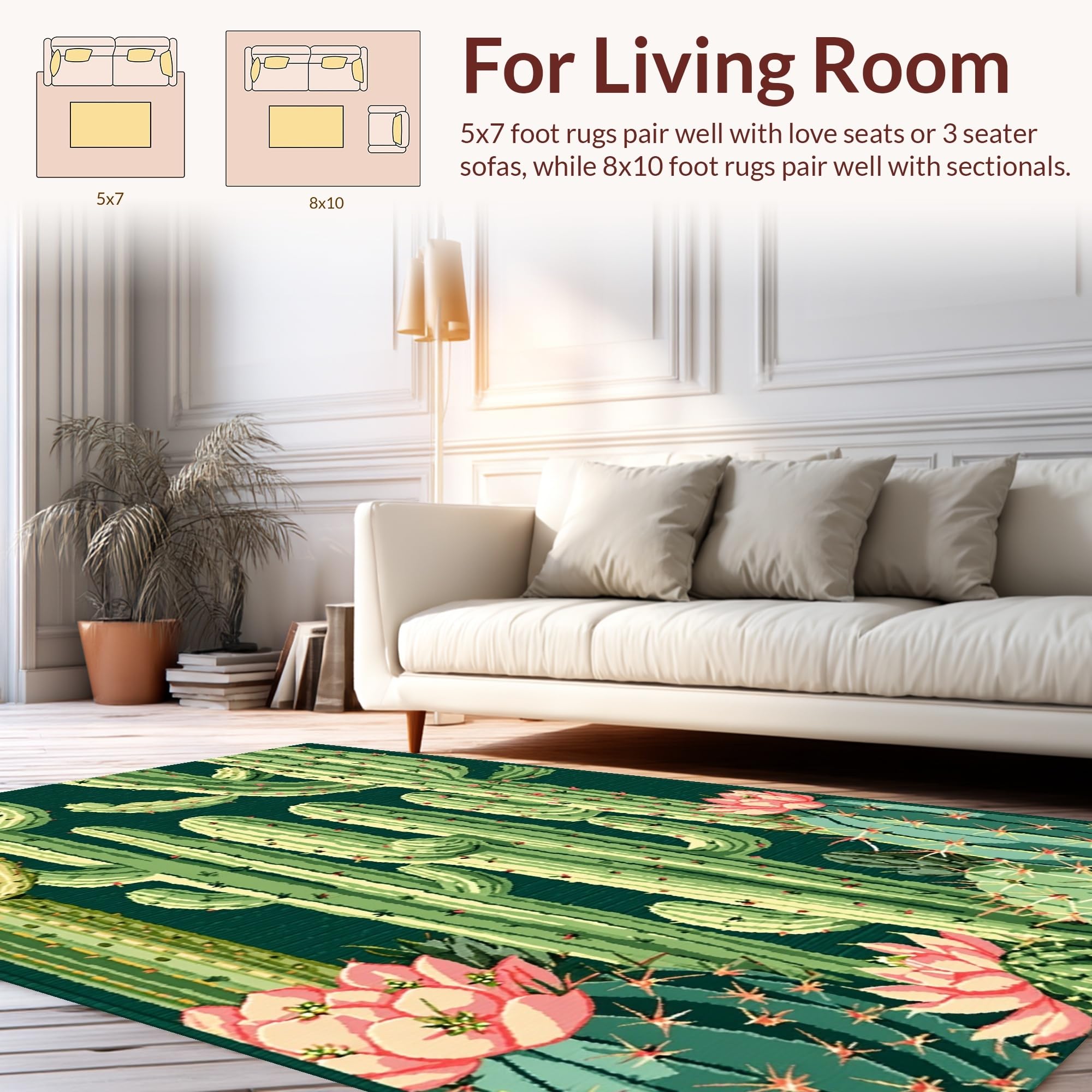 Ultra Soft Area Rug, Non Slip, Stain Resistant, Washable Area Rugs for Living Room, Bedroom, Chic Nature-Inspired Modern Aesthetic(Green) Overview: