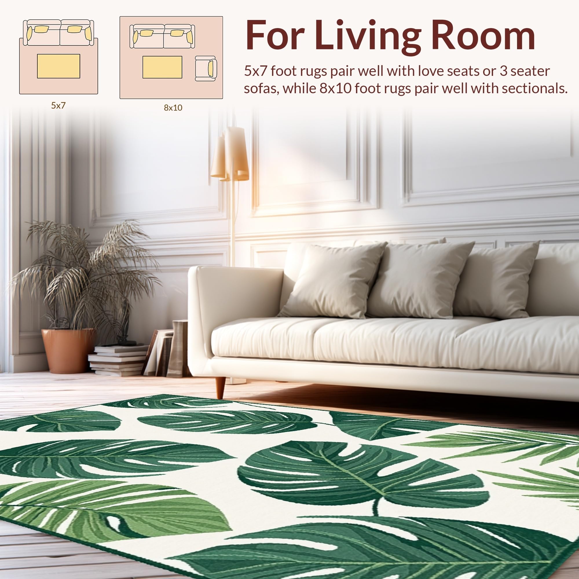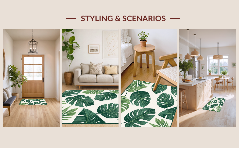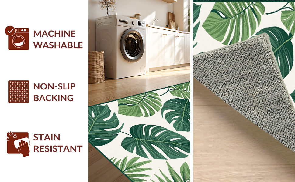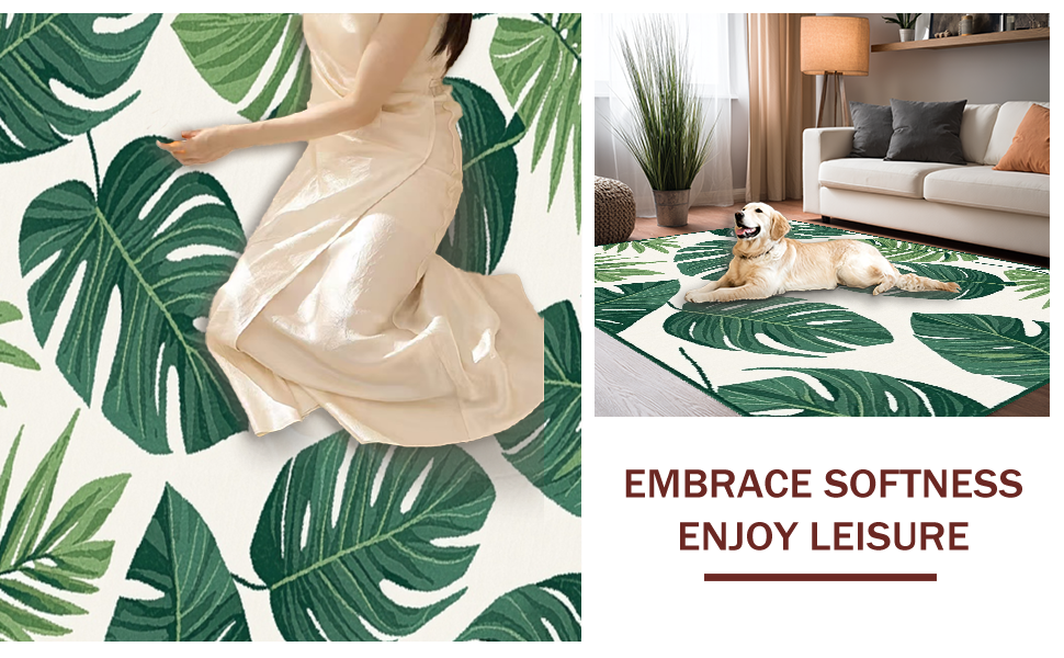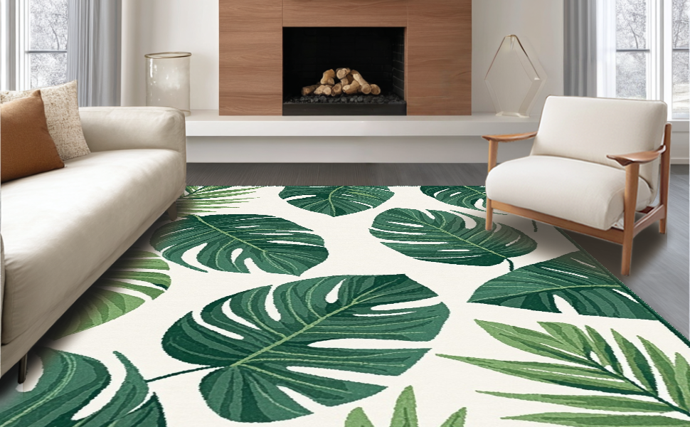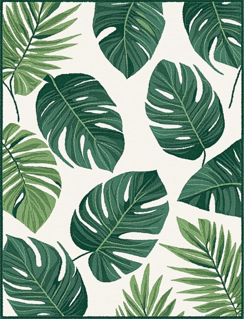 Ultra Soft Area Rug, Non Slip, Stain Resistant, Washable Area Rugs for Living Room, Bedroom, Chic Nature-Inspired Motif(Green) Overview: