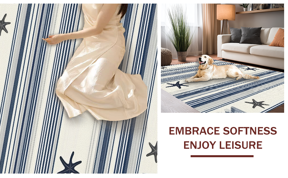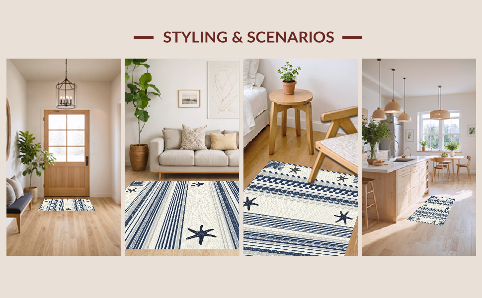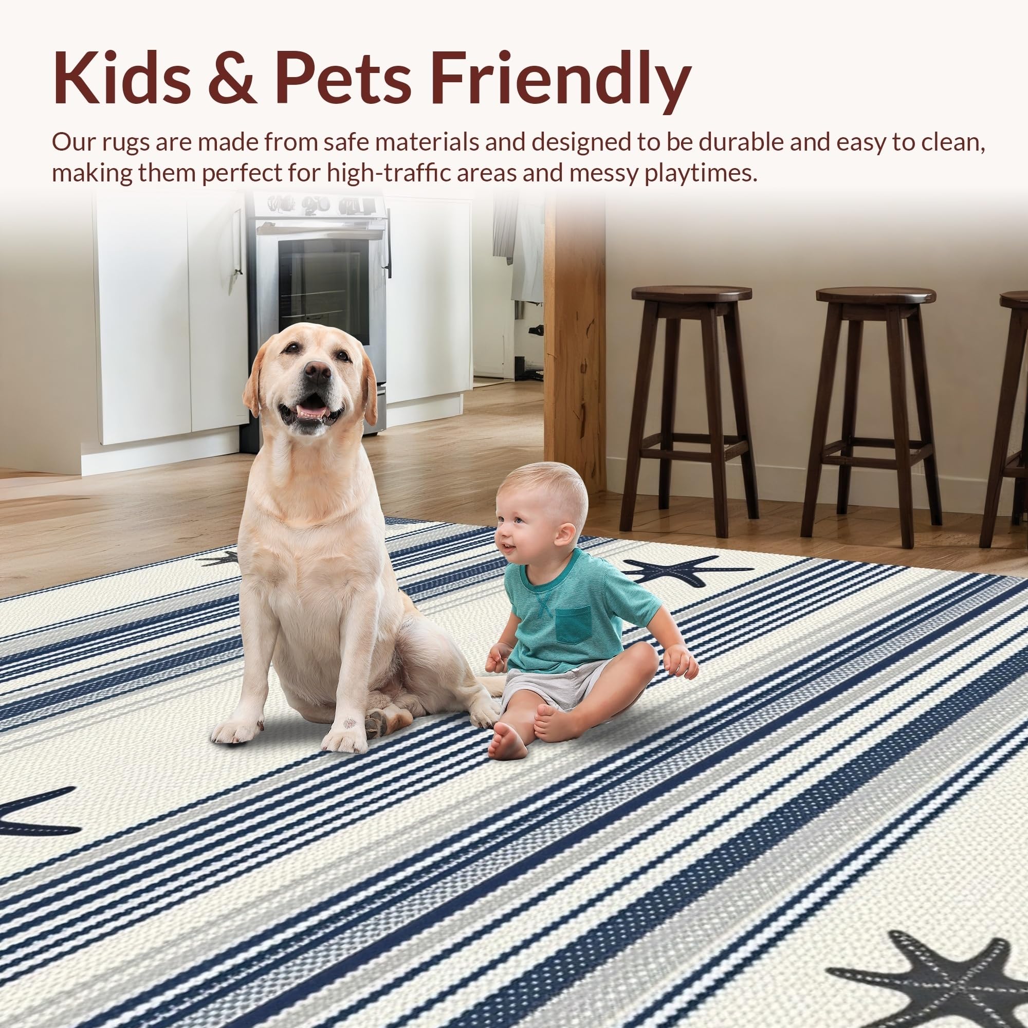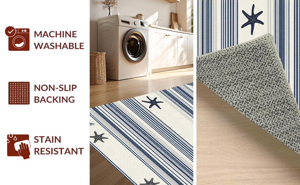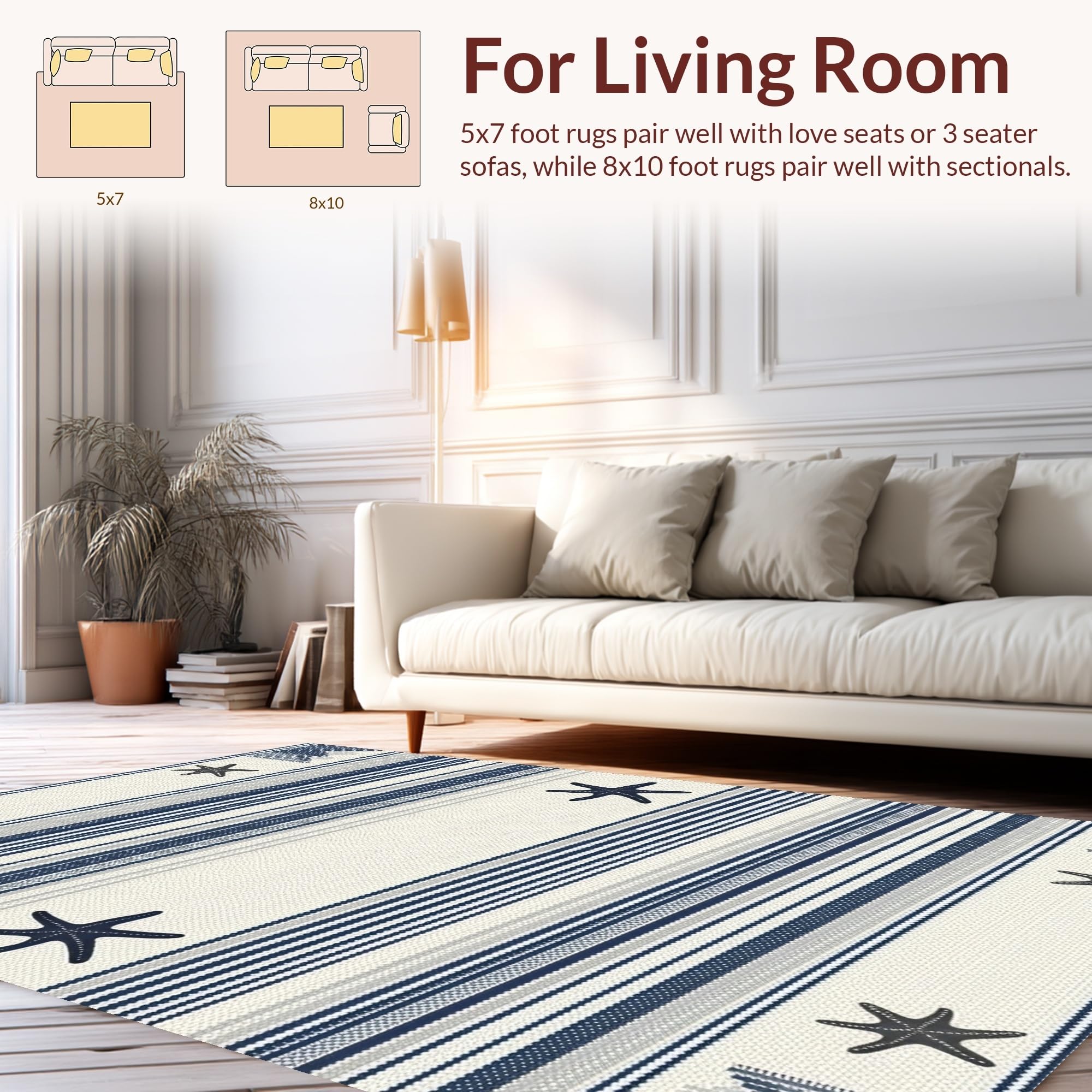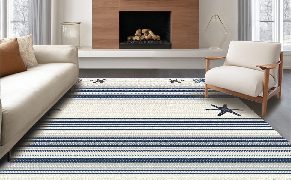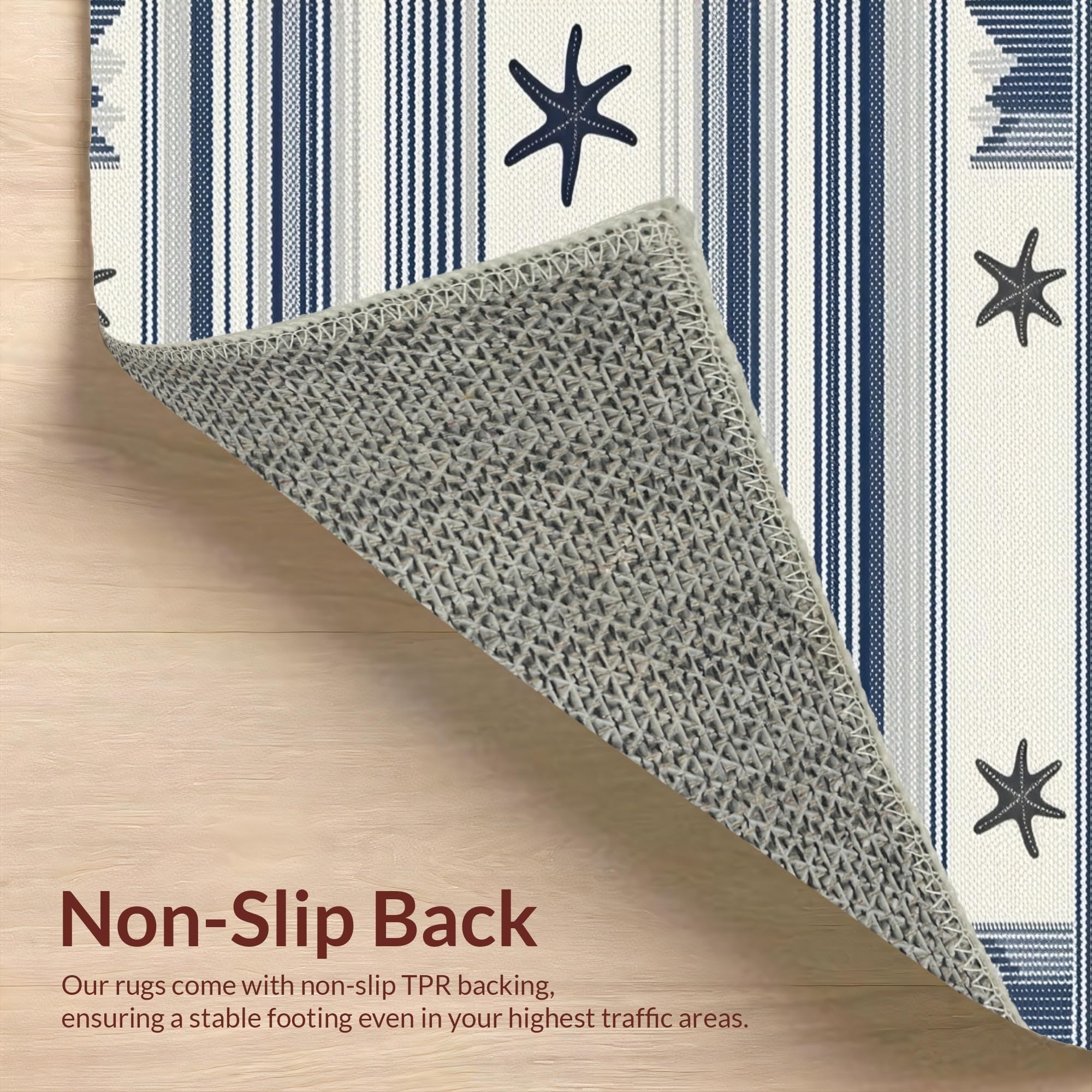 Ultra Soft Area Rug, Non Slip, Stain Resistant, Washable Area Rugs for Living Room, Bedroom, Chic Nautical Patterned Accent(Blue) Overview: