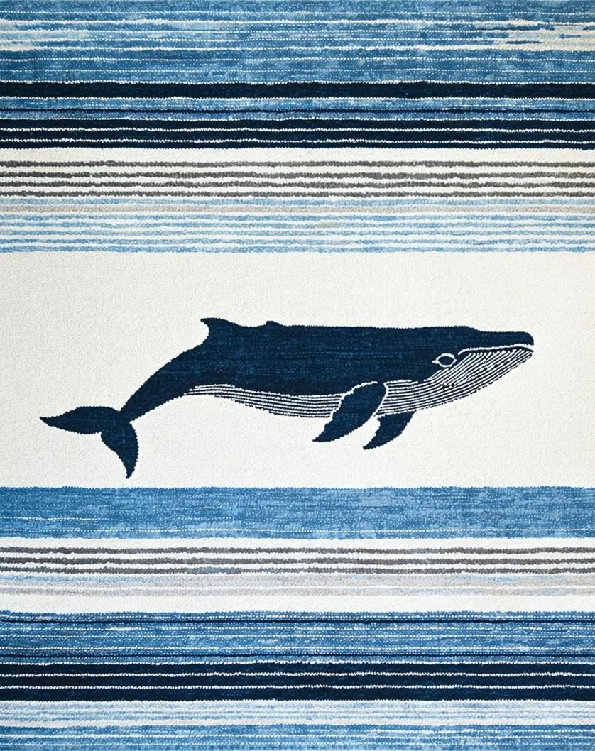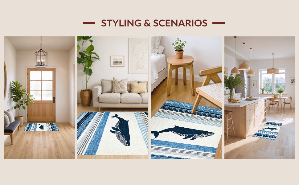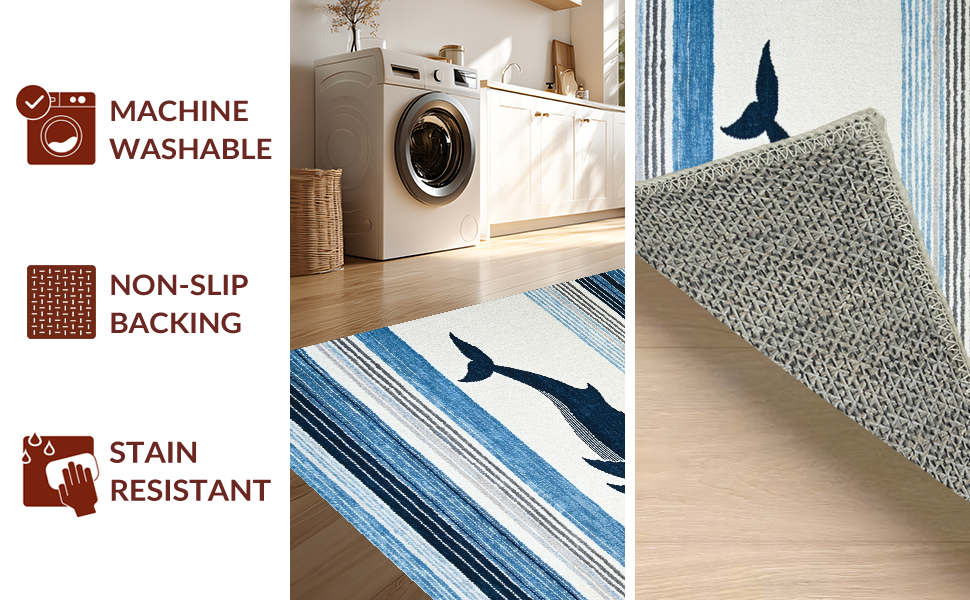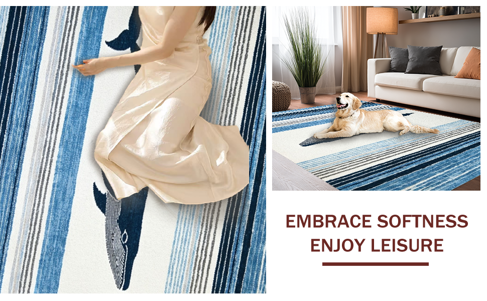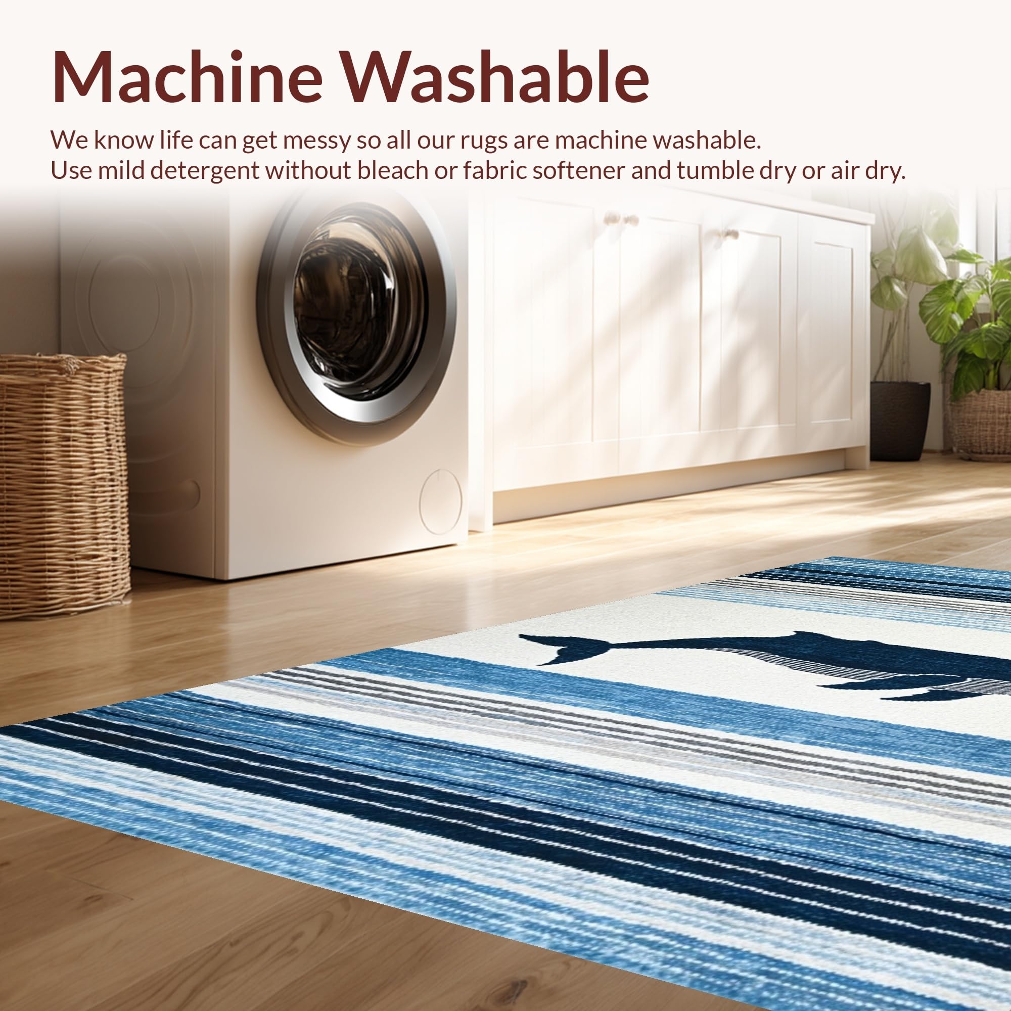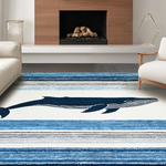 Ultra Soft Area Rug, Non Slip, Stain Resistant, Washable Area Rugs for Living Room, Bedroom, Chic Nautical Whale Aesthetic(Blue) Overview: