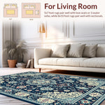 Ultra Soft Area Rug, Non Slip, Stain Resistant, Washable Area Rugs for Living Room, Bedroom, Chic Navy Teal Diamond Design(Blue) Overview: