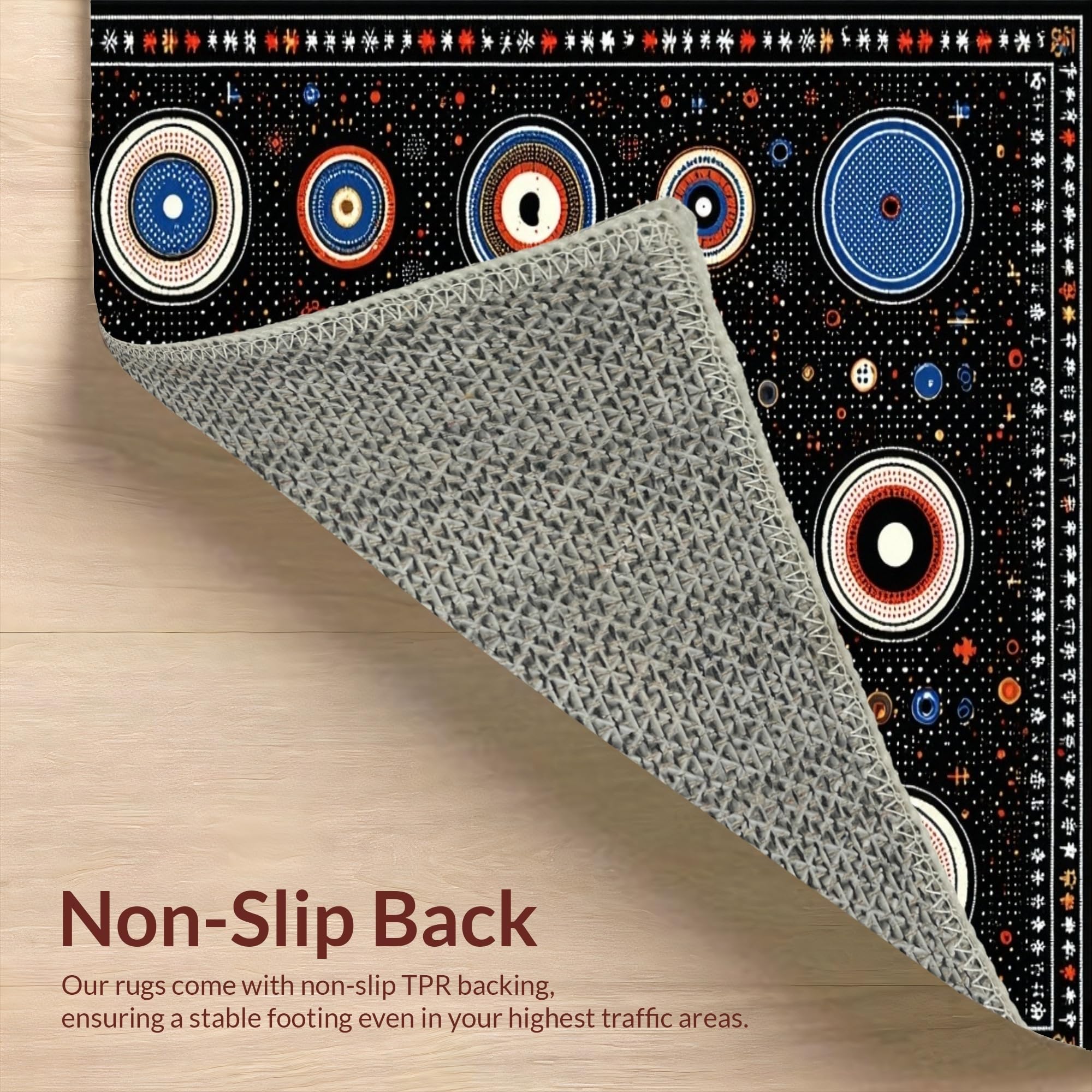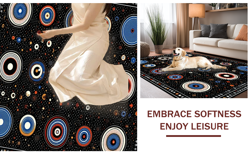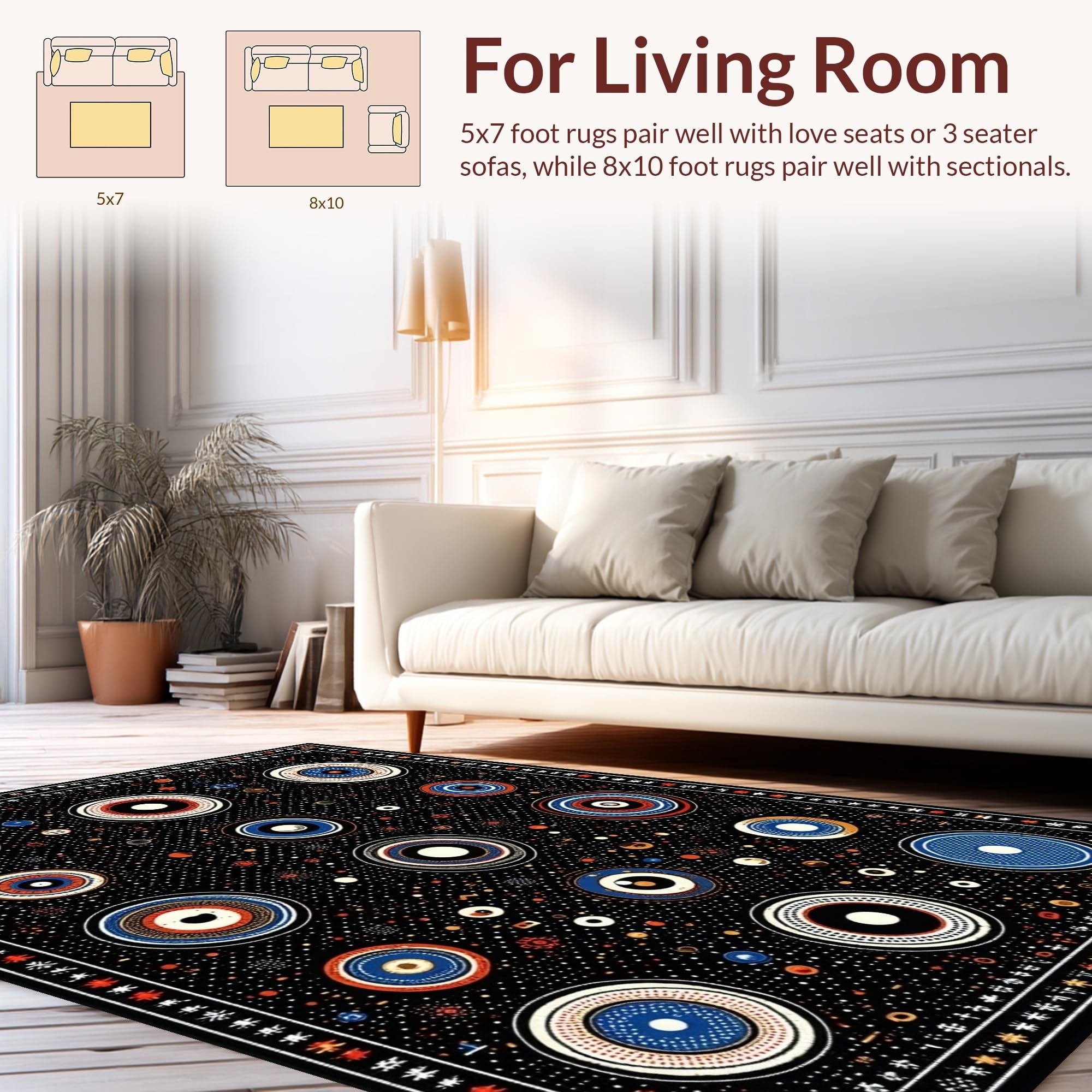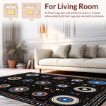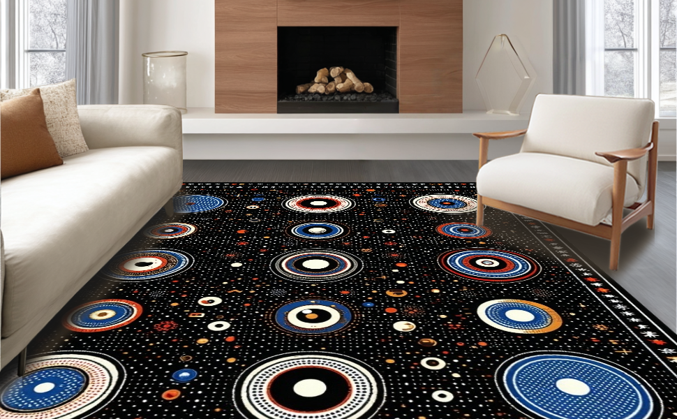 Ultra Soft Area Rug, Non Slip, Stain Resistant, Washable Area Rugs for Living Room, Bedroom, Chic Neutral Circular Typography Design(Black) Overview: