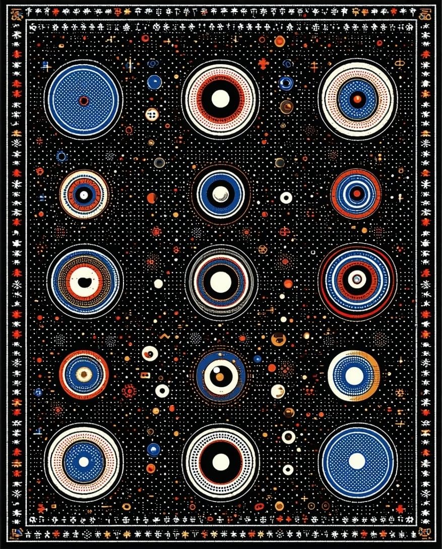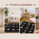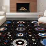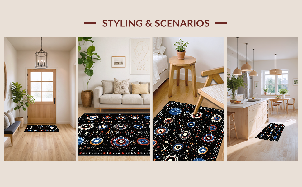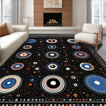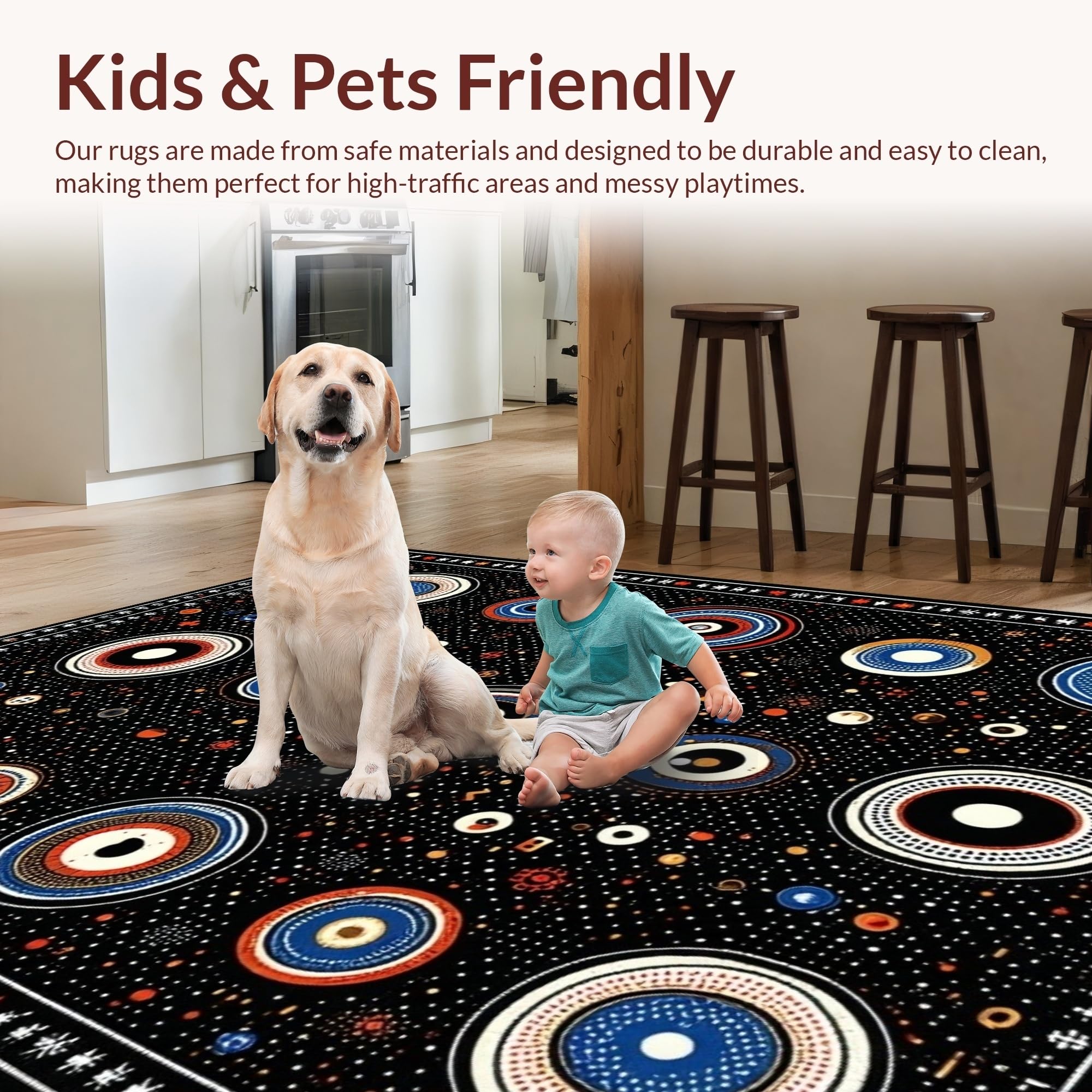 Ultra Soft Area Rug, Non Slip, Stain Resistant, Washable Area Rugs for Living Room, Bedroom, Chic Neutral Circular Typography Design(Black) Overview: