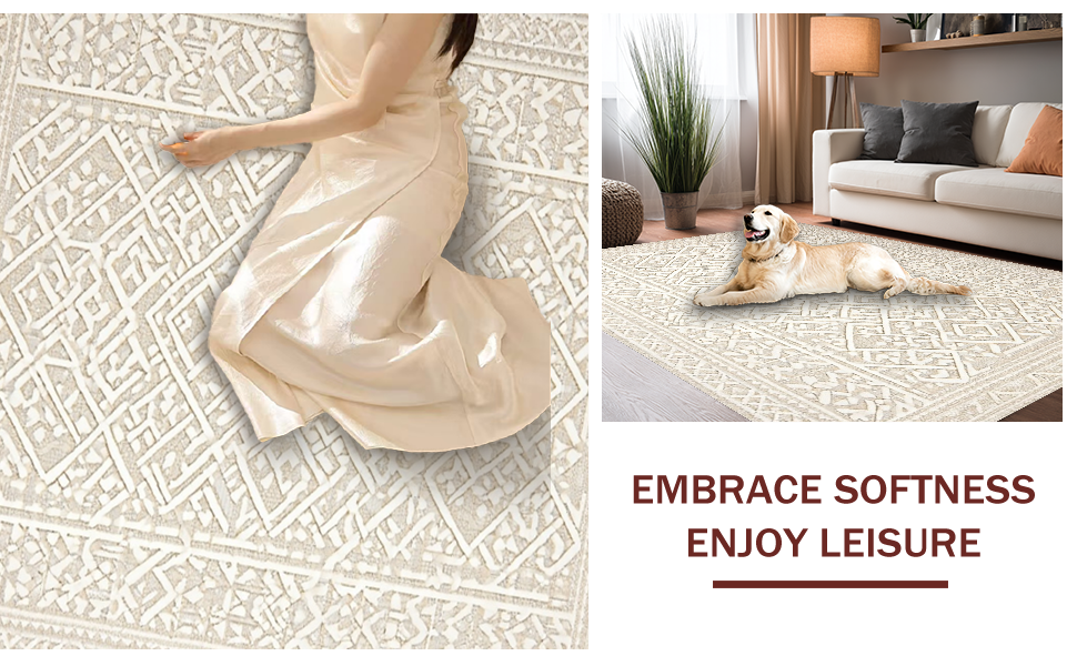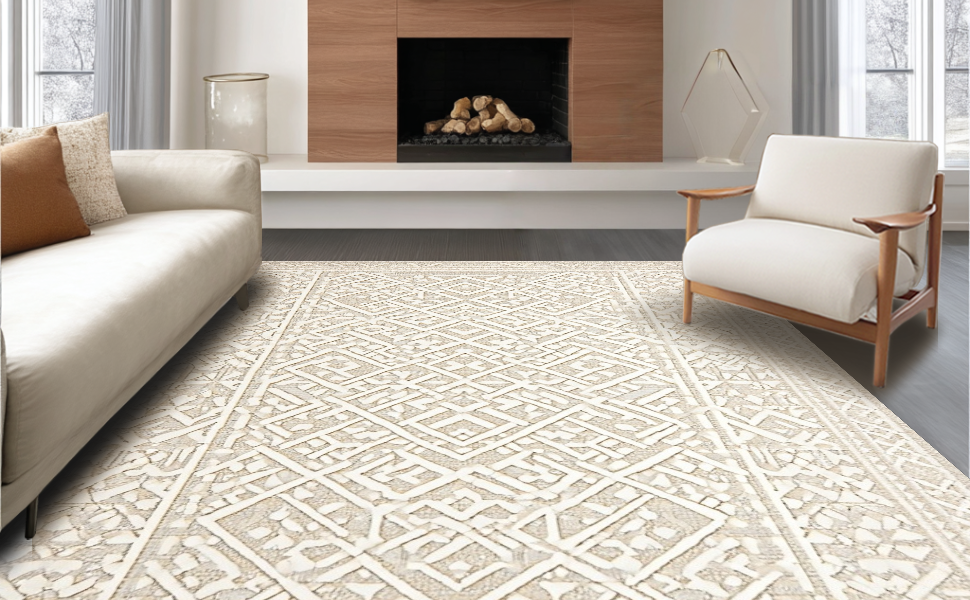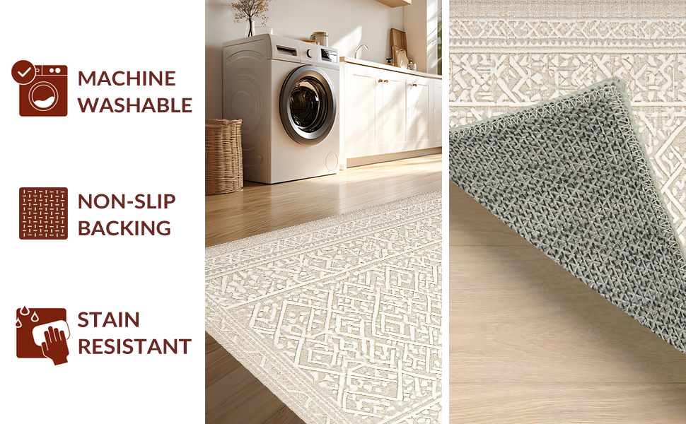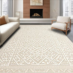 Ultra Soft Area Rug, Non Slip, Stain Resistant, Washable Area Rugs for Living Room, Bedroom, Chic Neutral Diamond Overlay(Beige) Overview: