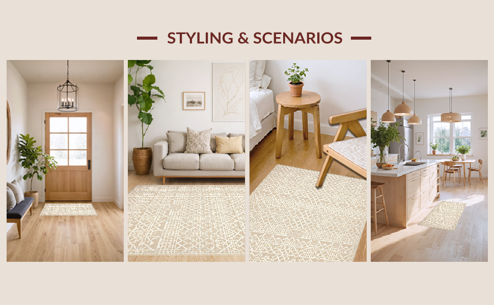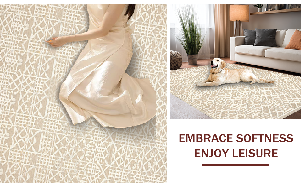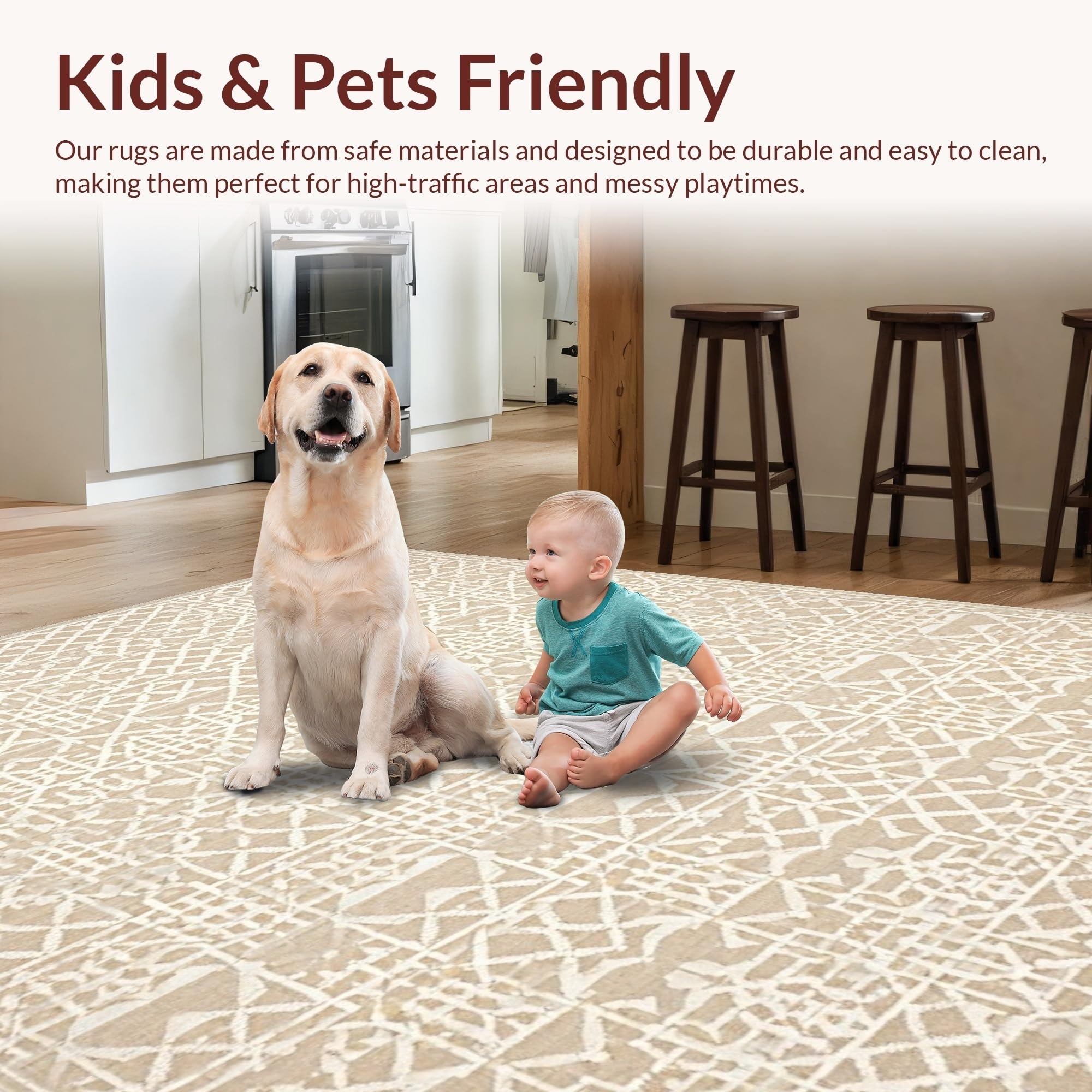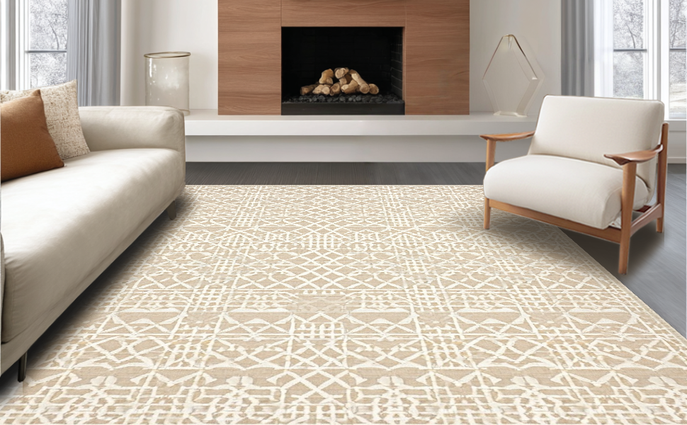 Ultra Soft Area Rug, Non Slip, Stain Resistant, Washable Area Rugs for Living Room, Bedroom, Chic Neutral Geometric Motif(Beige) Overview: