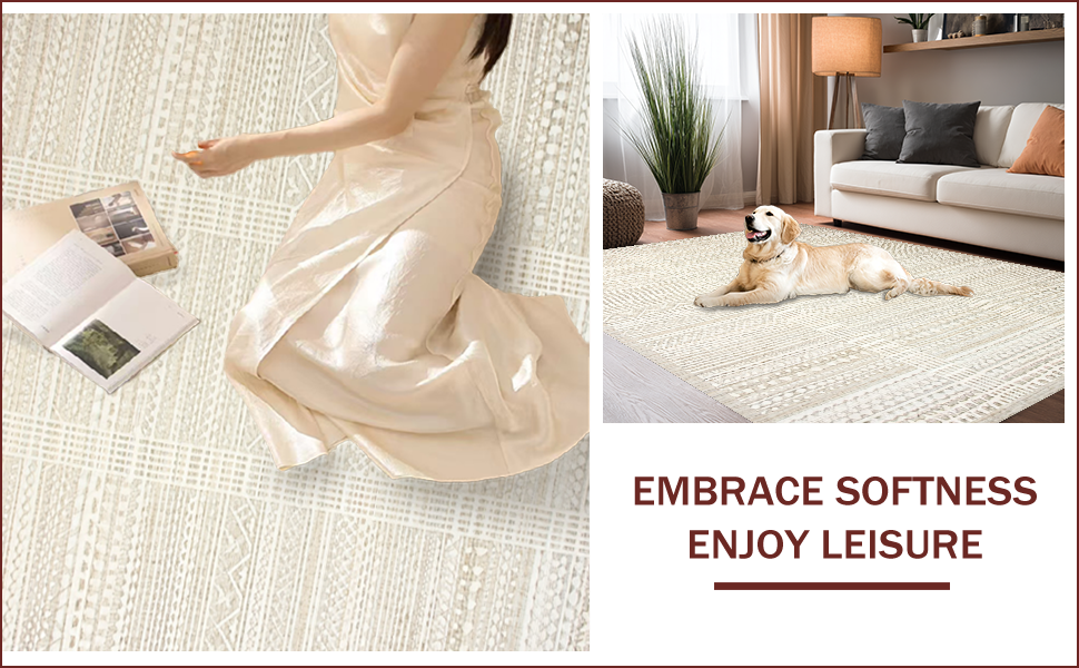 Ultra Soft Area Rug, Non Slip, Stain Resistant, Washable Area Rugs for Living Room, Bedroom, Chic Neutral Textured Weave(Beige) Overview: