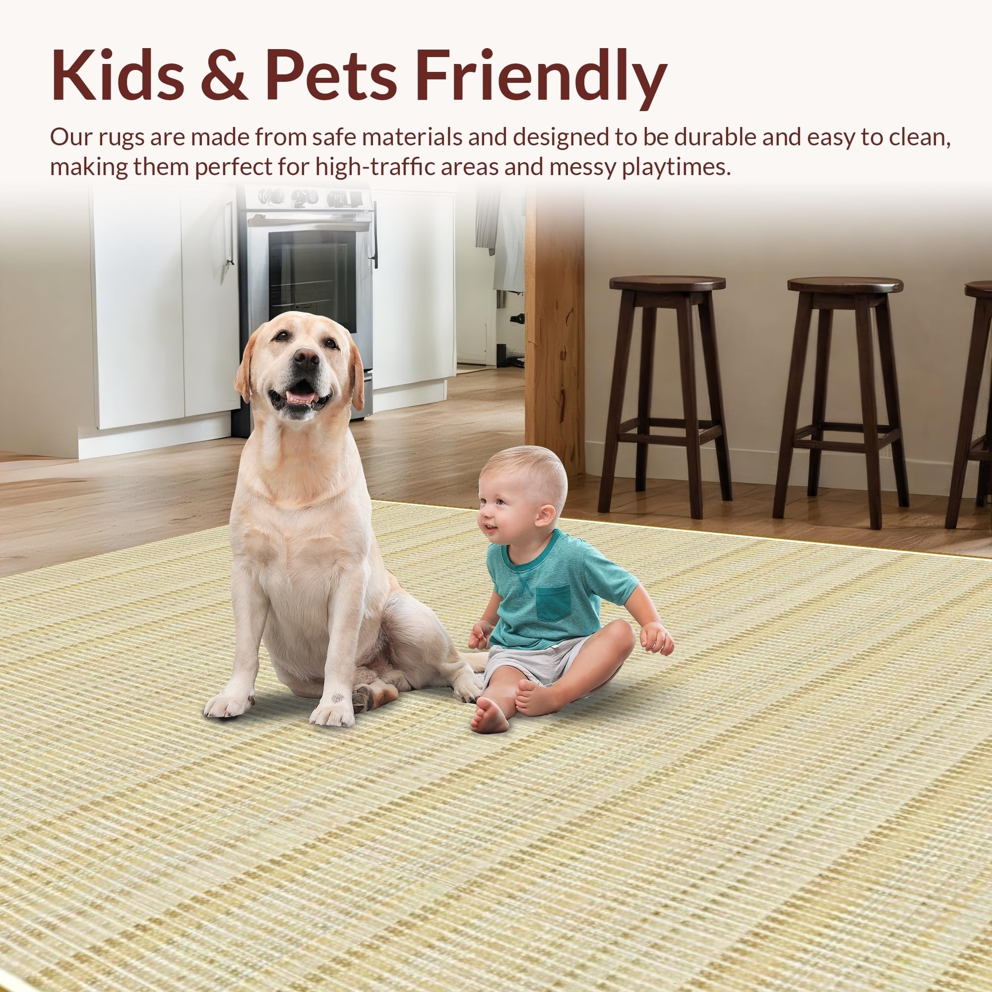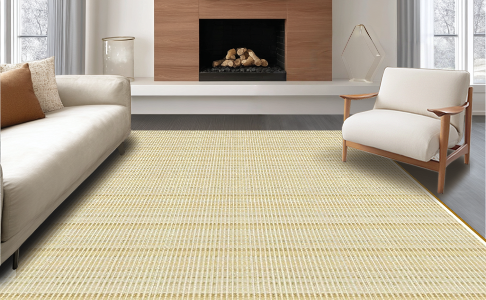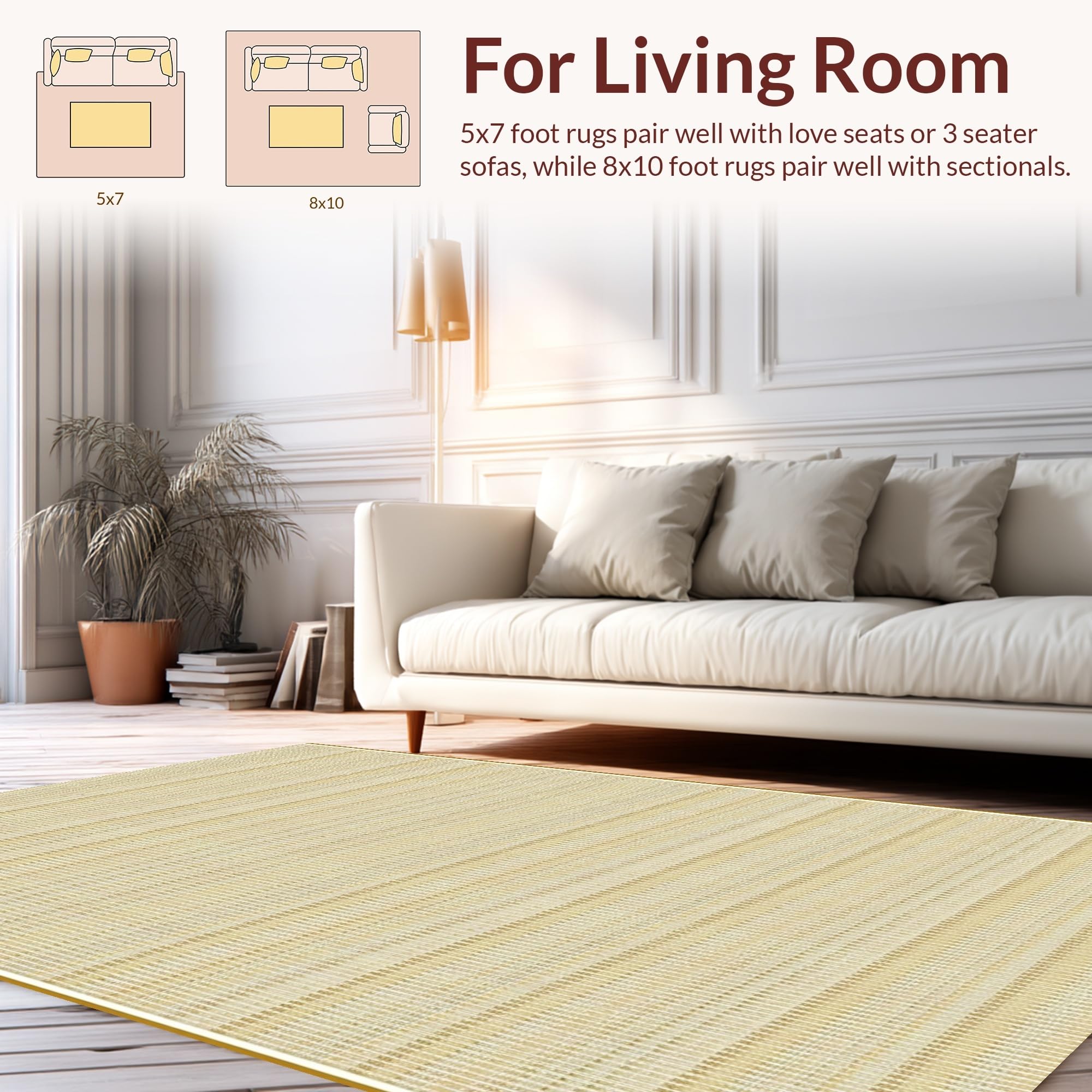 Ultra Soft Area Rug, Non Slip, Stain Resistant, Washable Area Rugs for Living Room, Bedroom, Chic Neutral Toned Lattice Design(Beige) Overview: