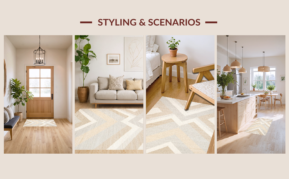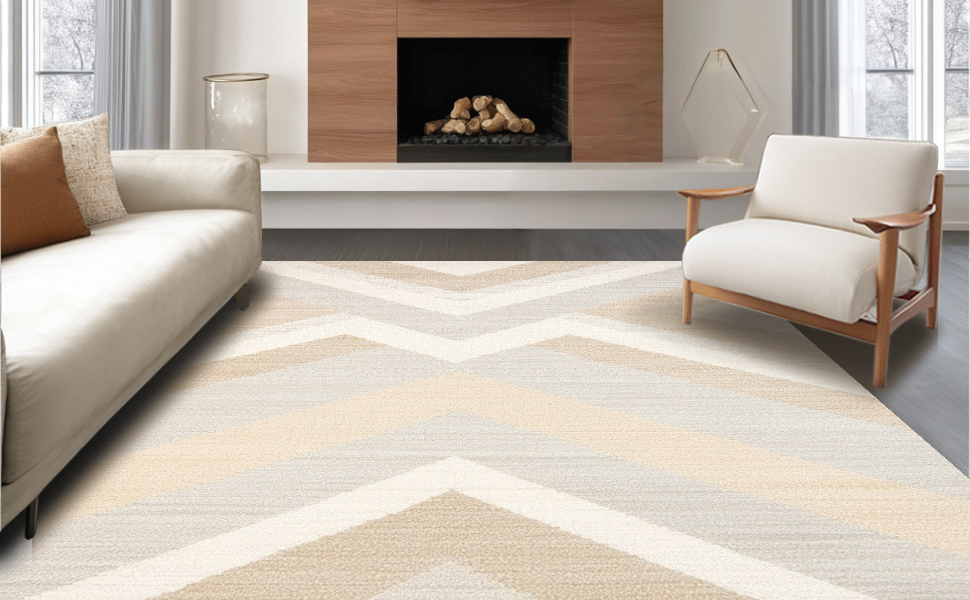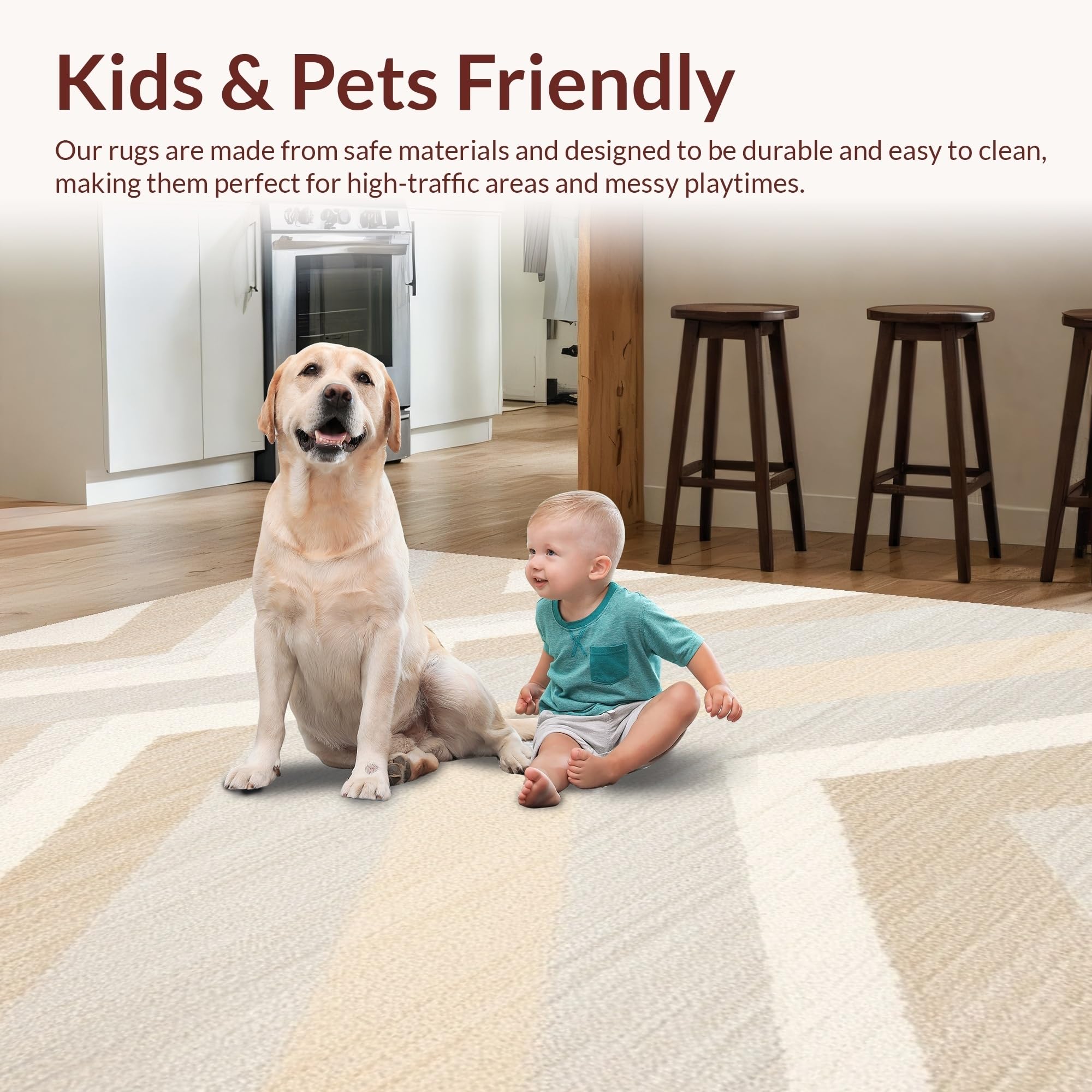Ultra Soft Area Rug, Non Slip, Stain Resistant, Washable Area Rugs for Living Room, Bedroom, Chic Neutral Toned Organic Shapes(Beige) Overview:
