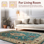 Ultra Soft Area Rug, Non Slip, Stain Resistant, Washable Area Rugs for Living Room, Bedroom, Chic Neutral Toned Print(Blue) Overview: