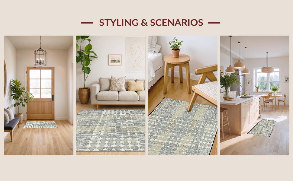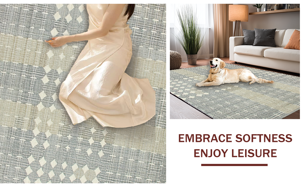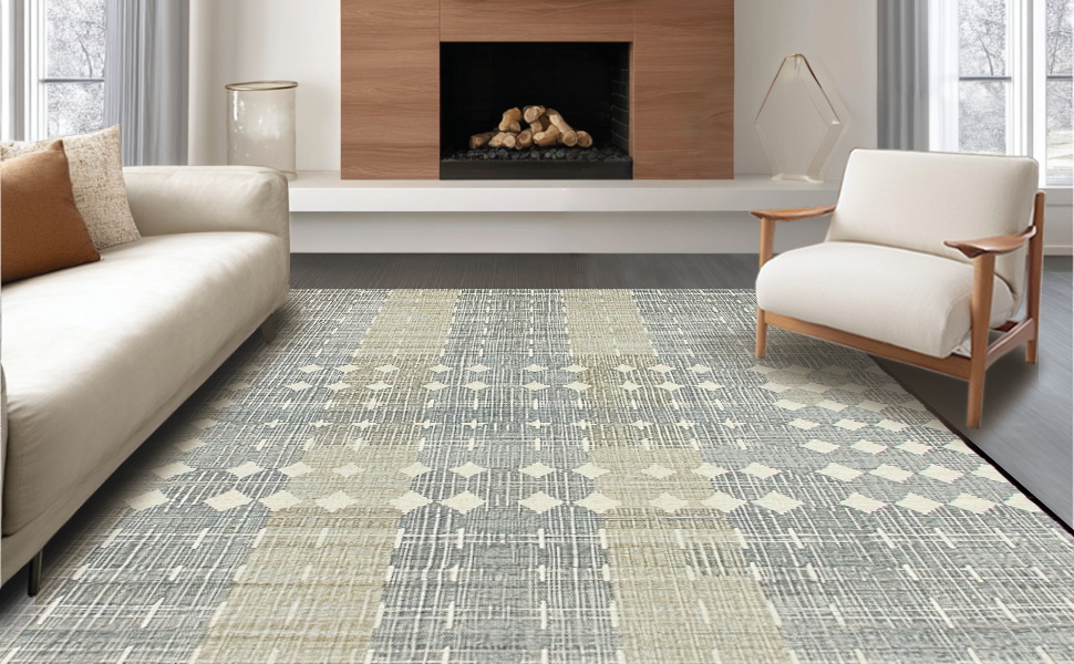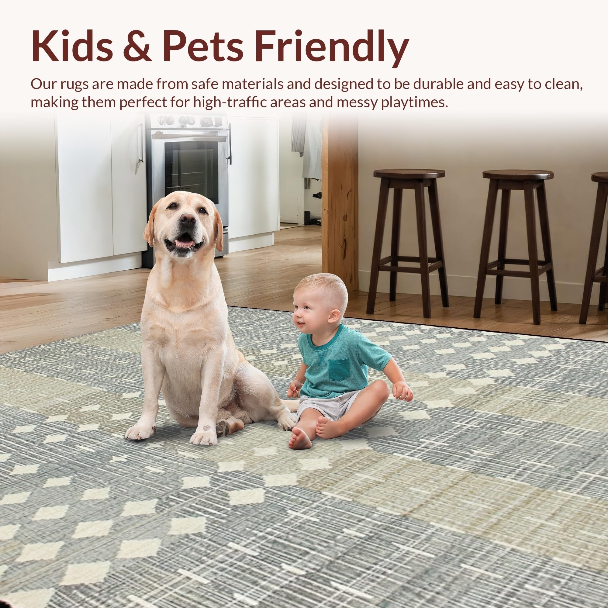 Ultra Soft Area Rug, Non Slip, Stain Resistant, Washable Area Rugs for Living Room, Bedroom, Chic Neutral Toned Trellis Design(Beige) Overview: