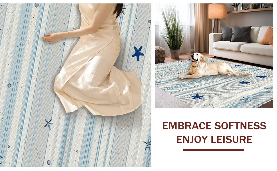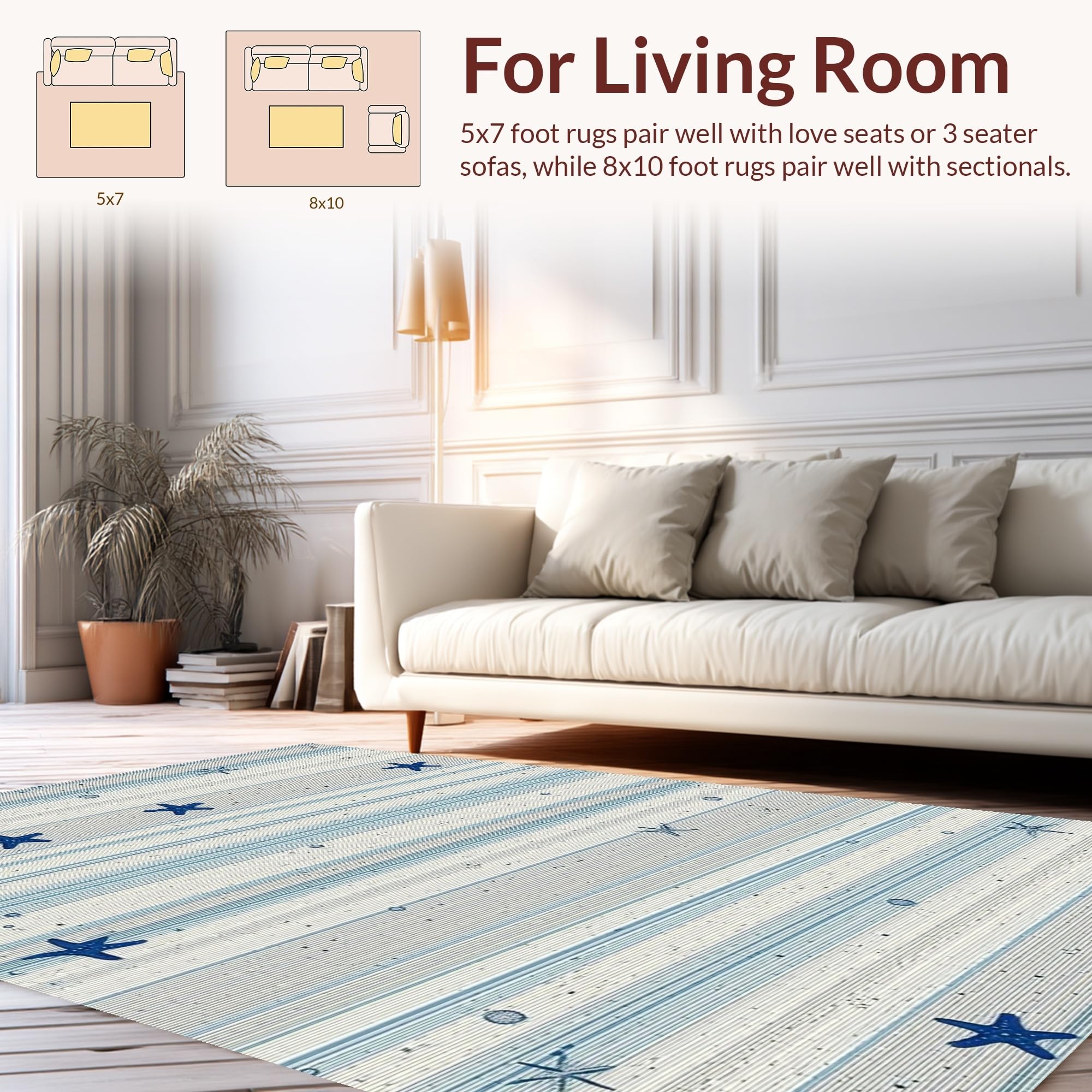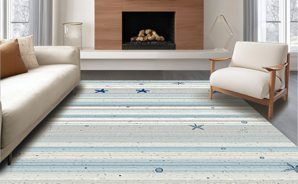 Ultra Soft Area Rug, Non Slip, Stain Resistant, Washable Area Rugs for Living Room, Bedroom, Chic Oceanic Motif Accent(Blue) Overview: