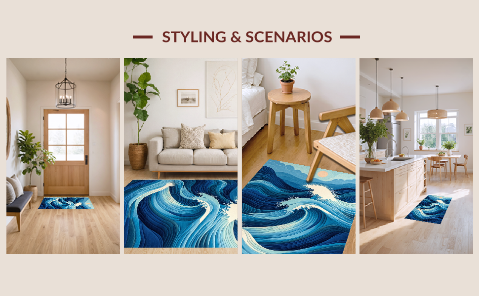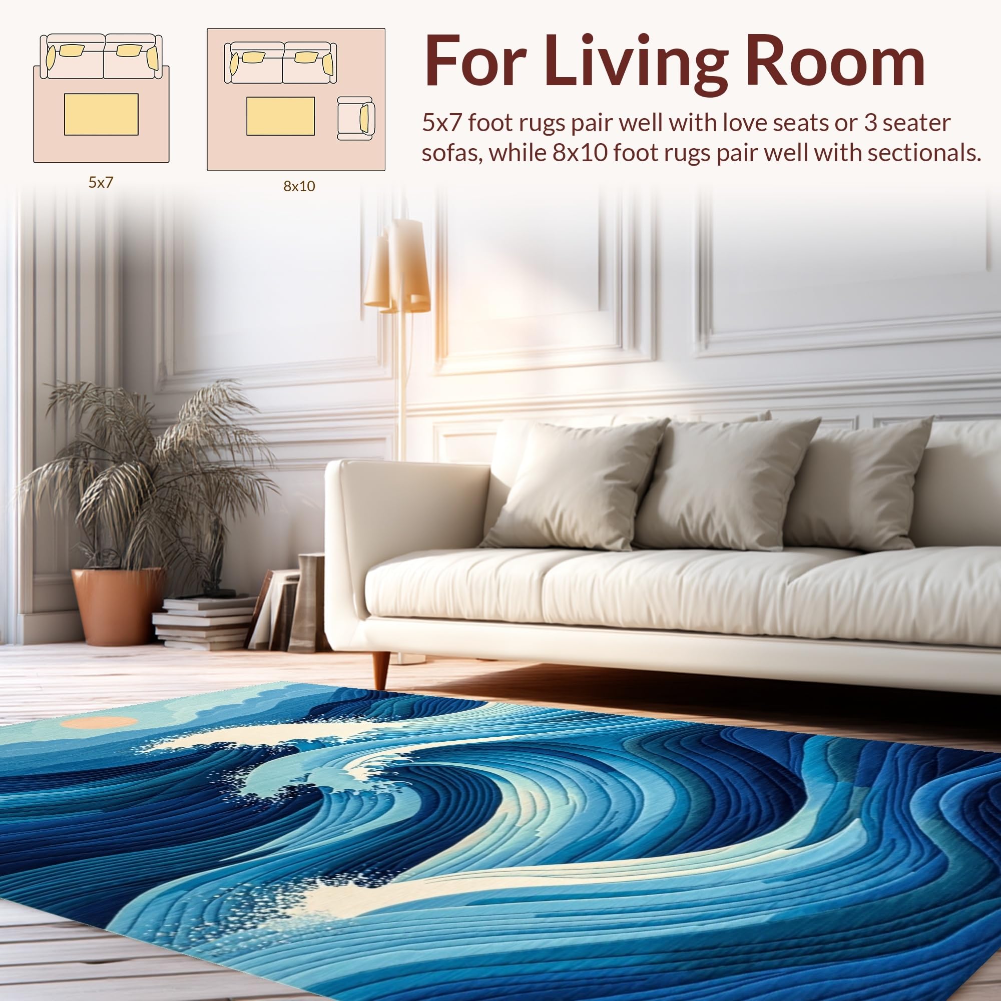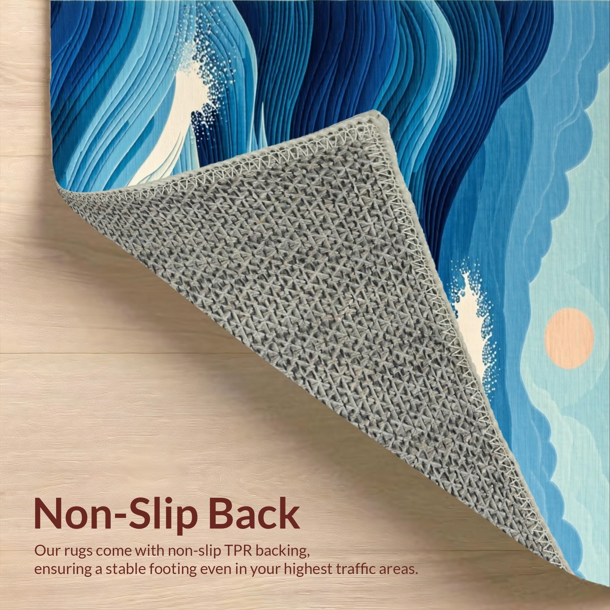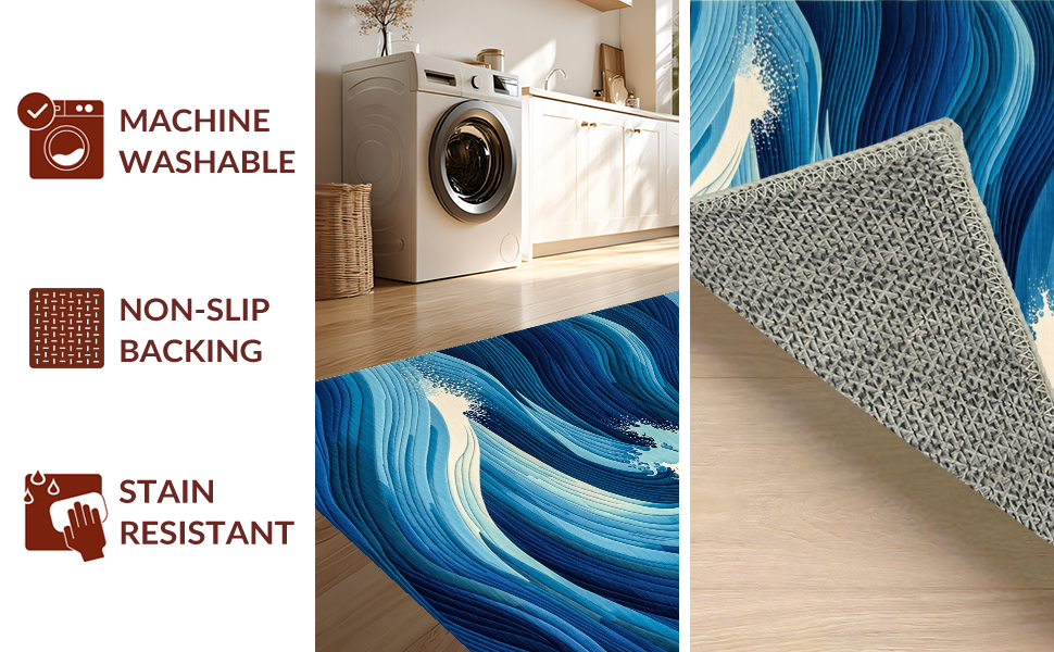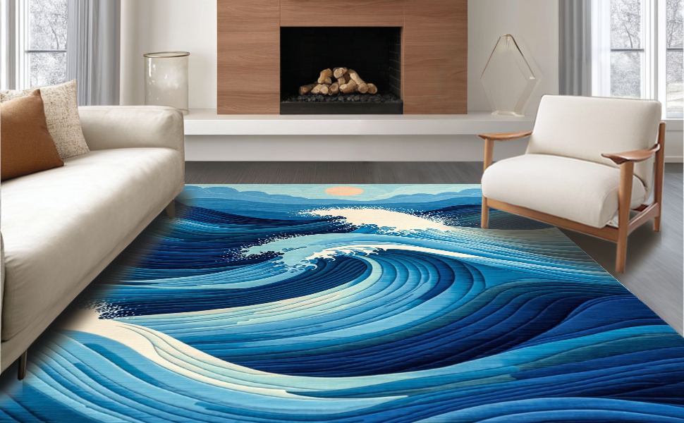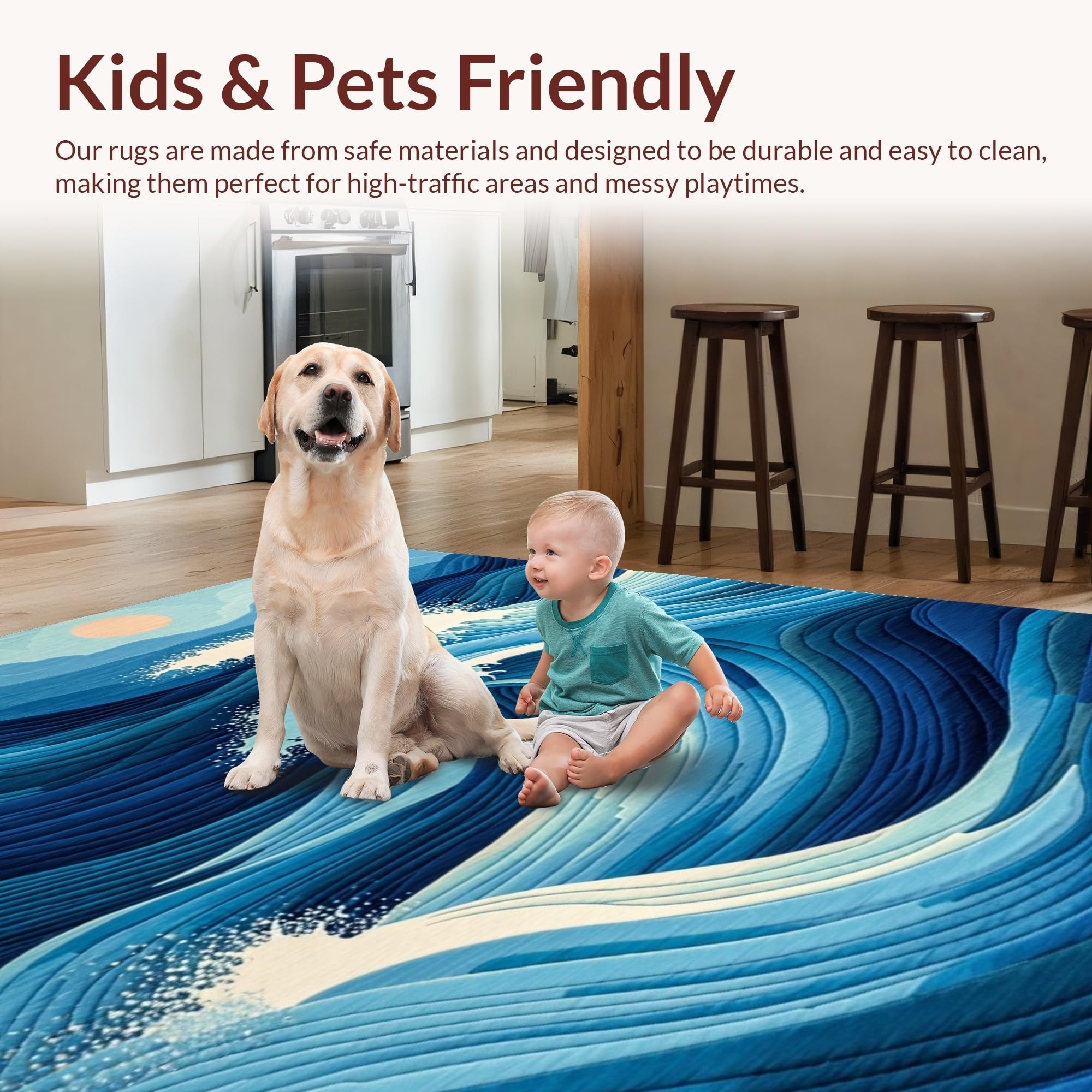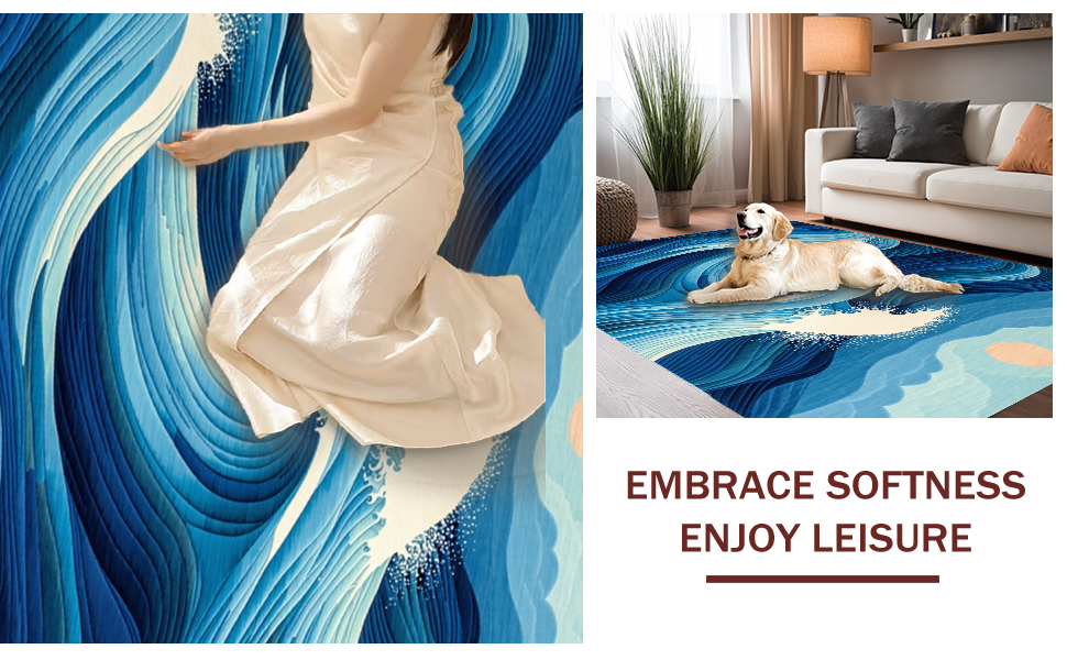 Ultra Soft Area Rug, Non Slip, Stain Resistant, Washable Area Rugs for Living Room, Bedroom, Chic Oceanic Swirl Design(Blue) Overview: