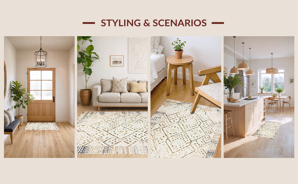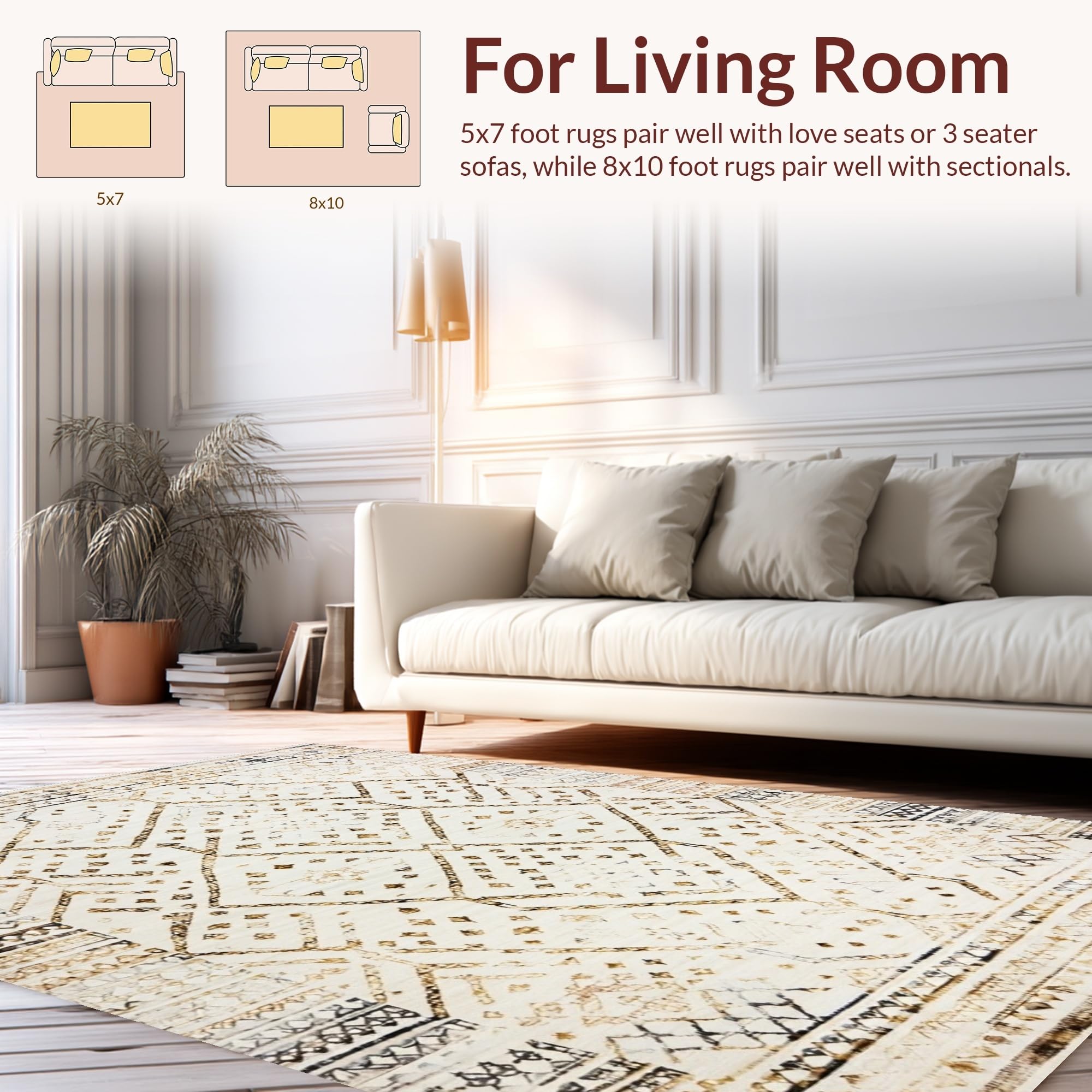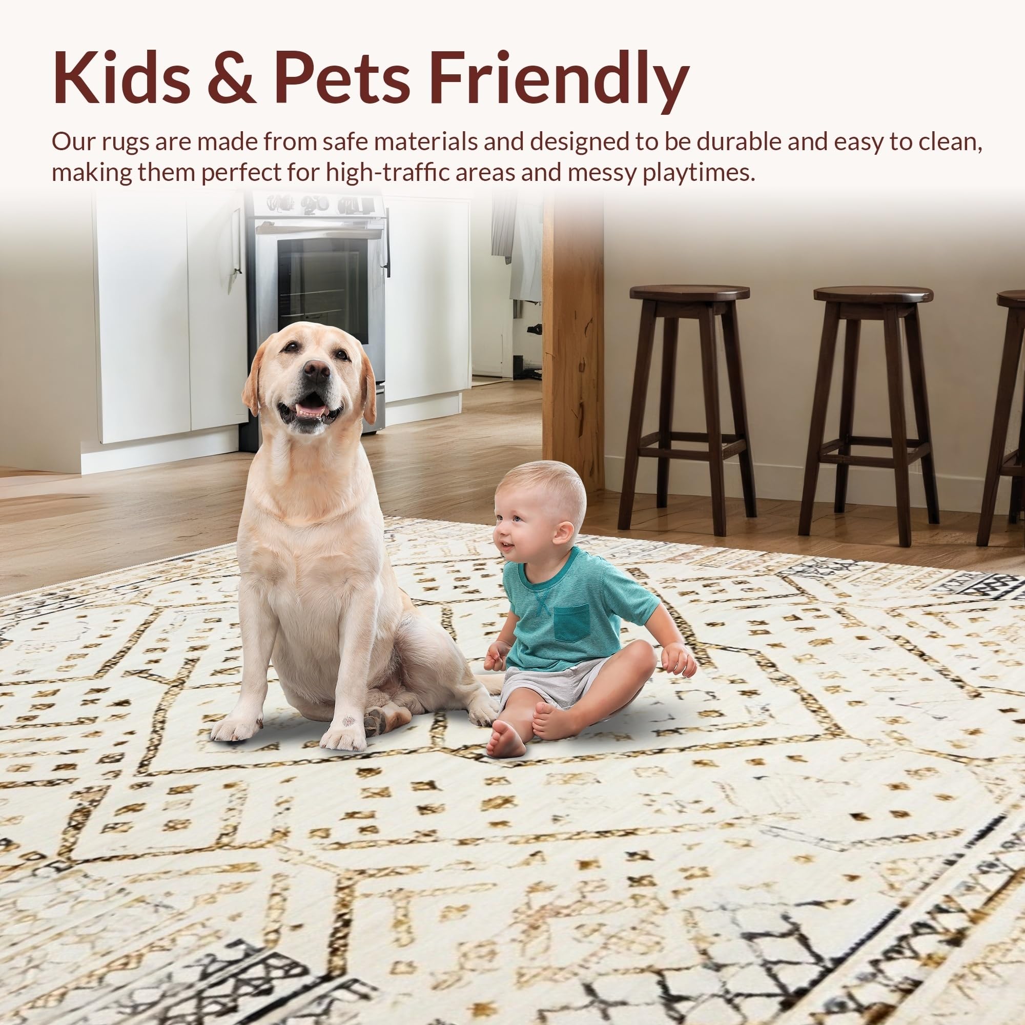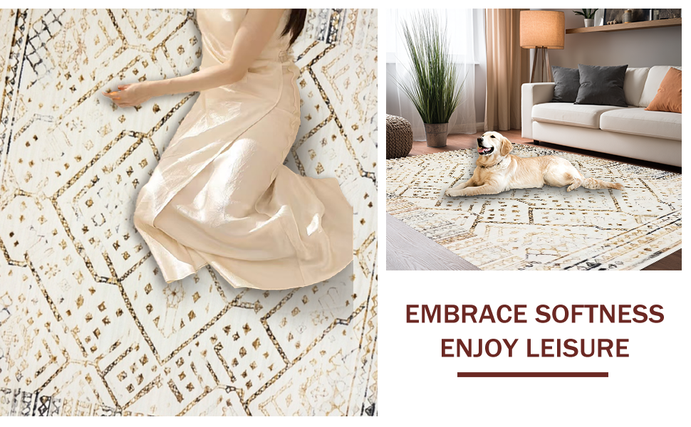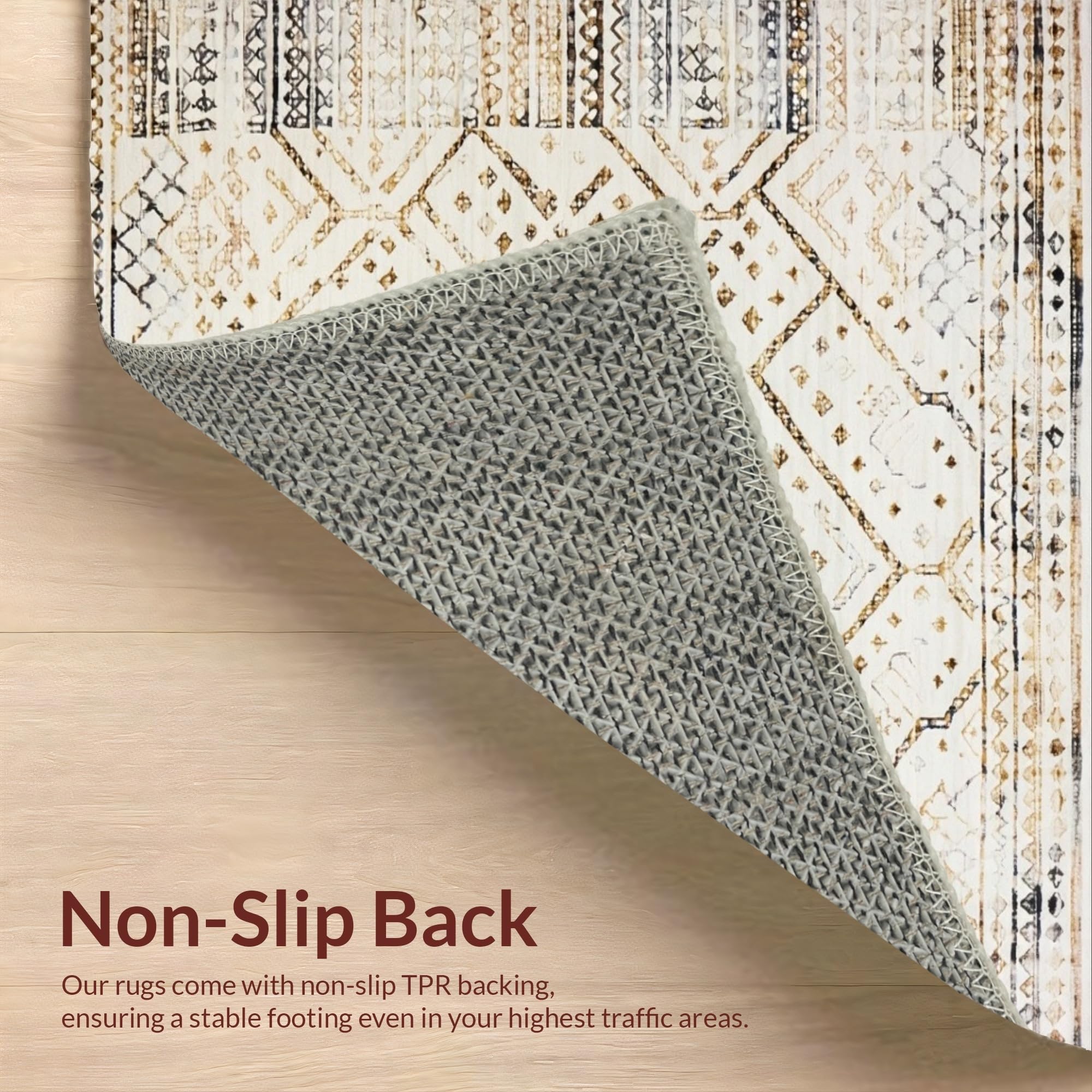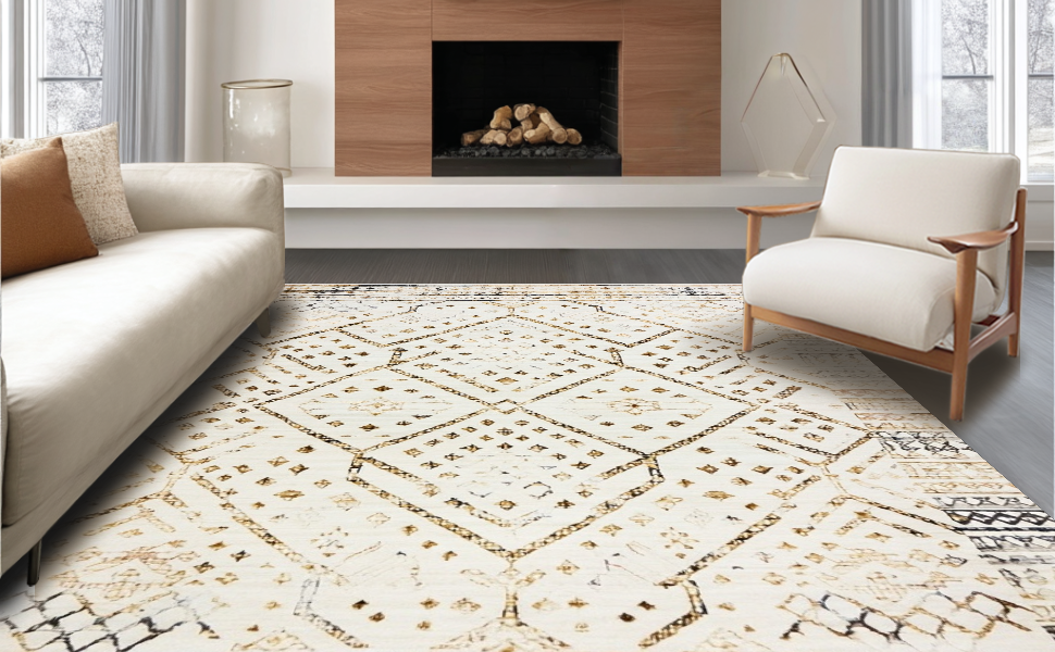 Ultra Soft Area Rug, Non Slip, Stain Resistant, Washable Area Rugs for Living Room, Bedroom, Chic Ogee Patterned Accent(Beige) Overview: