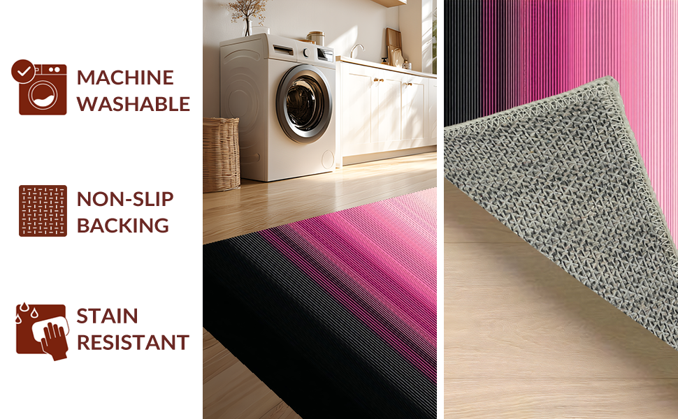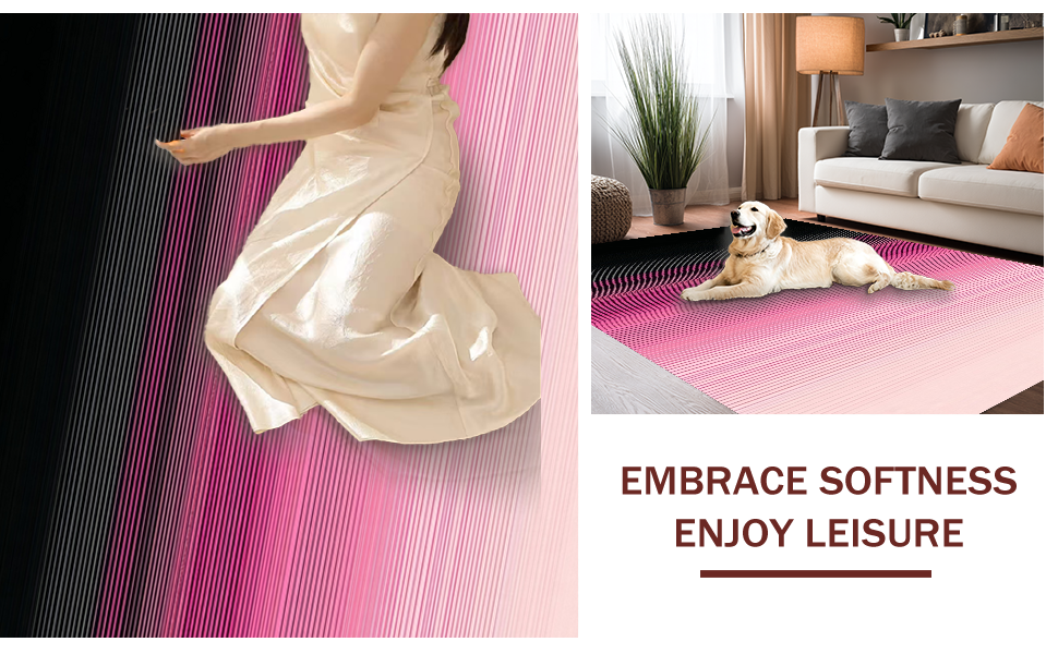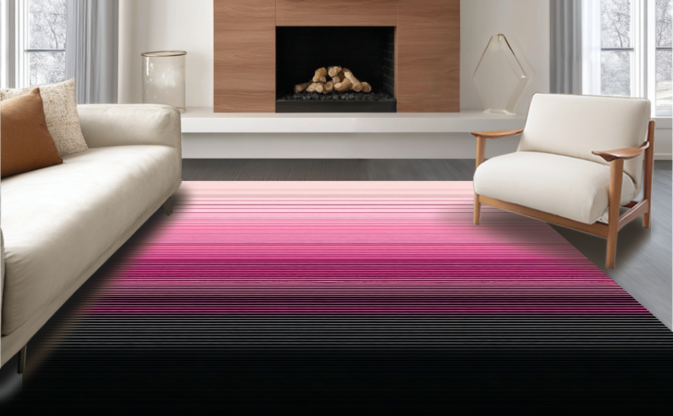 Ultra Soft Area Rug, Non Slip, Stain Resistant, Washable Area Rugs for Living Room, Bedroom, Chic Ombre Geometric Aesthetic(Pink) Overview: