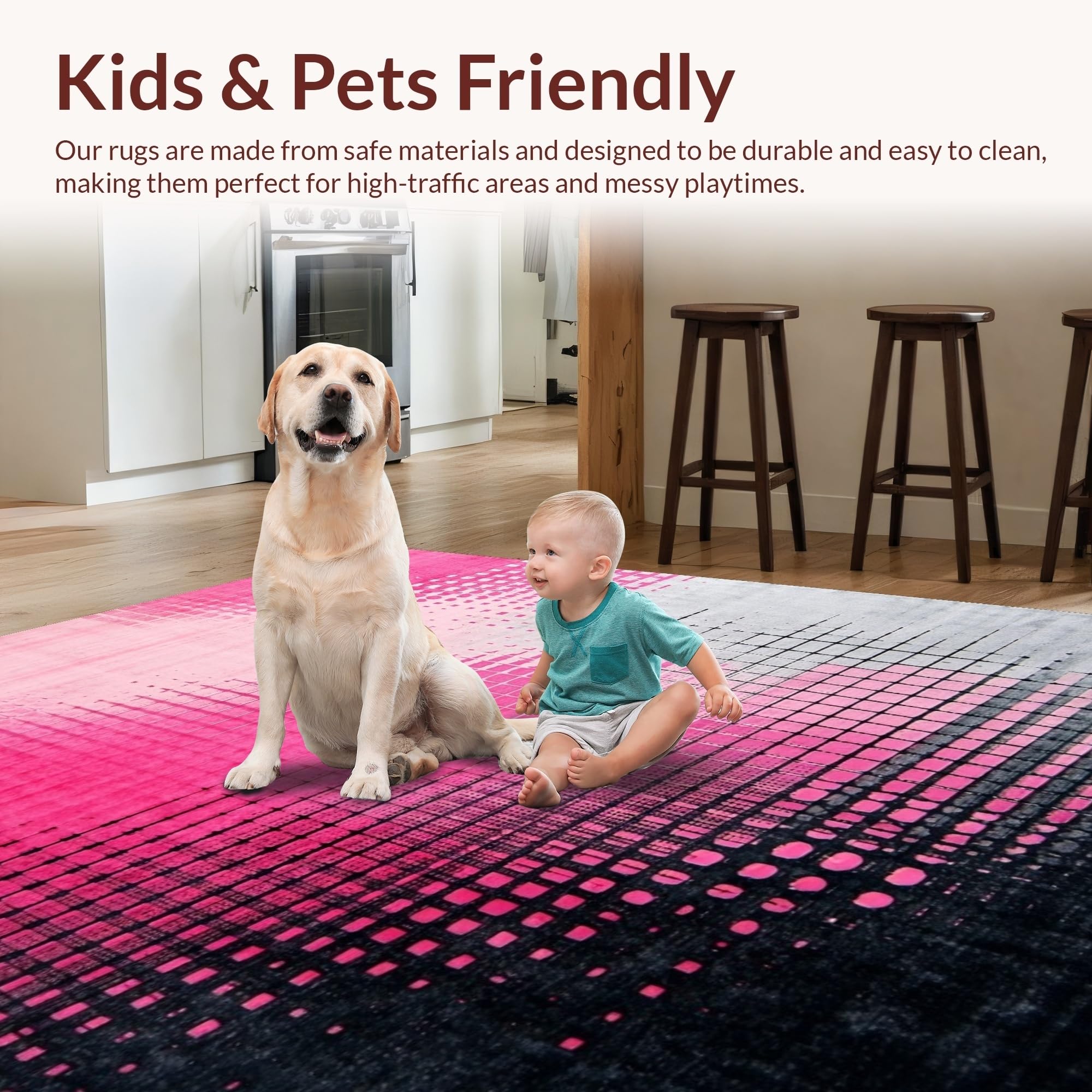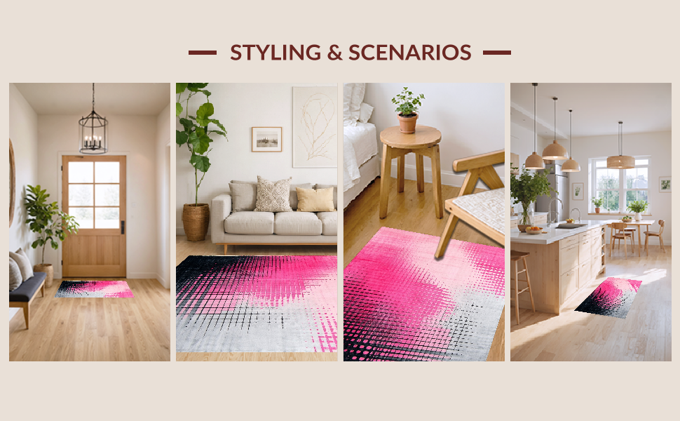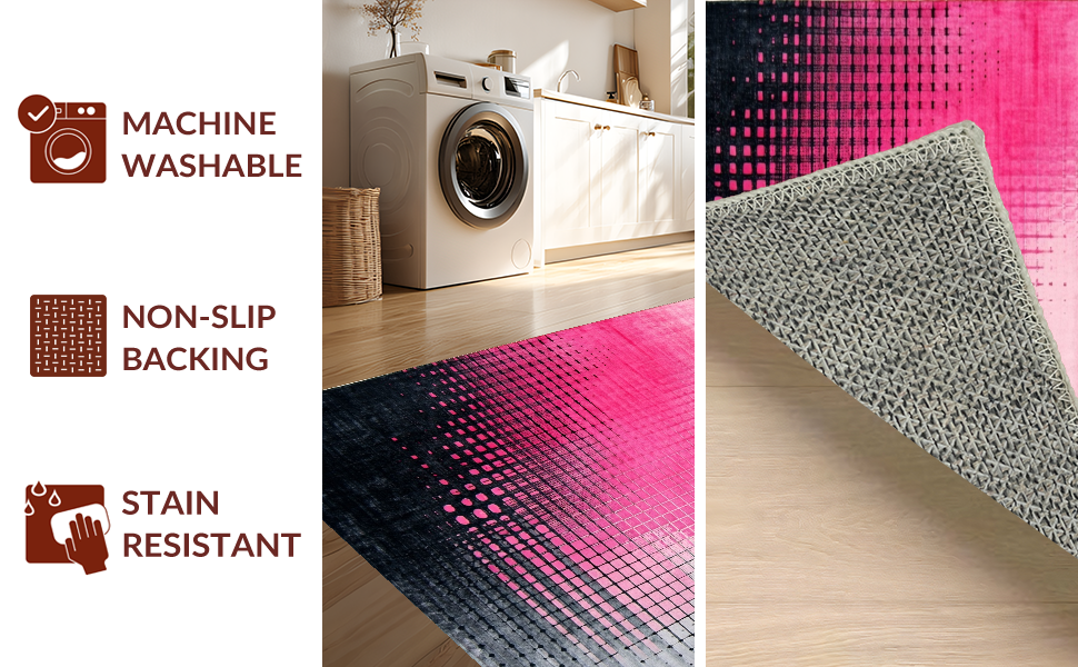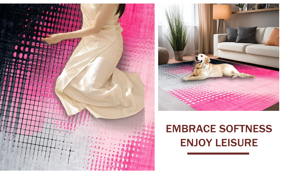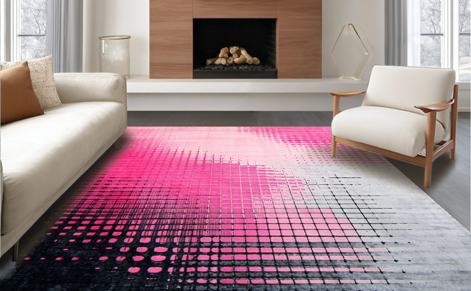 Ultra Soft Area Rug, Non Slip, Stain Resistant, Washable Area Rugs for Living Room, Bedroom, Chic Ombre Geometry Fusion(Pink) Overview: