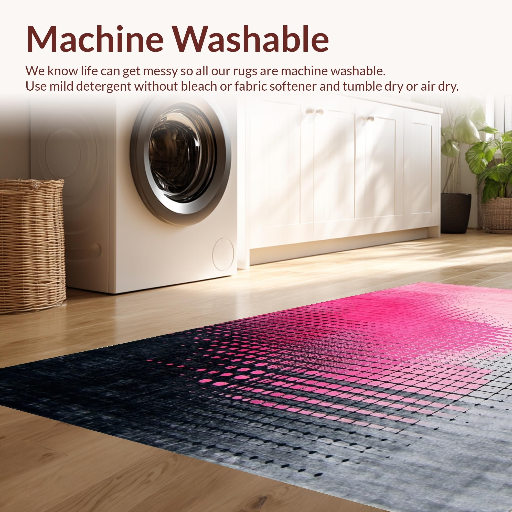 - Machine Washable: Our rugs can be easily thrown in the wash machine.