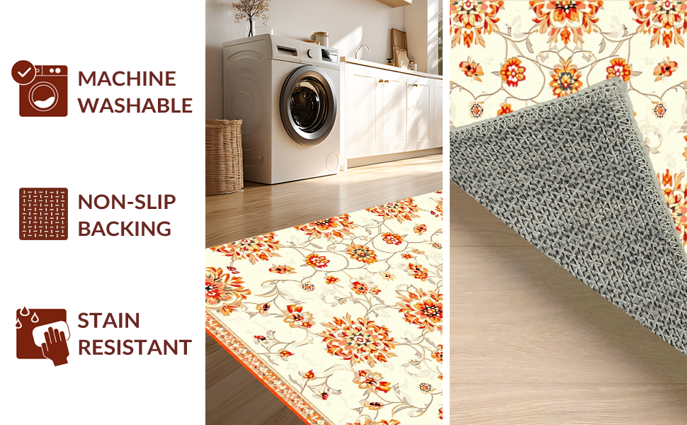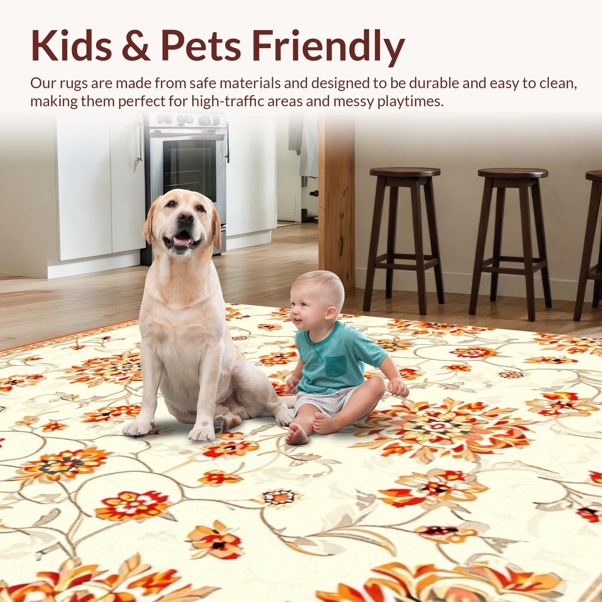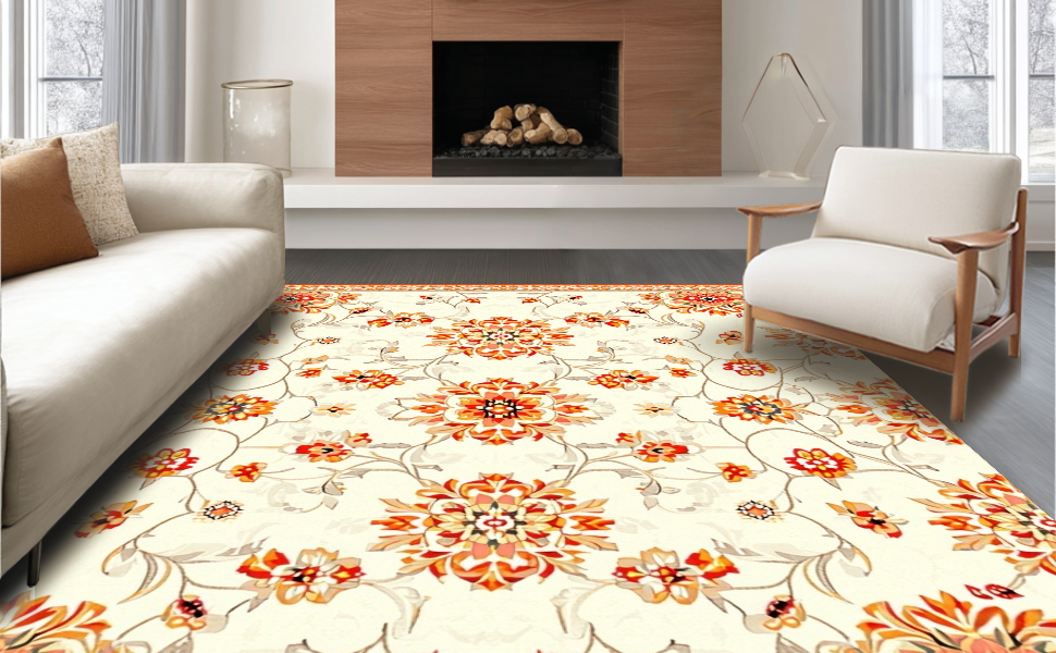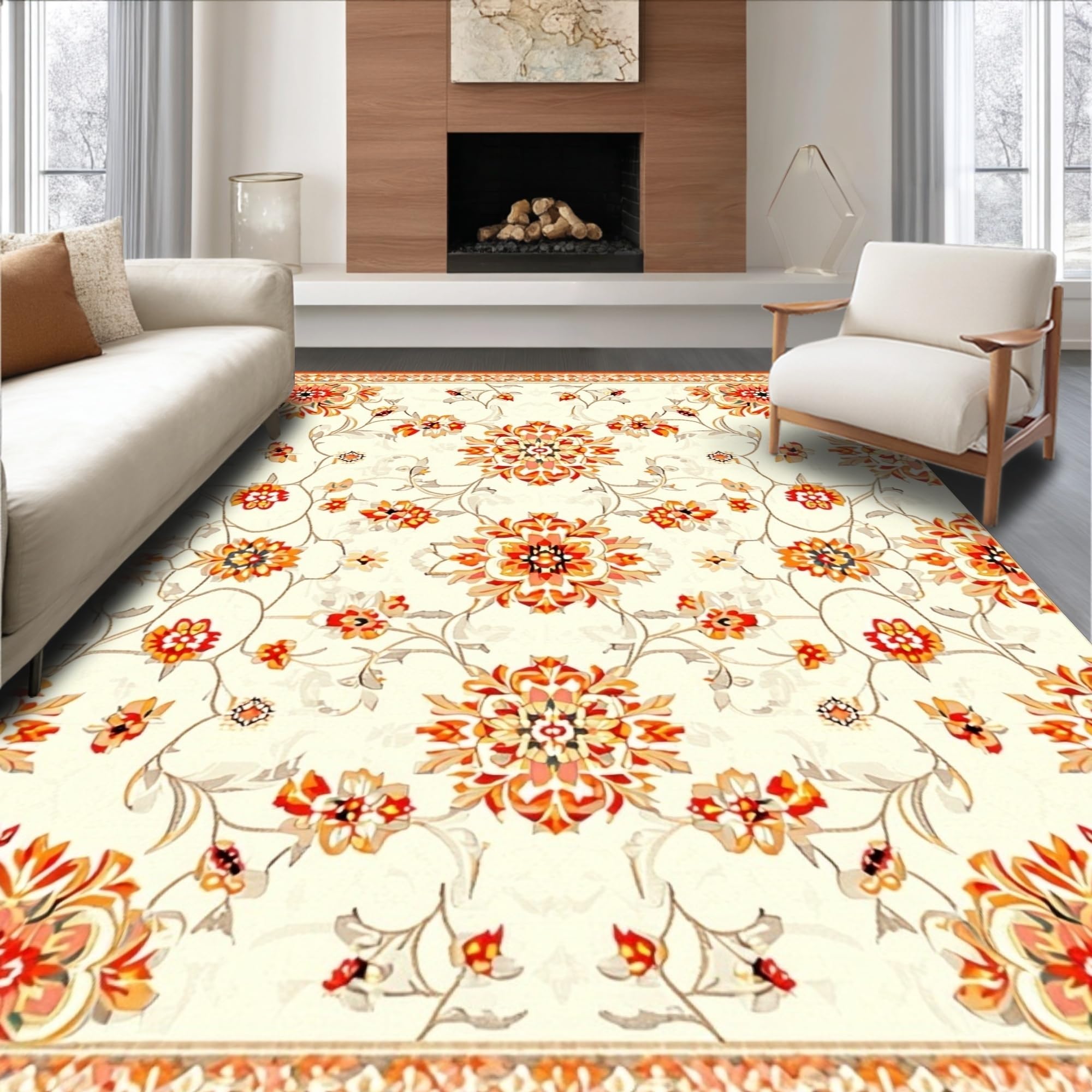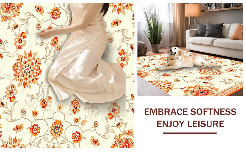 Ultra Soft Area Rug, Non Slip, Stain Resistant, Washable Area Rugs for Living Room, Bedroom, Chic Outdoor Floral Elegance(Beige) Overview: